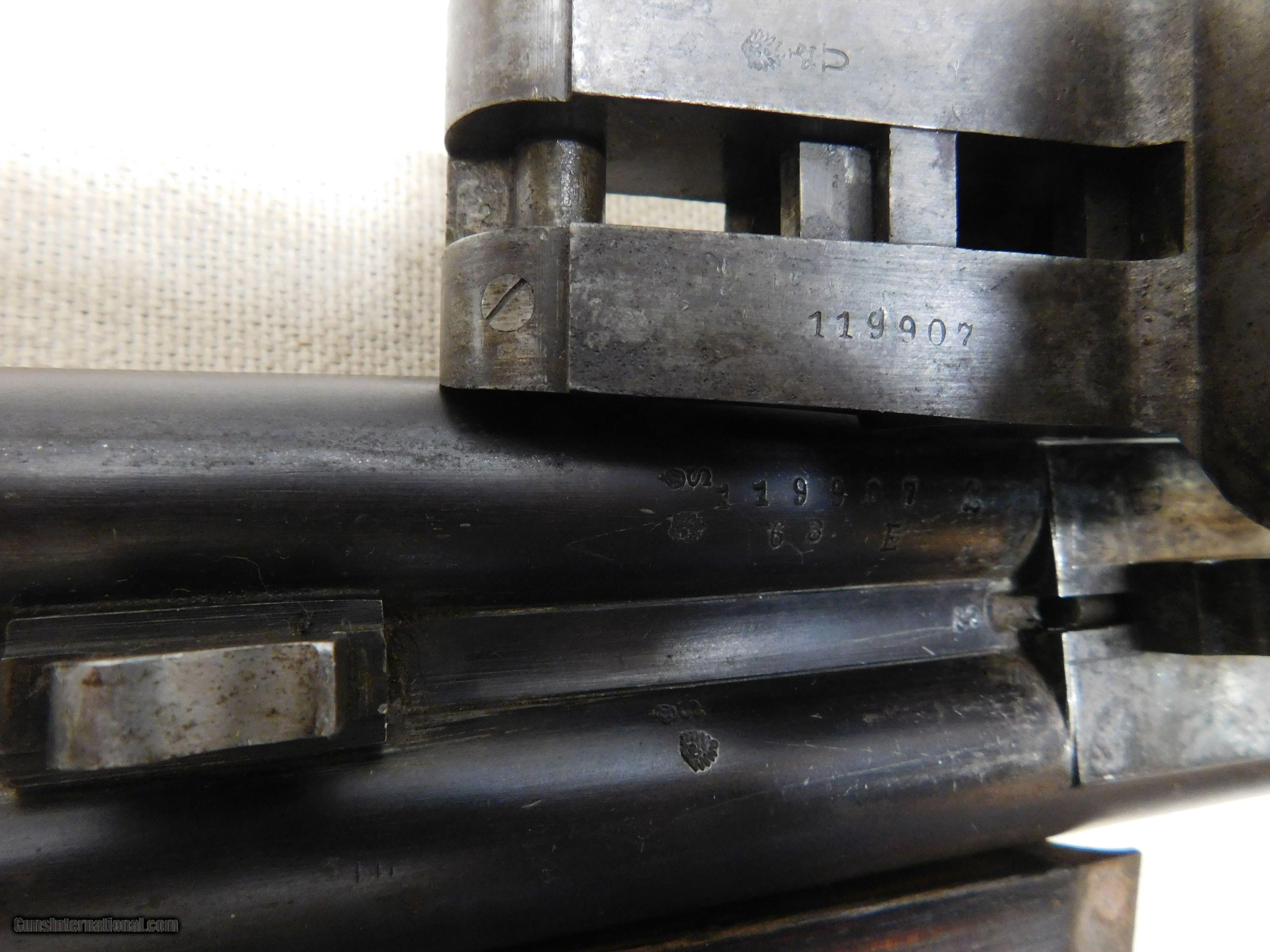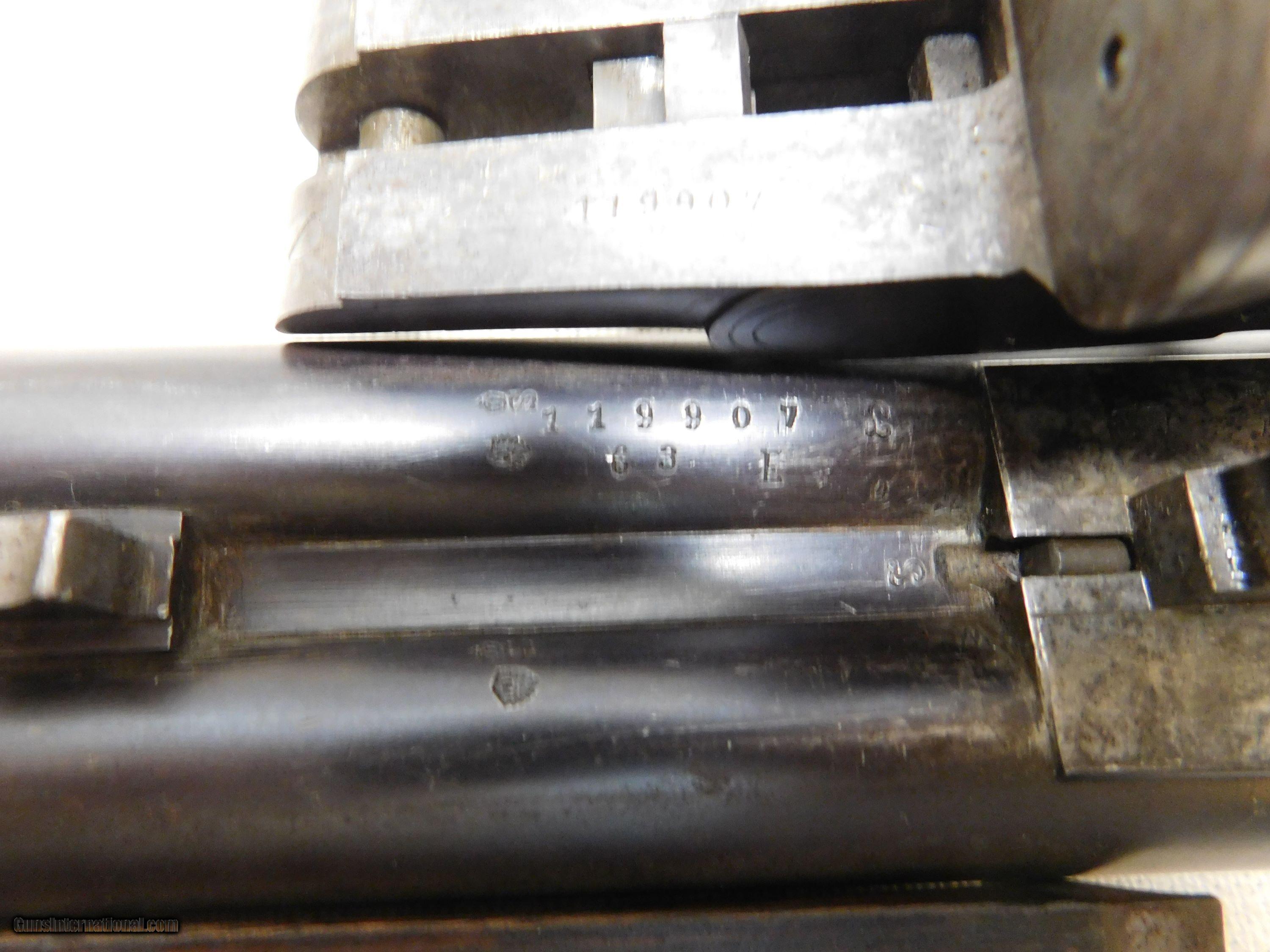 Description: J.P. Sauer Hammer SXS Shotgun, 16 Guage, 29-1\2" Barrels,Fluid Steel Krupp Barrels, Sling Swivels, Cheekpiece, Action is a Little loose, Lever is Left of Center, Bore's are Pitted,Wood Is Solid with Original Buttplate, #'s Match, Gun shows Honest Use not abuse, Good Function, Guages Modified X Modified,14" LOP! Store Hours Thurs-Fri-10AM-8PM Sat-9AM-12PM All other times Please Leave a message, Thank You! No California sales Lower 48 State Sales only Shipping $ 35.00 SOLD Manufacturer: J.P.Sauer Model: Hammer SXS Shotgun Bore: Mod x Mod Barrels: 29-1\2 Gauge Info: 16 Guage |