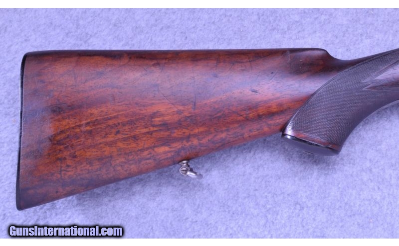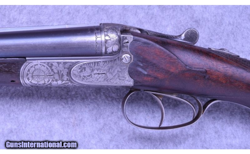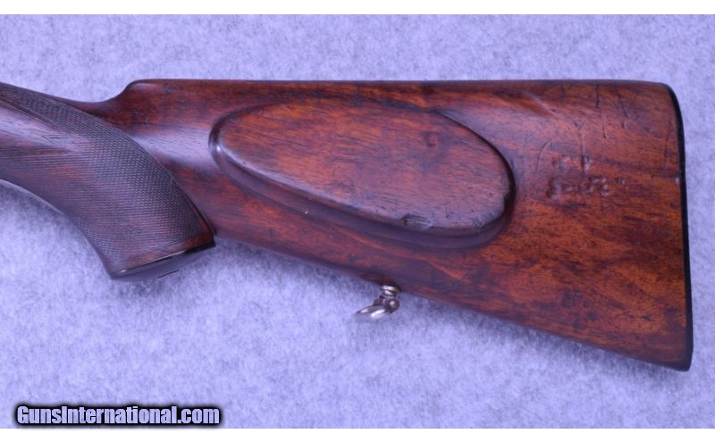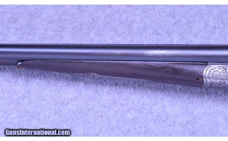 Description: Nicely made German double with a beautifully engraved receiver and excellent bores. Barrel blue is thinnning and remains free of dents. Lockup remains tight. Wood shows normal cracks behind the scalloped receiver and has darkened with age. Wood also shows use marks with the checkering a bit worn. SOLD Manufacturer: S/N None Caliber Info: 16 GA Chambers: 2 1/2 Metal Condition: Good Wood Condition: Fair Bore Condition: Excellent Barrels: 29 1/2 Triggers: Double Stock: Checkered Walnut Pistol Grip with Horn Cap Stock Dimensions: 13 3/4" LOP Fore End: Checkered Walnut Splinter Butt Pad: Checkered Horn Weight: 6 LB Sights: Single Front Bead Item Location: Wheeling, WV |