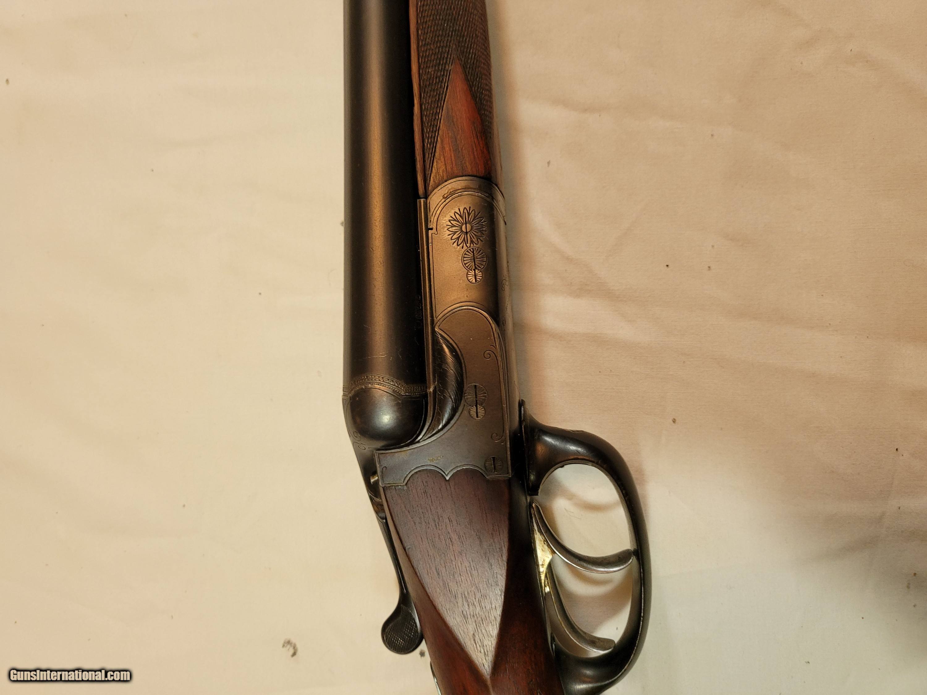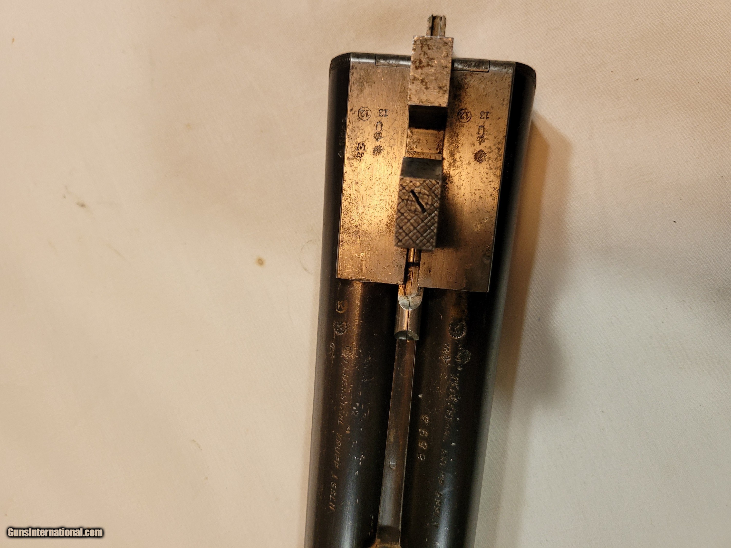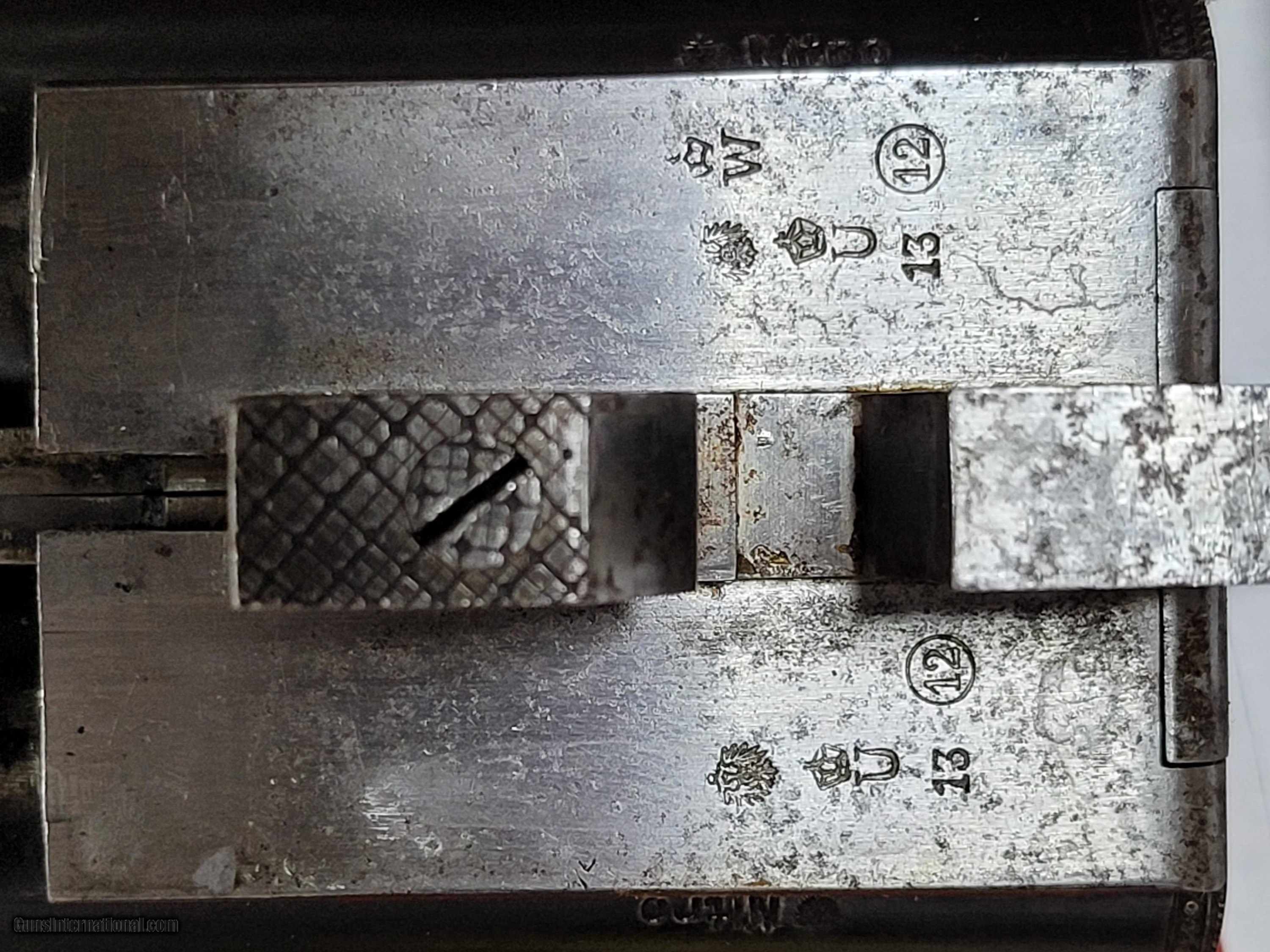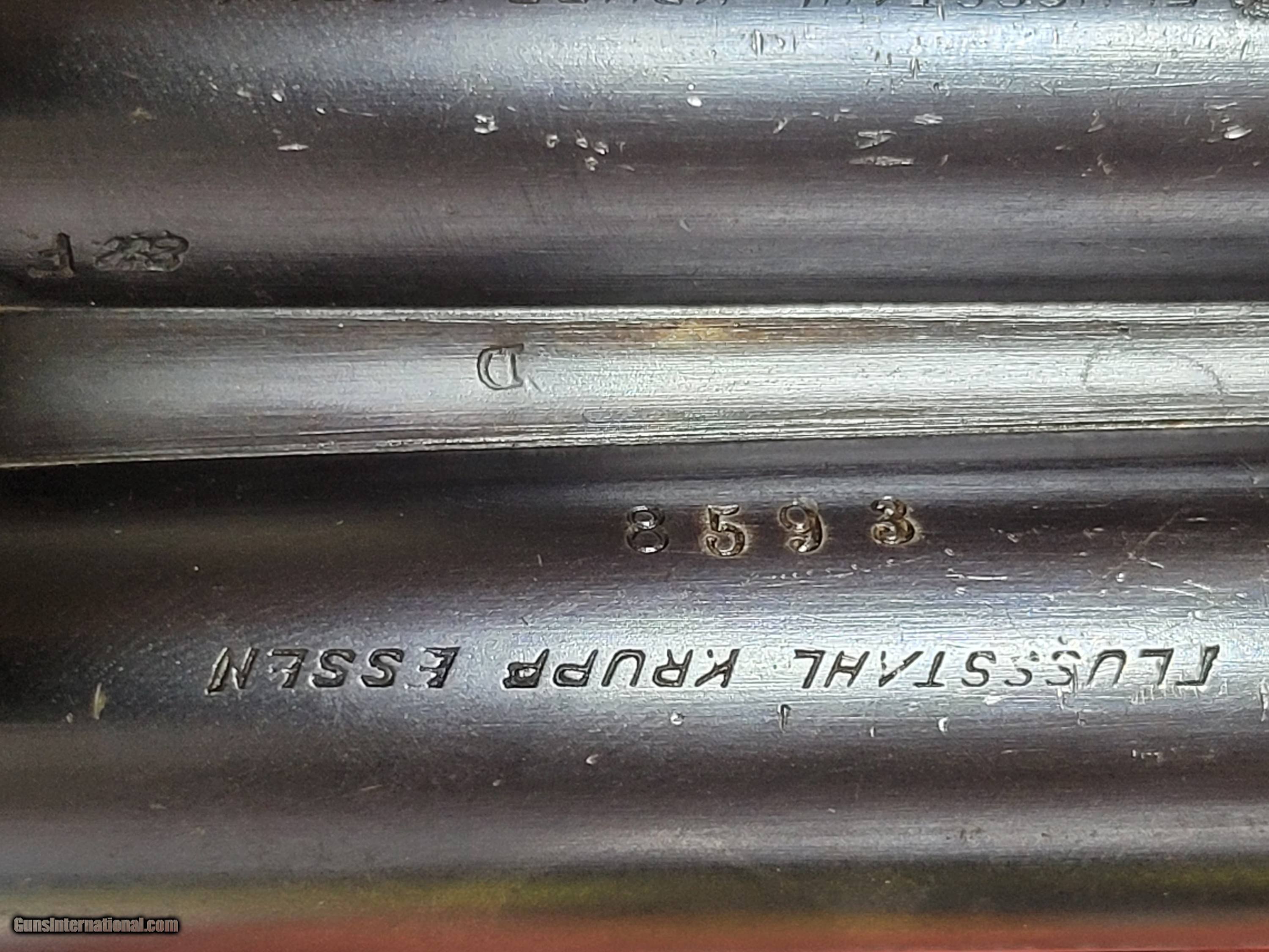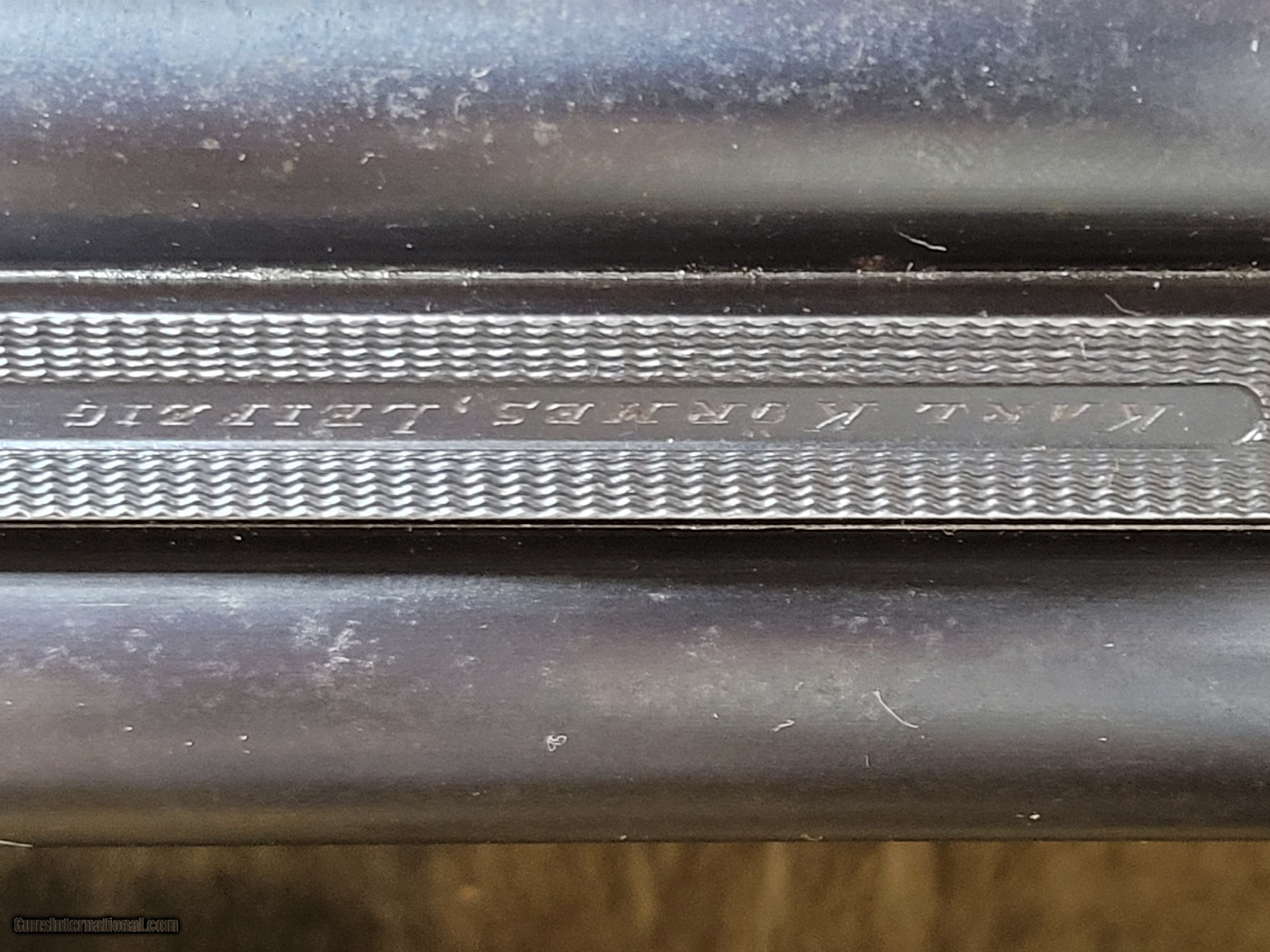Description: ******** PRICE REDUCED ******* Here is the finest example of an early 12ga SxS that I think I have ever seen. ID'd as Karl Kornes, leifzig (no germany stamp) and barrels are marked Nitro. The chambers measure a long 2 9/16 and safely fired 2 3/4" with no extraqction problems. Bores are bright and shinny. This gun is in immaculant condition. I would put bluing at 90%, at least, as well as wood and finish. The ButtPlate and Trigger Guard are from horn and NO craqcks, there is also an insert of the horn in the tip of the splinet handguard. As besst as I can determine, this gun was made somewhere around 1905. This gun locks up "TIGHT" and all wood to metasl fit is excellent. I tried to photograph as best I can but I am no photographer. I believe the price to be fair, but reasonable offers are considered. Insured Shipping to CONUS is flat $65 BUT there is no shipping to Ca as I refuse to deal with their DOJ. Payment via, Certified Bank Check, Postal Money Orders, Perswonal or company check, with delay for clearing, and Discover, Visa, or Master card with 4% (NO AMERICAN EXPRESS) SOLD Shotgun Gauge: 12 Gauge Manufacturer: KARL KORNES Model: SxS Serial Number: 8593 Condition: EXCELLENT Metal Condition: EXCELLENT Wood Condition: EXCELLENT Bore Condition: EXCELLENT Proof:Nitro: yes |