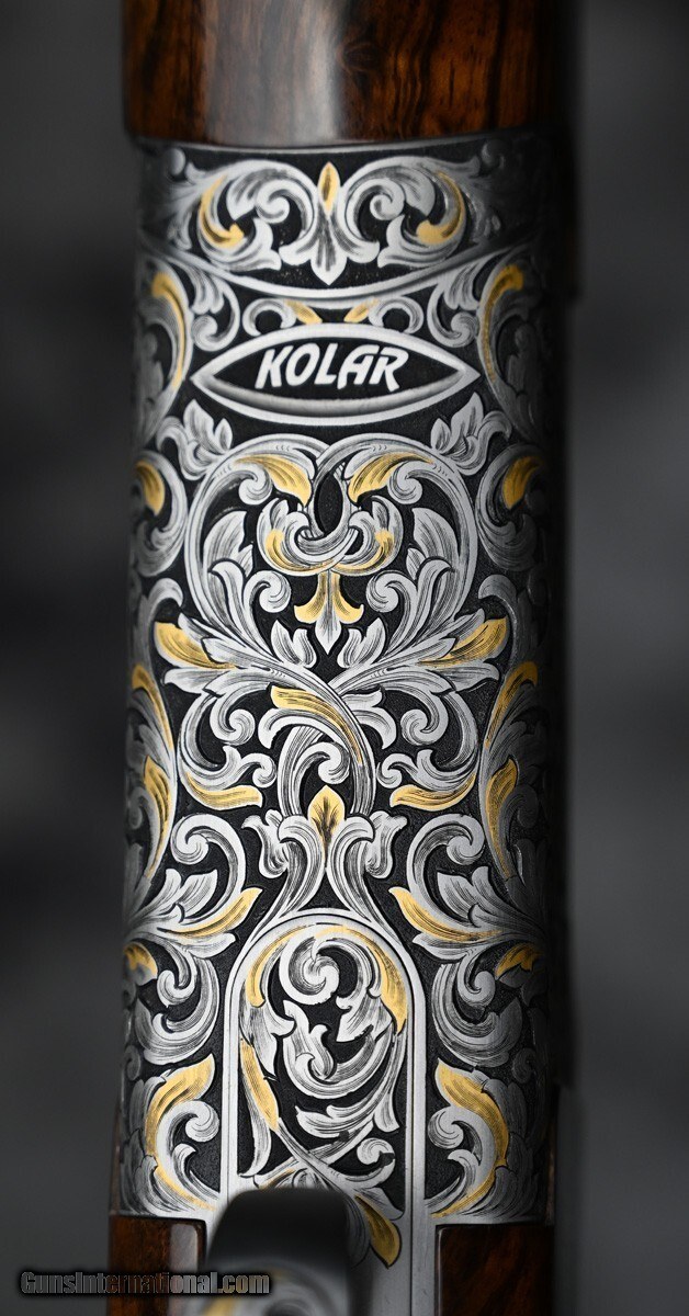 Description: New Kolar Gold Grand Round Action Sporter 12ga. Features factory extended titanium choke tube 32" barrel with flat sporting rib. Engraved receiver featuring deep scroll patterns with gold highlights with removable selectable trigger. Highly figured right hand Sporting stock with adjustable comb and Round sporting forend. Comes in factory case. Pacific Sporting Arms is the largest dealer in high grade shotguns in the world. Shotgun Gauge: 12 Gauge Price: POR Contact Seller |