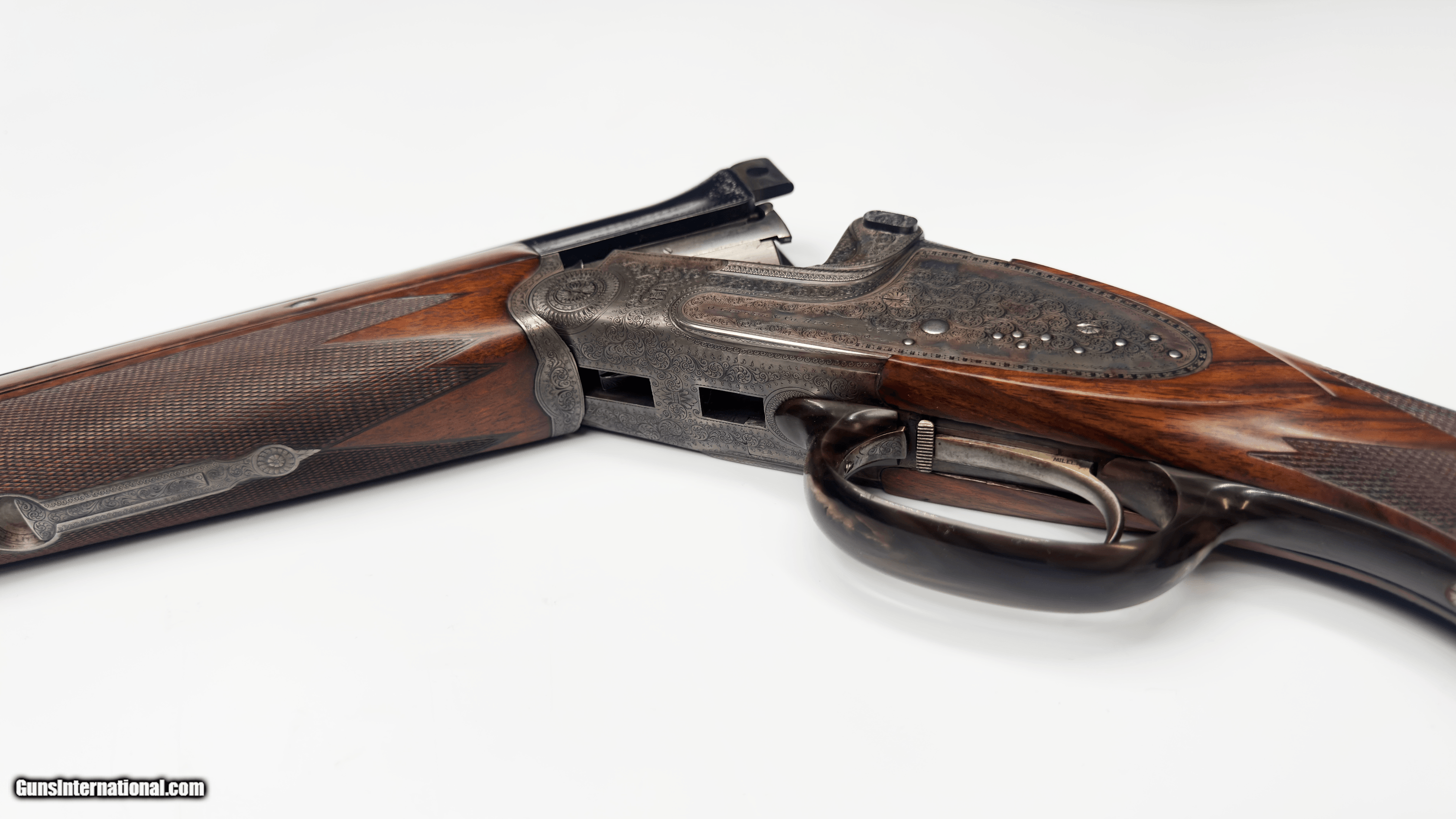 Description: Otto Geyger 12ga O/U shotgun, made in Germany. This is a lovely sidelock O/U shotgun, with what looks to be a custom trap-style stock and forearm, and a Miller single trigger. The gun is in great overall condition and would make for a great shooter! Includes a set of Briley chokes. This shotgun is located at Orvis Sandanona Shooting Grounds in Millbrook NY. Call Connor at 802-362-7683 for more information. SOLD Shotgun Gauge: 12 Gauge Manufacturer: Otto Geyger Model: O/U Serial Number: 13690 Barrel Length: 30 Chambers: 2-3/4 Ejectors: Auto Triggers: Miller single Stock Comb: 1-1/2 Stock Heel: 1-1/2 Stock Cast: 1/16" off Fore End: Three piece Butt Pad: Leather Weight: 8lbs Chokes: Full Briley set Engraving: Full Coverage Scroll Case: None Item Location: Millbrook NY |