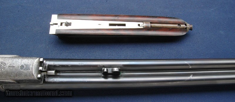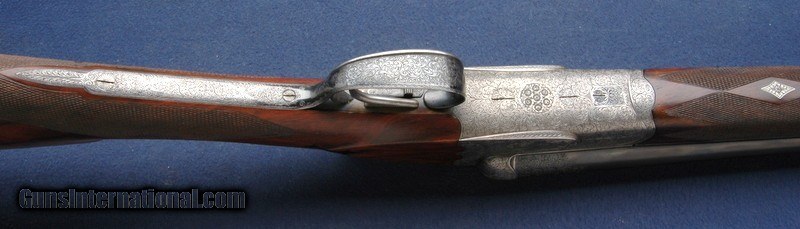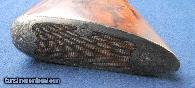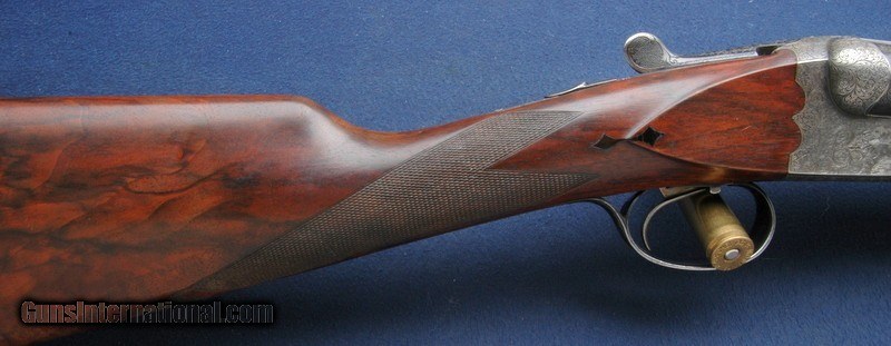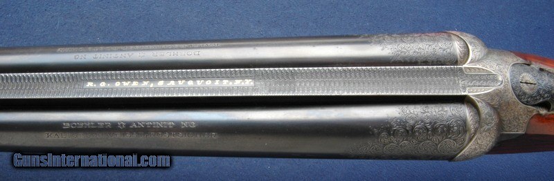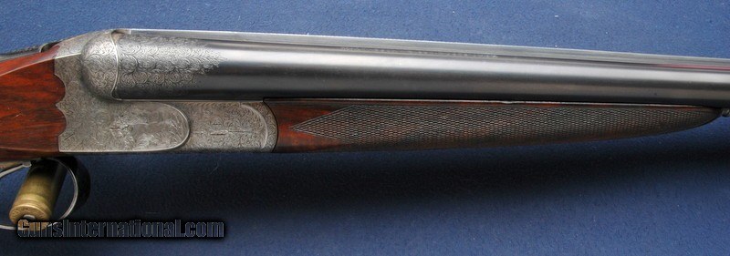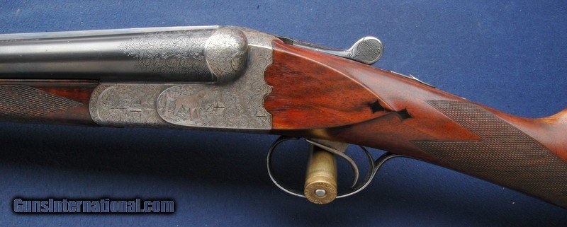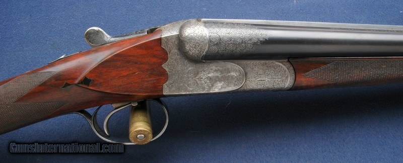 Description: I hope that my description is satisfactory, otherwise carefully examine the pics for answers and call if I can help. This beauty is gold inlayed R. G. OWEN, SAVAVOIT,N.Y. on the top rib. There is a vacant gold oval inlaid into the stock. Fully figured stock with straight English grip. Anson pushbutton release splinter fore end. Beautifully engraved (Rudolf Kornbrath?). Stock has a neutral cast. Mirror bores. 44 1/8" overall length, 27" barrels, LOP is 14 1/4", weight is 6 lbs 4 empty. 1 3/8" DAC, 2" DAH. Both barrels appear to have MOD choke. Both flats of the receiver have Pointers engraved into them. No case or paperwork. Stunning hunter in great shape at a fair price. $100 shipping to the lower 48, 3% surcharge for using a CC. If you choose to pay with a personal check, we will hold the item for up to 10 days to make sure that it clears. Please expedite such pymts as we will hold an item on your word for 5 days. SOLD Shotgun Gauge: 20 Gauge |