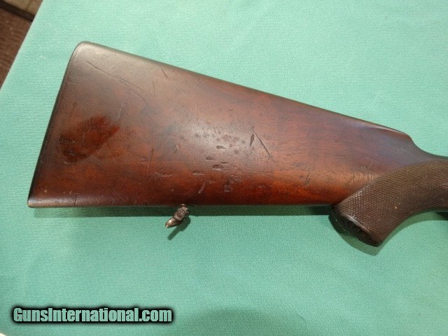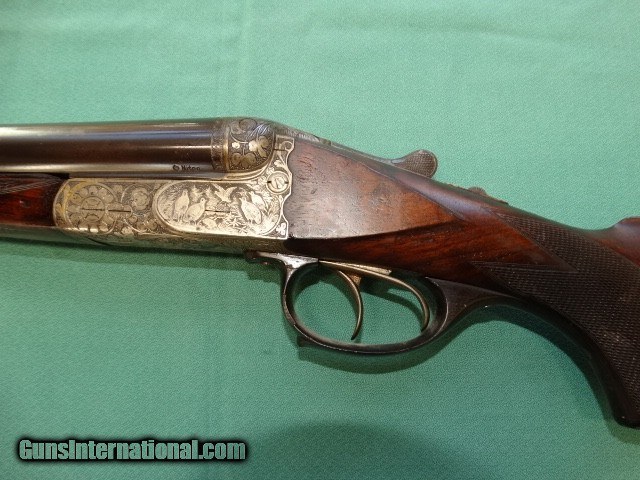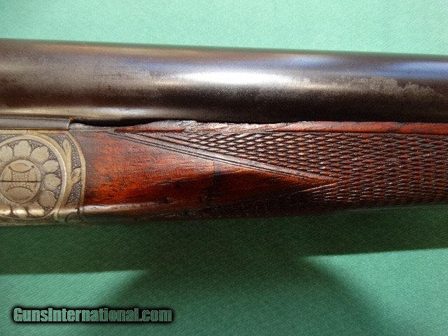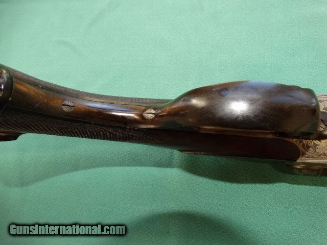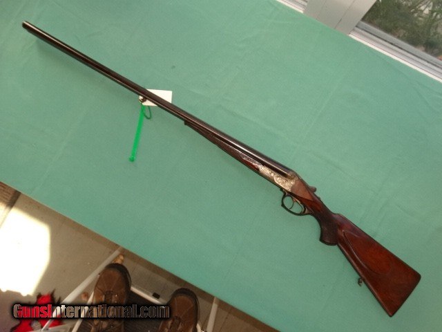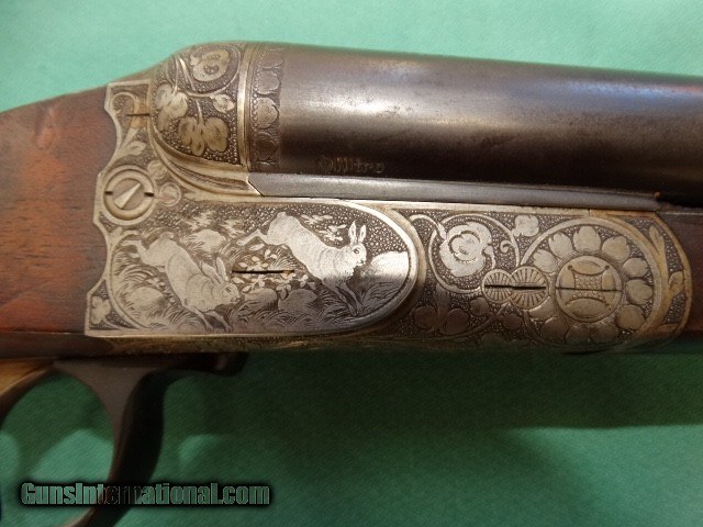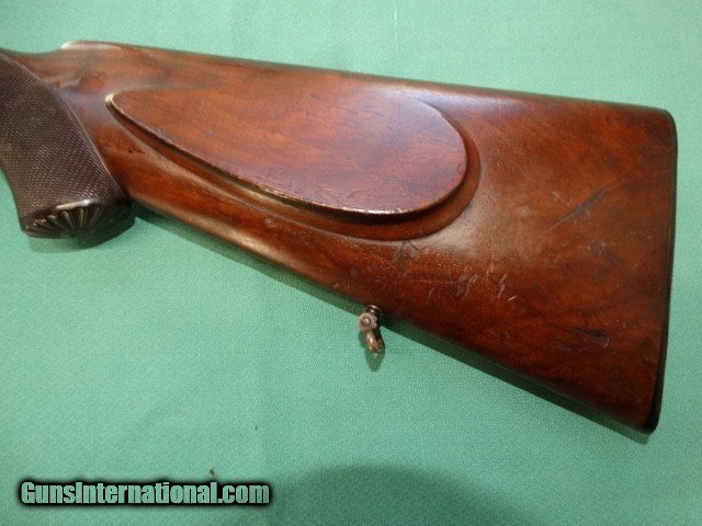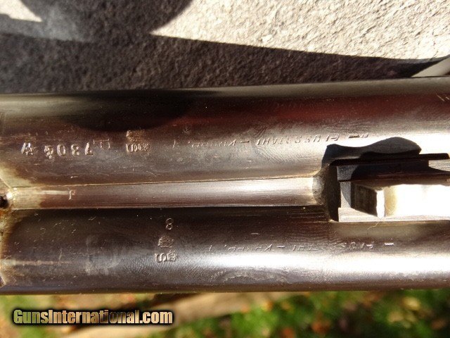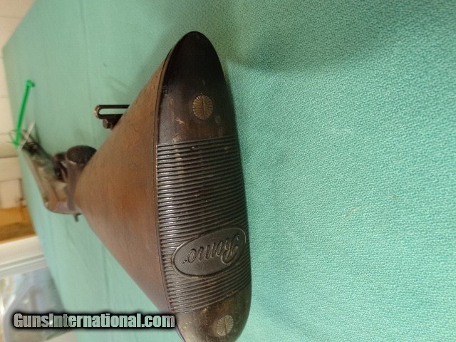 Description: Remo 16 GA SXS retailed by Hoflieferant. The barrels are 29 3/4" long and choked full and a tight modified. The bores are bright and shiny with the possibility of a minor blemish, not a dent, in one tube. Don’t have a bore scope to be able to check it out but it really is nothing. The gun weighs 5 pounds 15 ounces. There is a Greener style cross bolt. The gun locks up tight and is on face. The gun appears to never been taking apart. There is a crack in the horn trigger guard where it joins the receiver. The LOP is 13 1/2" over a Remo marked horn butt plate. The wood, and for that matter the entire gun, has never been refinished. There are no cracks or old repairs but there are use and hunting marks in the wood and some minor slivering at the forend, it is pictured. I have cleaned a couple of spots on the barrels so you can see what is under the old dirt and grime. The receiver is coin finish. My opinion is this is a higher quality mid-grade gun. Shipping is $25.00; I am an FFL dealer, no local pick-ups. SOLD Curio/Relic: Yes |