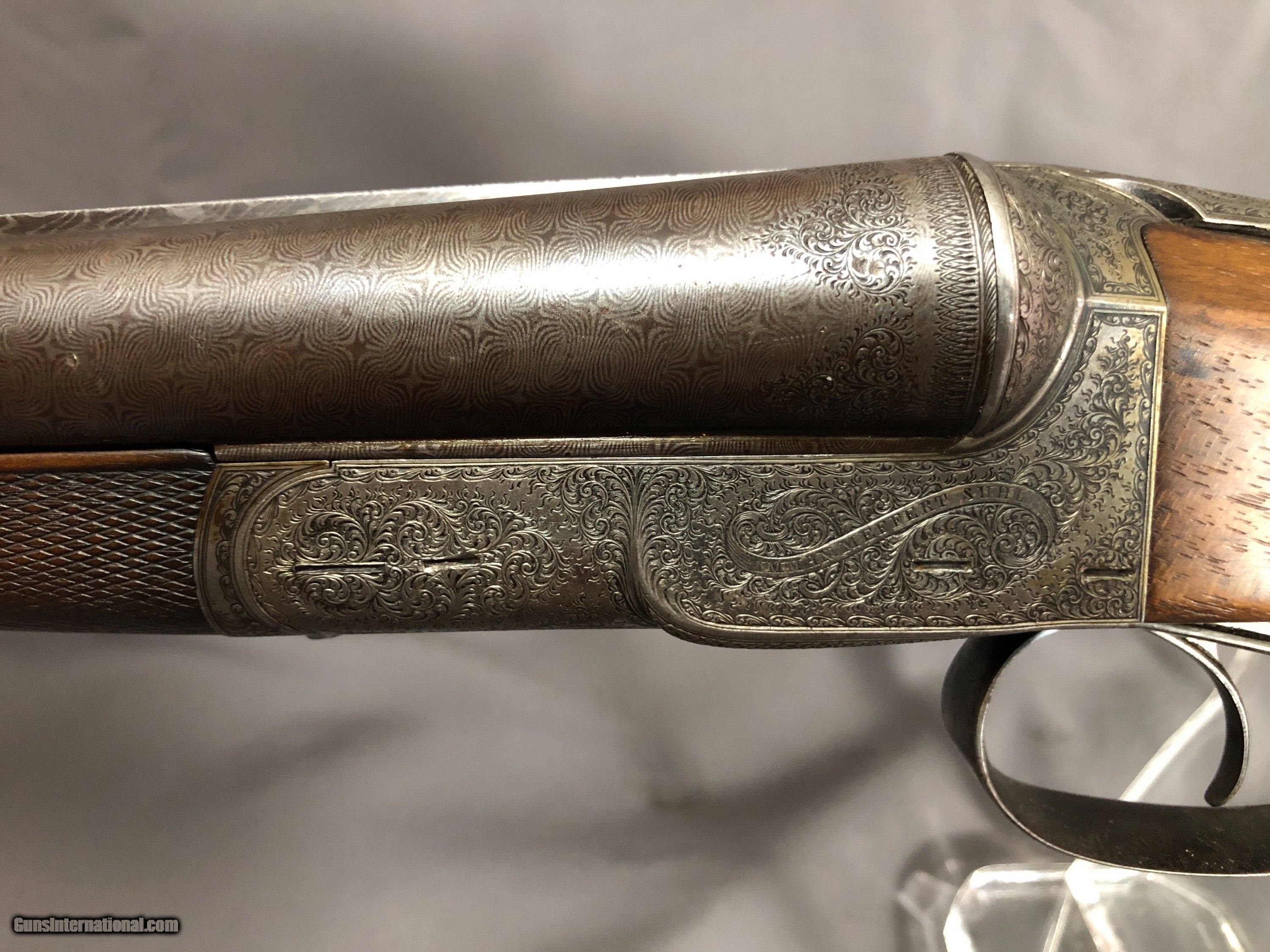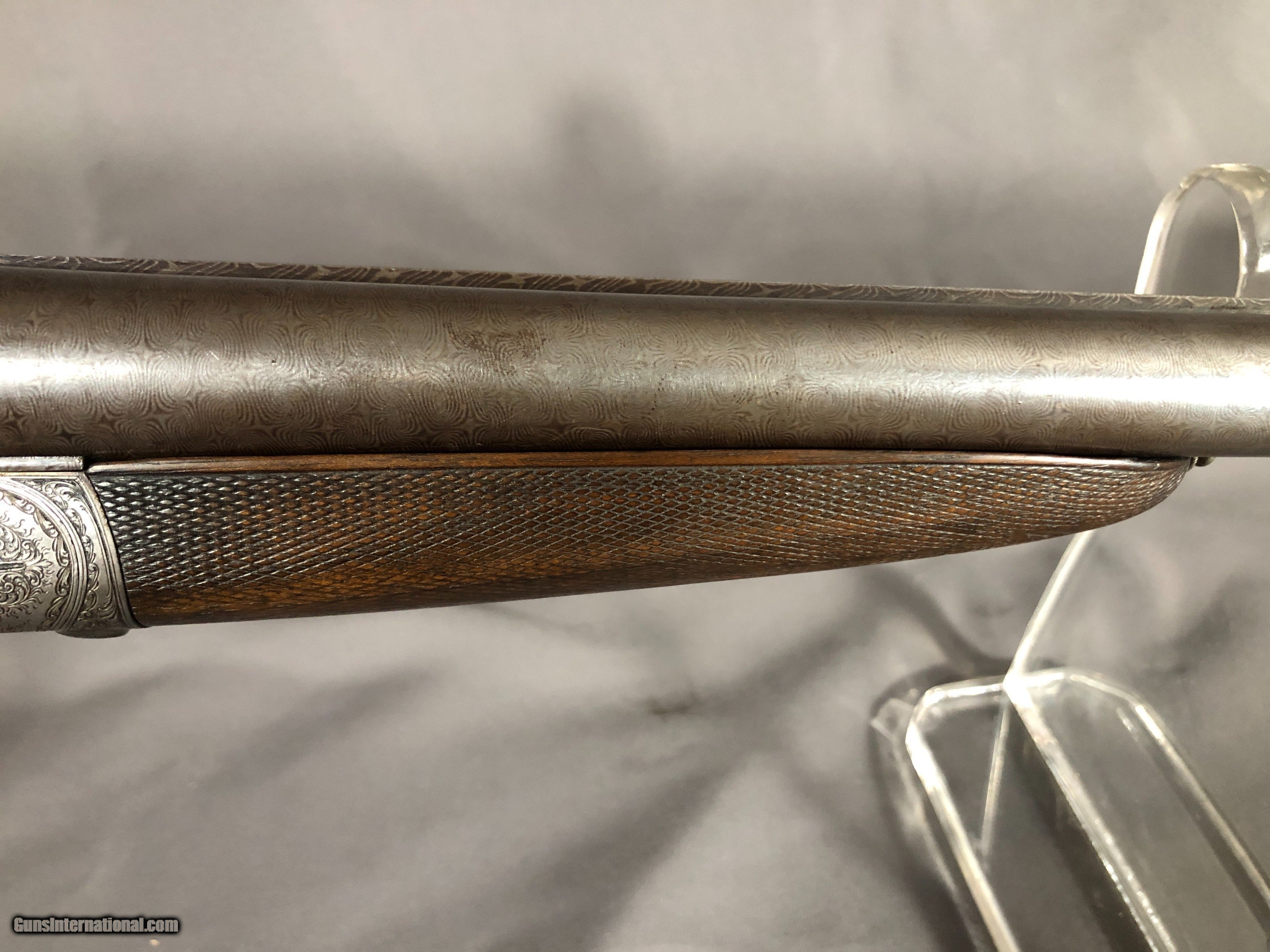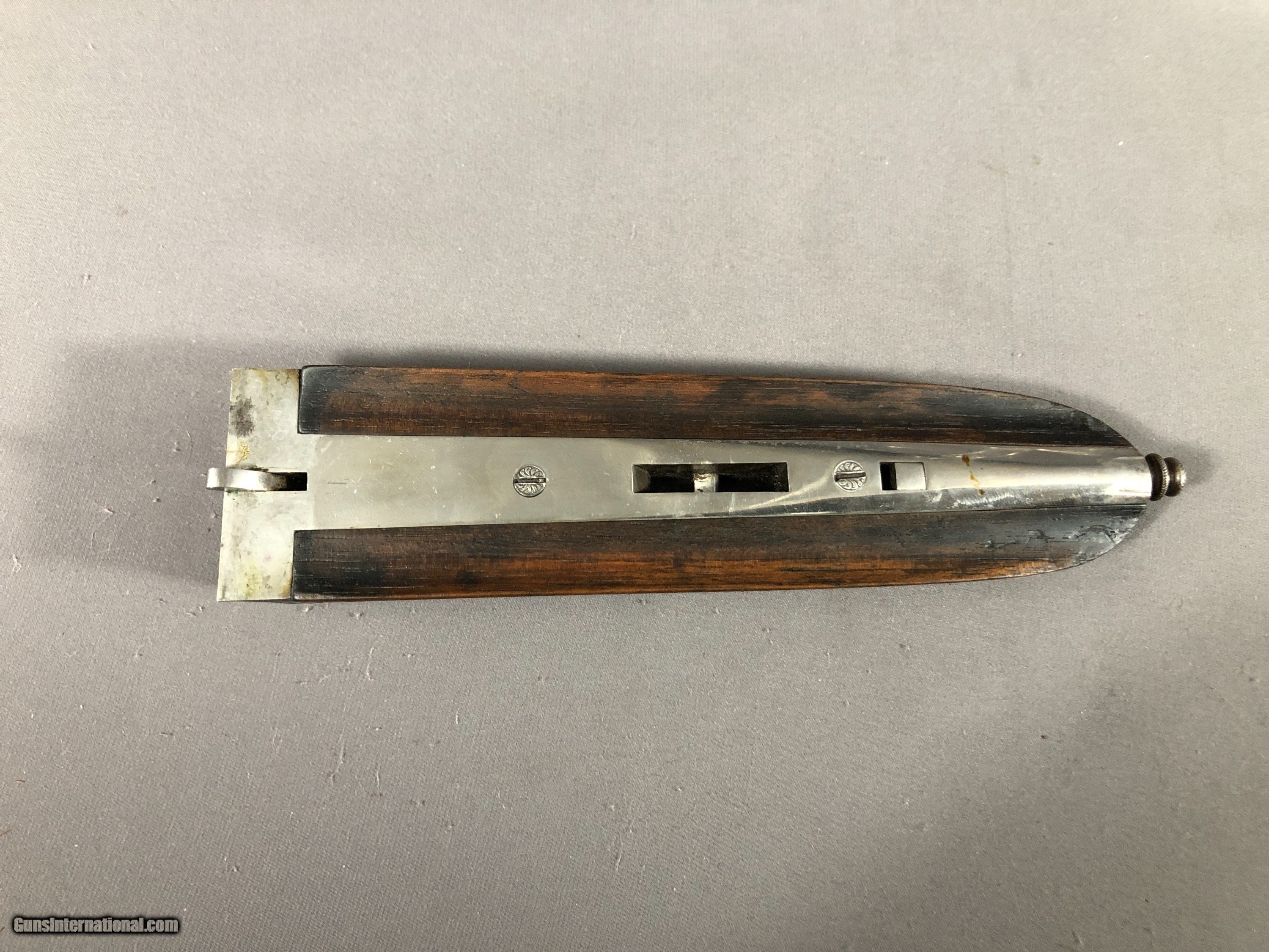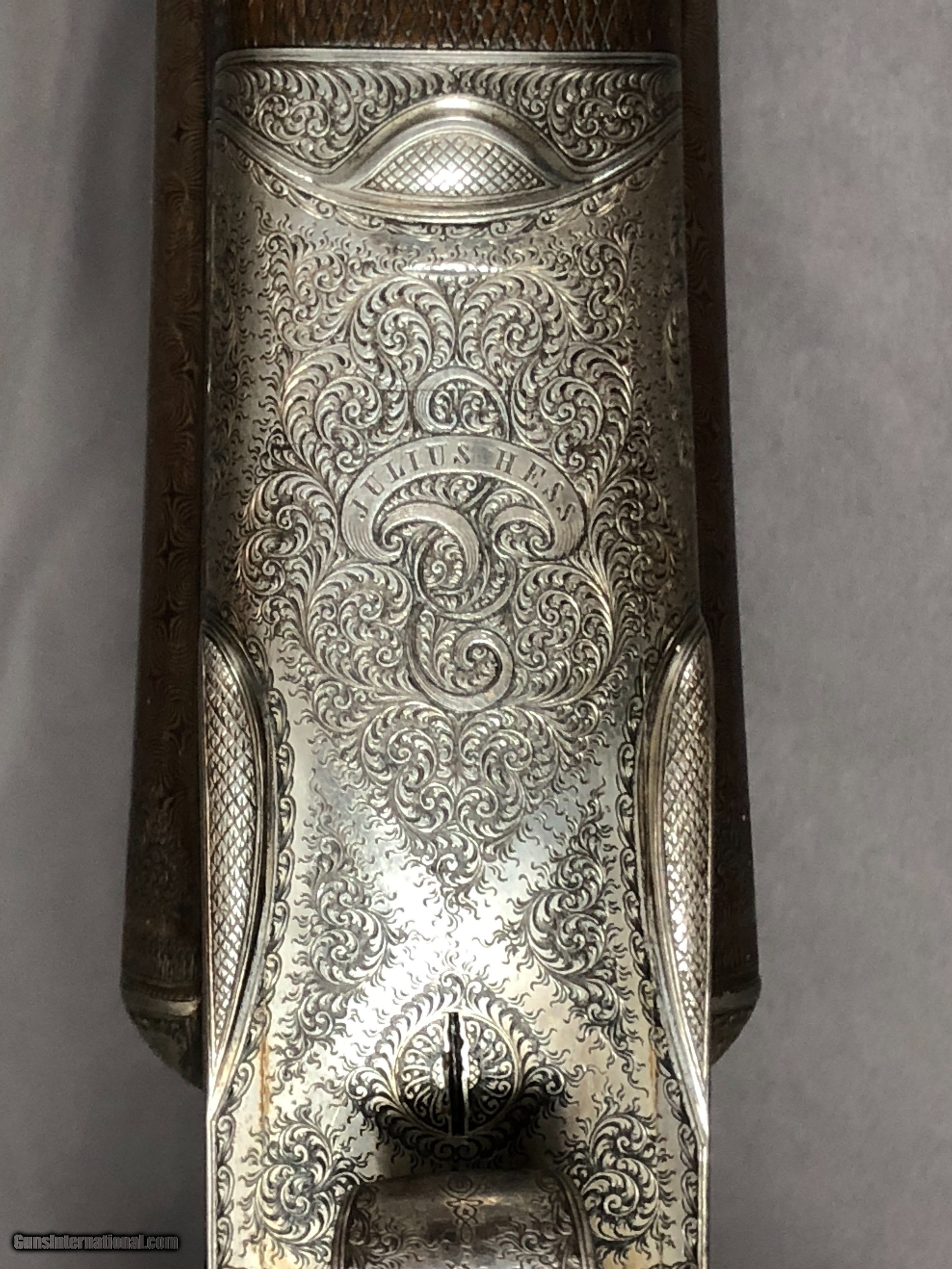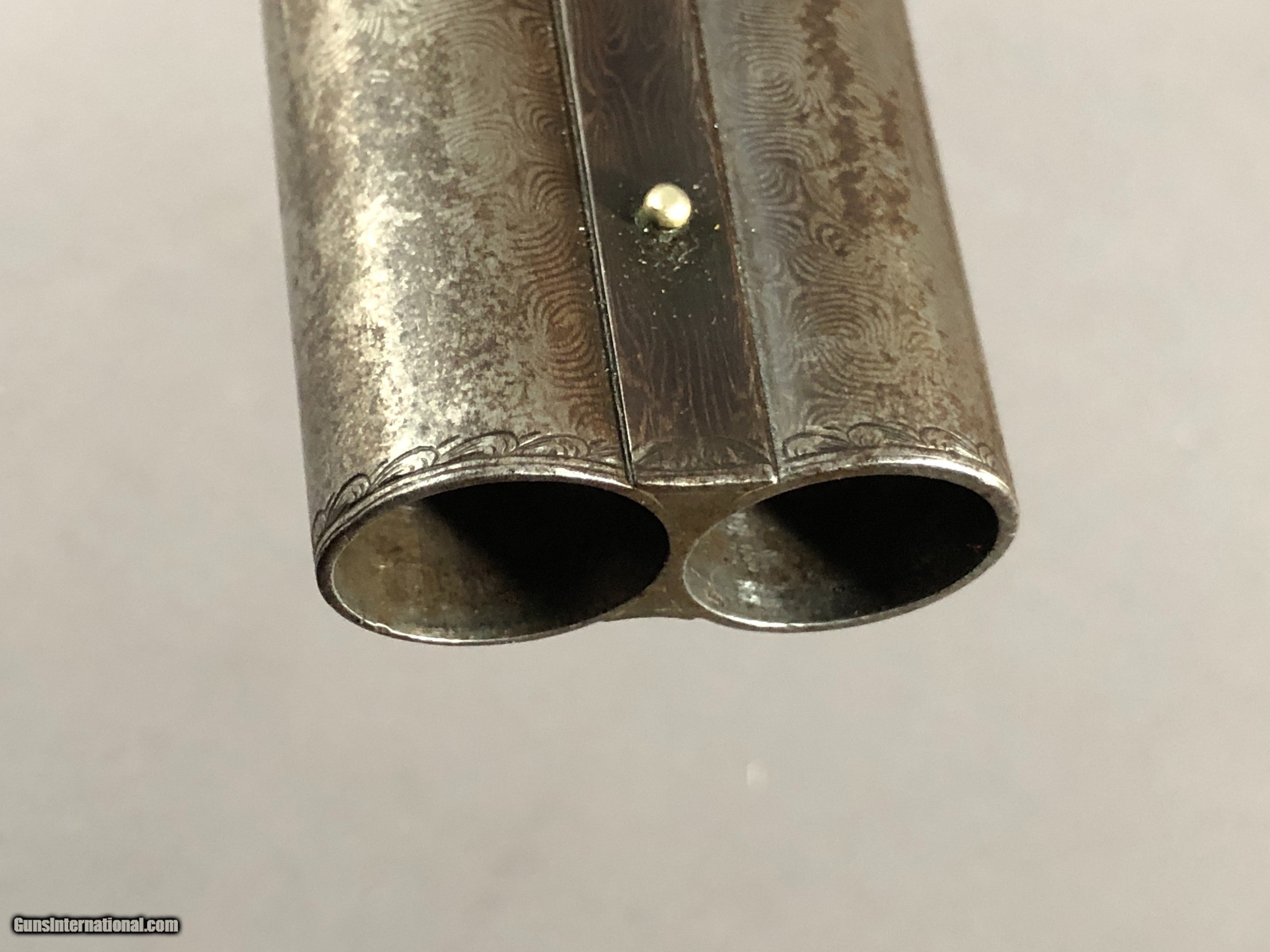 Description: SOLD!! Spectacular from one end to the other. Hours and hours of work went into crafting this fine German shotgun. A close look at the photos shows the attention to detail. Locks up tight. Barrels ring . Good bores. Good wall thickness. Please call Mark 715-814-1295 Pack and ship $65 SOLD Antique: Yes Shotgun Gauge: 12 Gauge Manufacturer: IMMAN MEFFERT Model: JULIUS HESS Barrel Length: 30IN Chambers: 65MM Ejectors: NO Condition: VERY NICE Bore Condition: BRIGHT Barrel Type: FINEST DAMASCUS Stock Comb: 1 3/4IN Stock Heel: 3 1/2IN Butt Pad: ORIGINAL HORN LOP: 13 5/8IN Weight: 7LBS 14OZ Manufacture Date: B4 1893 Choke Left: FULL Choke Right: SKEET Engraving: HAND SCROLL Minimum Wall Thickness Left: .034 Minimum Wall Thickness Right: .034 |