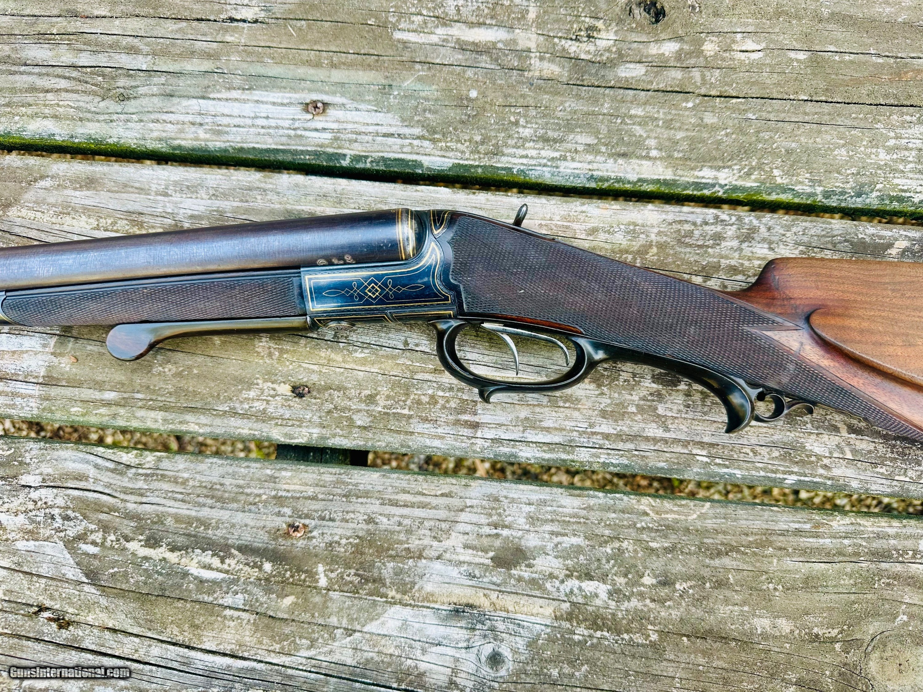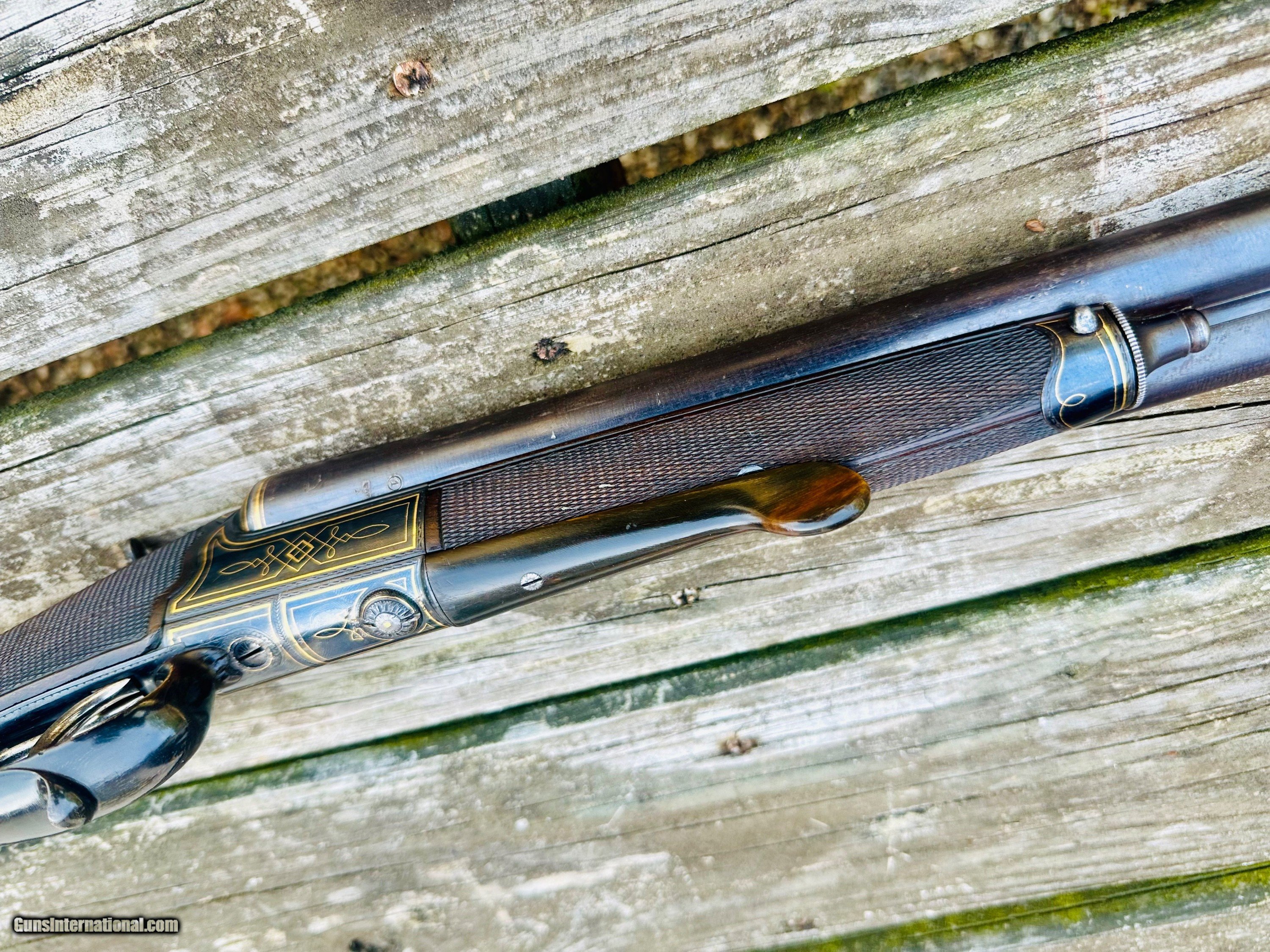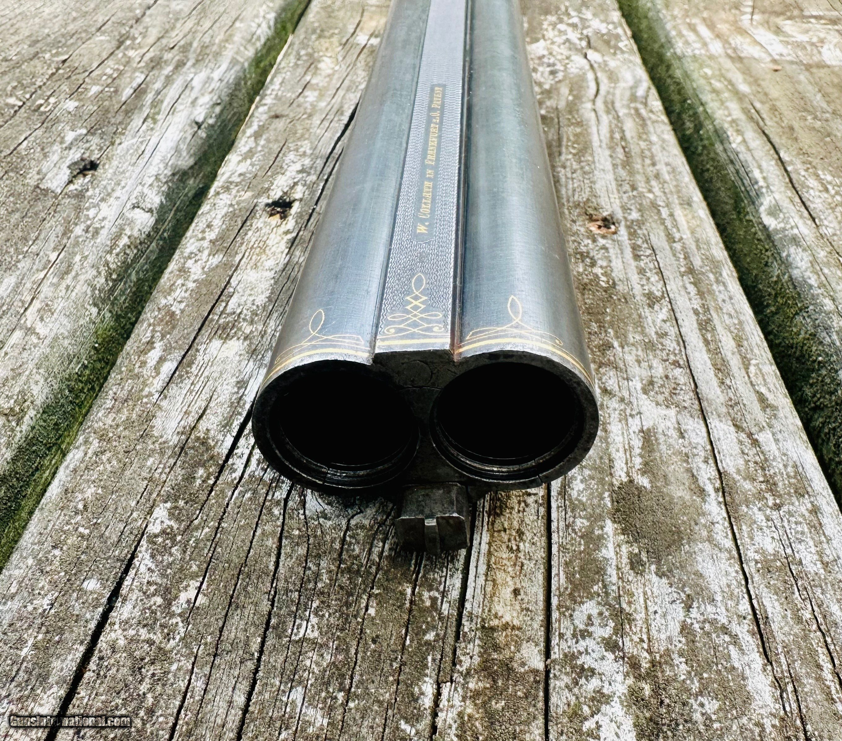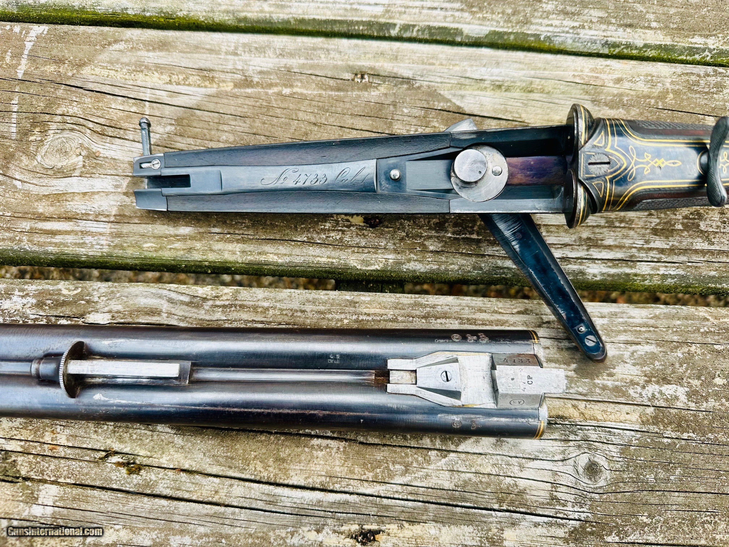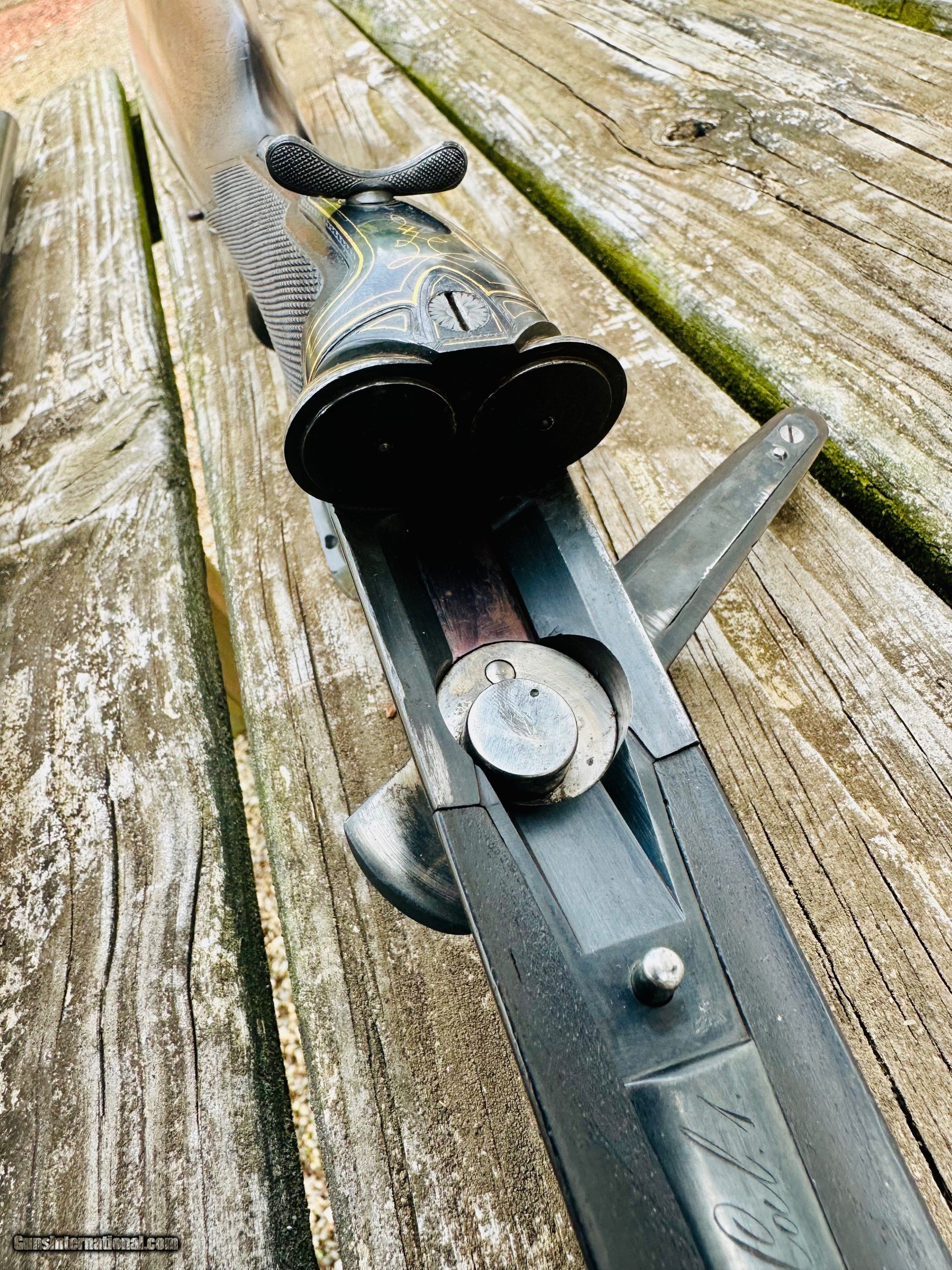 Description: W. COLLATH - FRANKFURT/ODER CUSTOM HIGH-GRADE UNDERLEVER SHOTGUN EXTENSIVE GOLD INLAY • HORN FURNITURE • SERIAL 4733 12 GAUGE (COLLATH PROPRIETARY) • C. 1878-1886 A rare and exceptional early W. Collath underlever shotgun, serial number 4733, built during the 1878-1886 period when Collath produced some of his finest bespoke sporting arms. This example is a custom-ordered, high-grade gun featuring extensive gold inlay, horn furniture, and the classic Collath underlever action. Guns of this configuration are seldom encountered and represent the upper tier of Collath's craftsmanship. FEATURES & CONFIGURATION