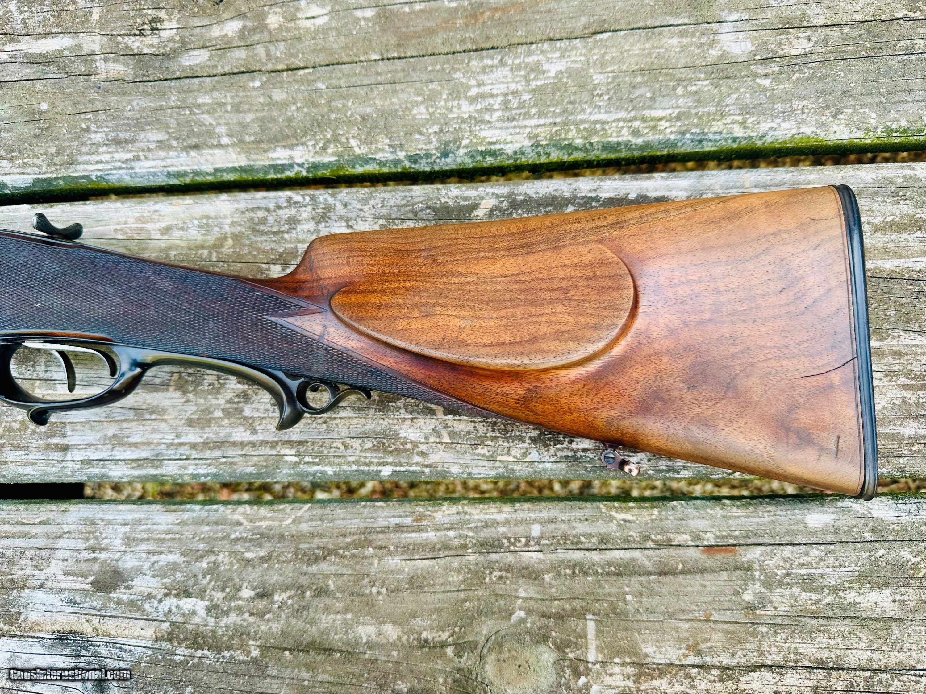 ABOUT THE MAKER Wilhelm Collath of Frankfurt/Oder was one of Germany's most innovative and artistic gunmakers of the late 19th century. Known for his proprietary ammunition systems, elegant underlever actions, and custom-ordered sporting guns, Collath produced firearms in small numbers for wealthy clients across Europe. High-grade Collath guns with extensive gold inlay and horn furniture are exceptionally scarce and highly sought after by collectors. CONDITION This shotgun remains in excellent antique condition, showing careful use and preservation. The gold inlay is intact and bright, horn components are solid and well-fitted, and the Damascus barrels retain their original subtle finish. The action is tight, bores are clean, and all mechanical functions operate properly. A standout example of early German craftsmanship. NOTES As with all early Collath shotguns, this firearm uses a non-standard proprietary chambering and is not compatible with modern 12-gauge ammunition. A chamber cast is recommended for anyone intending to load custom black-powder cartridges. OVERALL IMPRESSION A rare, investment-grade W. Collath underlever shotgun with extensive gold inlay and horn furniture — features found only on Collath's highest-level custom commissions. This is an exceptional opportunity for collectors of German sporting arms, early underlever designs, or high-grade 19th-century European doubles. Antique: Yes Shotgun Gauge: 12 Gauge Manufacturer: W. Collath Price: $4,500.00 Contact Seller |