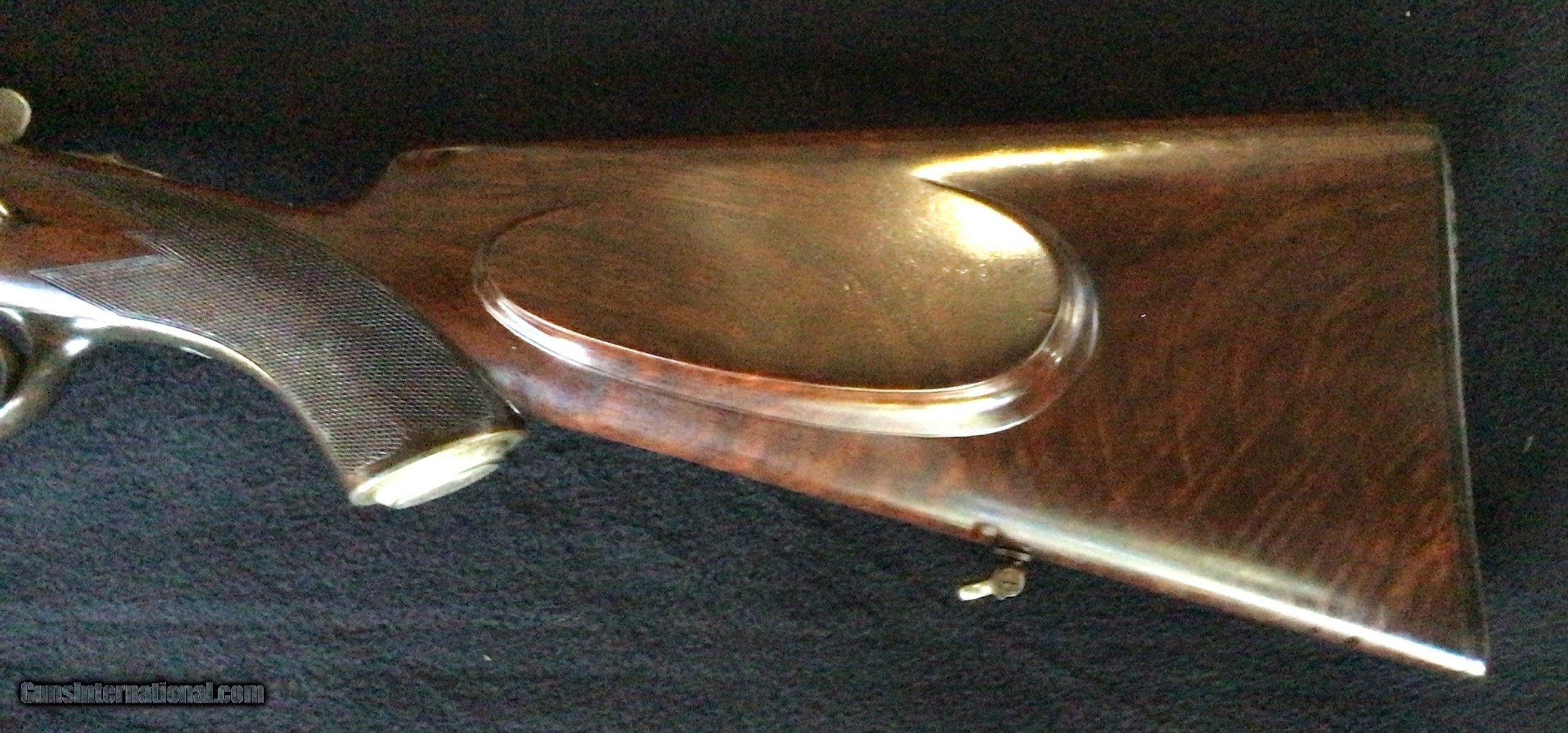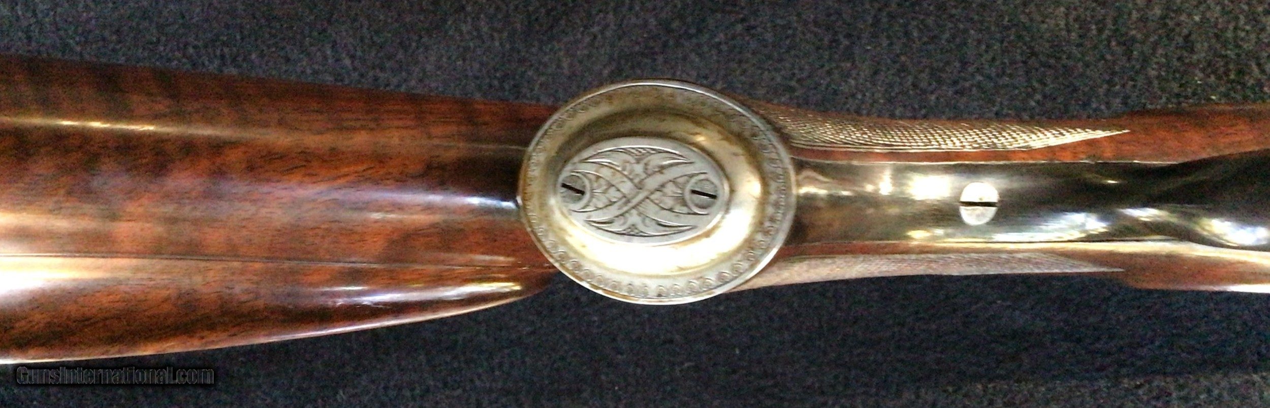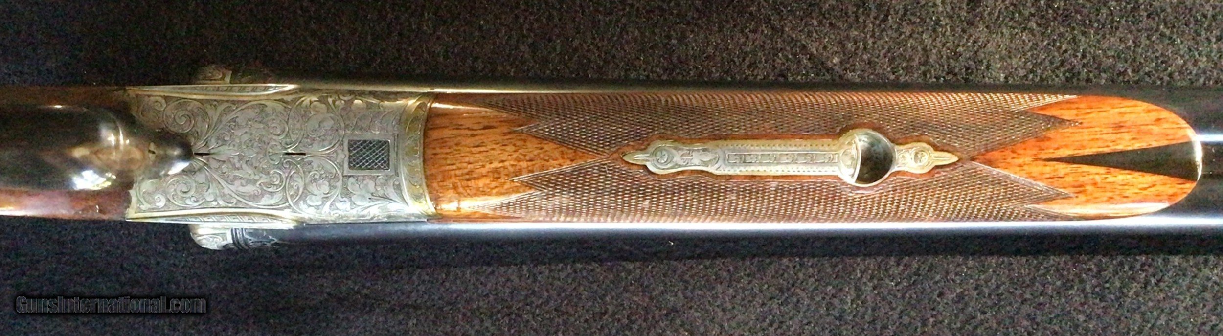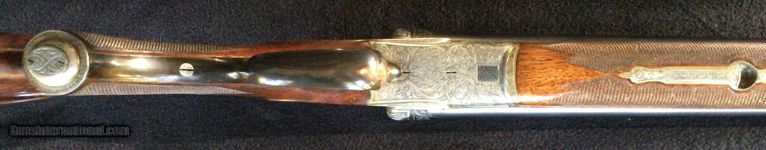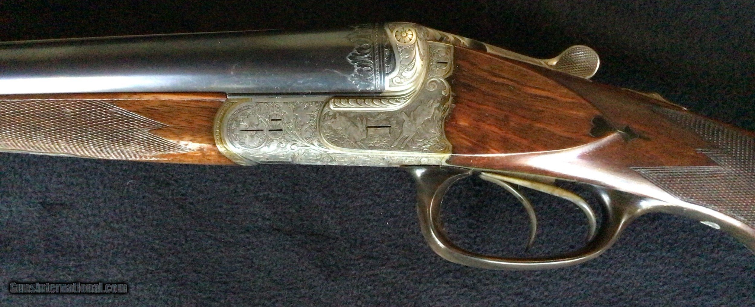 Description: Franz Kettner 12 Gauge BLNE., 3" chambers DT, side clips 30" barrel, full & full, horn trigger guard,horn butt plate, super engraving , mamufactured 5/ 1925 shot very little, excellent plus. SOLD Curio/Relic: Yes |