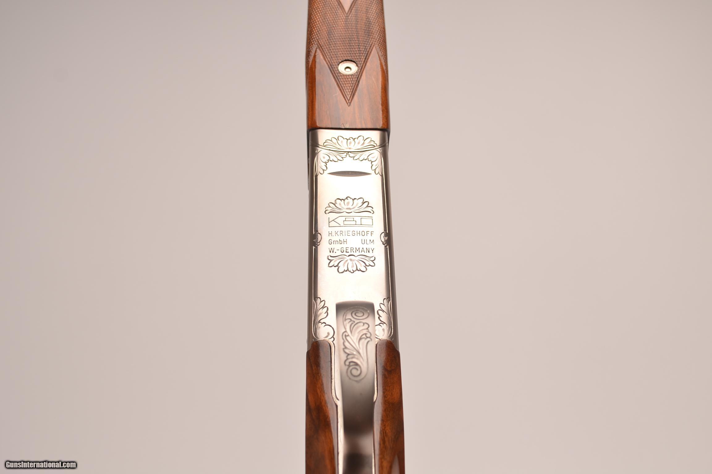 Description: Krieghoff - K80, 12ga., 30” barrels, factory chokes, pistol grip stock with adjustable comb, target forend, automatic ejectors, non-auto safety, vent rib, single selective trigger, Decelerator SC100 , standard K80 engraving, very good overall condition, available for delivery.
