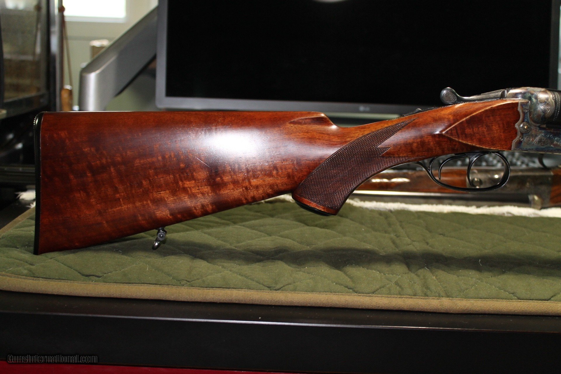 Description: If you’re looking at this offering you probably already know the outrageous quality of Simson shotguns - espesically for a gun in this price range. This is a GDR gun which, as I understand, was made prior to the dissolution of Simson Arms, but during the period of consolidation which ultimately resulted in the Merkel Arms we know today. True to form, this gun is a Simson through and through. The quality of the shotgun is superb and it doesn’t appear to have been shot much at all. I’ve probably put more rounds through it training my dog then all the time it existed before acquiring it several years ago. This is a lightweight 12 ga that handles great and essentially points itself. Condition is probably about 80-85% with most of that accounting for the age of the gun and subsequent handling. Beautiful, genuine, case colors show wear at some frame edges but as depicted in the photo’s, the case solors remain mostly intact. The gun’s equipped with sling swivels which are easily removed should the buyer prefer not to use them. I personally find them very handy. The barrels once had a mid-bead installed, but it’s broken off and the remnants remain in the barrels' rib. It’s an easy fix for those who care but in hand it’s hardly noticeable and doesn’t affect functionality in the least (see picture no 12). The guns barrels (including rib & barrel flats) are in great condition and the original white bead front sight remains intact. There are superficial handling scratches on the barrels due to age but the barrel bluing looks great overall - no bluing loss. The wood is in fantastic shape and aside superficial handling marks here and there, there are no heavy scratches through grain, no heavy dings, cracks of any kind, or repairs. Please note that I lightly refreshed the wood by cleaning it up and then simply wiping down with linseed and a touch of spar urethane (rubbed in) soon after I acquired it. I selected the gun personally from the importer several years ago. This gun was cherry in comparison to many other offerings and it also felt (and appeared) basically unused mechanically. Gun remains in great shape today and it’s still very tight from the factory. This is an heirloom quality sxs in that, with basic care going forward, this gun’s ready to be used in the field or even in the marsh for generations to come - just what Simson/Merkel/Suhl sxs’s are known for. At 6-3/4 pounds the gun’s not only a pleasure to carry, but also surprisingly fast and nimble for a 12ga due to the fact it balances so well. The stock dimensions (and cheek pc) make it an incredibly nice gun to shoot instinctually - believe that! This is a field gun through and through and the tasteful hand engraving depicts that well. Capped pistol grip, splinter fore end, double trigger, 28” steel barrels with side clips, and cocking indicators adding a nice touch. Bores are clean with no rust or pitting. Tight chokes! An easy job to open chokes if one so desires, but I suggest using the gun first - it just might surprise some to know just how good the tight chokes in these guns are for Chukars and Pheasant. I have also used spreader-loads in this very gun to good effect when working over a young dog and close flushing birds. Buy with confidence - this is a nice a shotgun. Weight = 6 lb 12 oz DAC = 1-5/8" DAH = 2-5/16” LOP = 14-3/8" Chokes: Full and Full $1400.00 + shipping & insurance to your FFL. No trades. SOLD Shotgun Gauge: 12 Gauge |