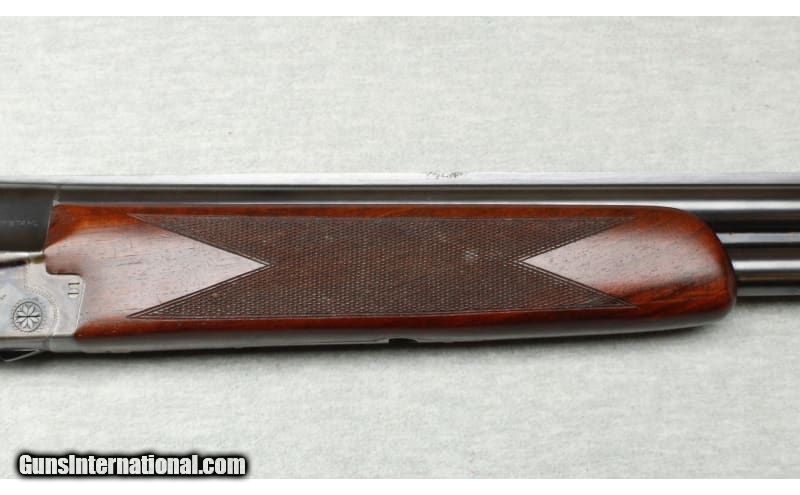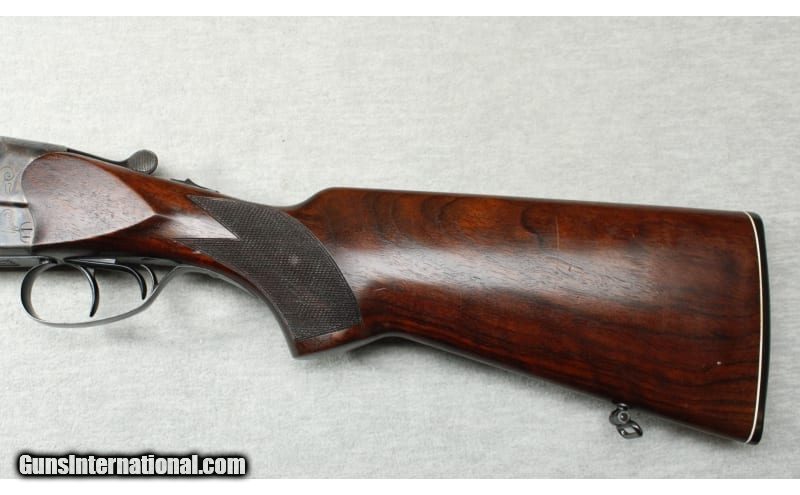 Description: Excellent condition, light finish wear, few small scratches & nicks. 12 Gauge OU shotgun with 28"" solid rib barrels choked IC / Full. Double triggers, blued barrels, case colored receiver, premium checkered wood forend & stock, sling swivels and factory butt plate. 12 Gauge SOLD Chambers: 2 3/4 Metal Condition: Excellent Wood Condition: Excellent Bore Condition: Bright Barrels: 28 Triggers: Double triggers Stock Dimensions: 13 1/2" LOP Fore End: Checkered Butt Pad: Factory butt plate Sights: Single white bead Chokes: IC / Full Item Location: La Vista, NE |