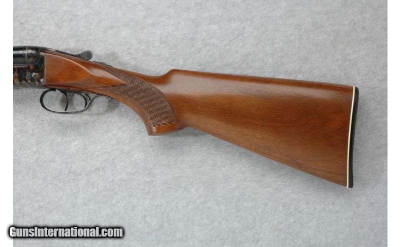 Description: SOLD Manufacturer: Made in Italy. Caliber Info: 20 GA Chambers: 2 3/4 inch and 3 inch. Metal Condition: Very good with minor handling marks. Wood Condition: Very good with minor handling marks. Bore Condition: Very clean, bright and shiny. Barrels: 28 inches with a solid rib. Triggers: Double Stock: Checkered walnut pistol grip. Lightly engraved case colored receiver. Stock Dimensions: LOP 14 1/4 inches. Fore End: Checkered walnut Beavertail style. Butt Pad: Checkered black hard plastic plate. Weight: 5 lbs. 15 oz. Sights: Brass front bead. Chokes: Fixed Modified and Full. Item Location: Noblesville, IN |