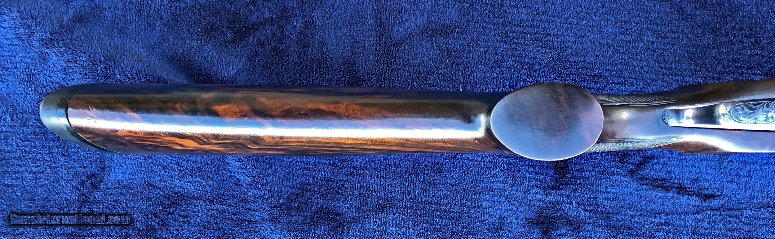 While the receiver is finished with a coin finish, the barrels, forearm iron, top lever and trigger guard are finished blue – an overall artful contrast well planned by this best maker.