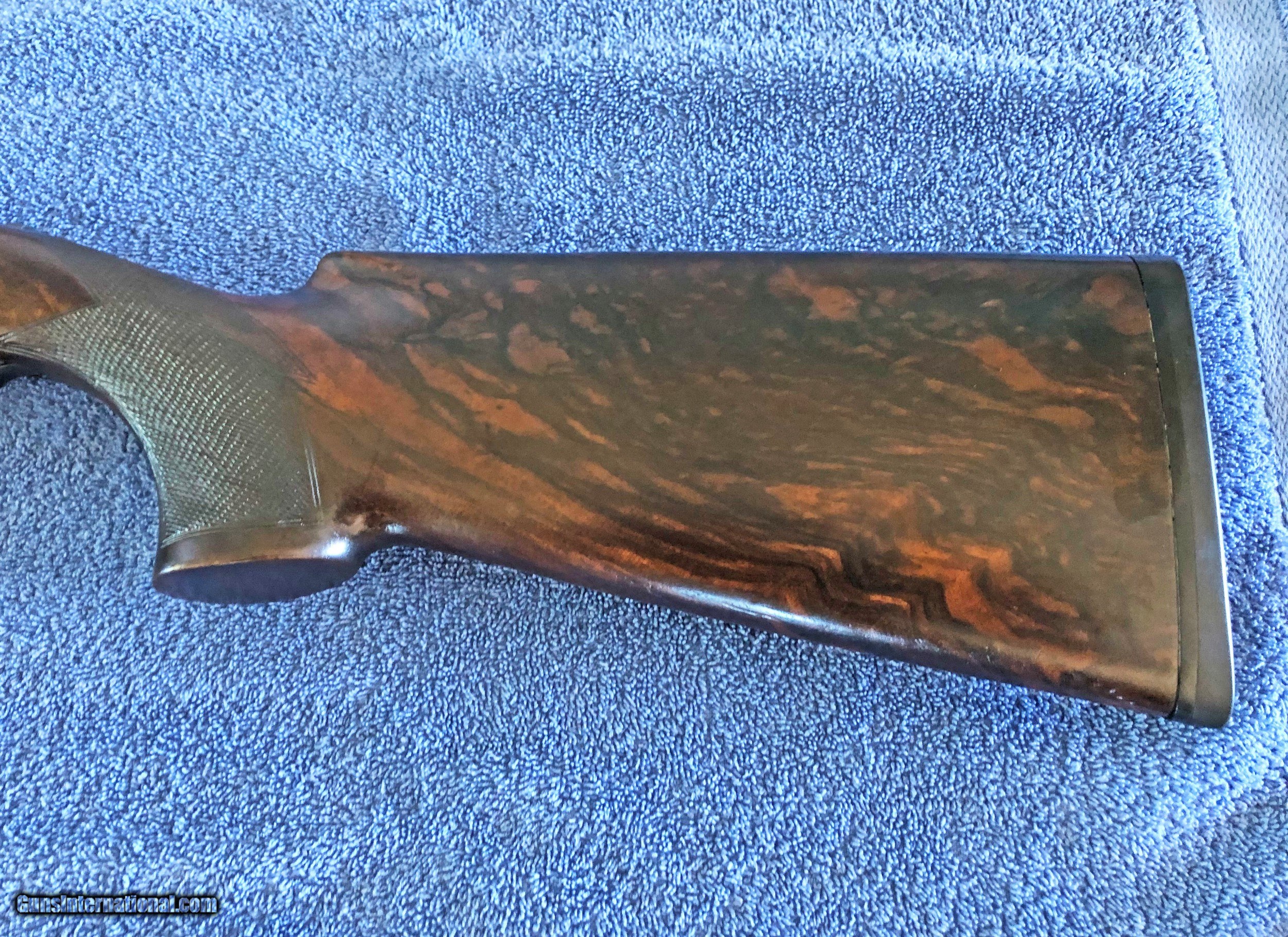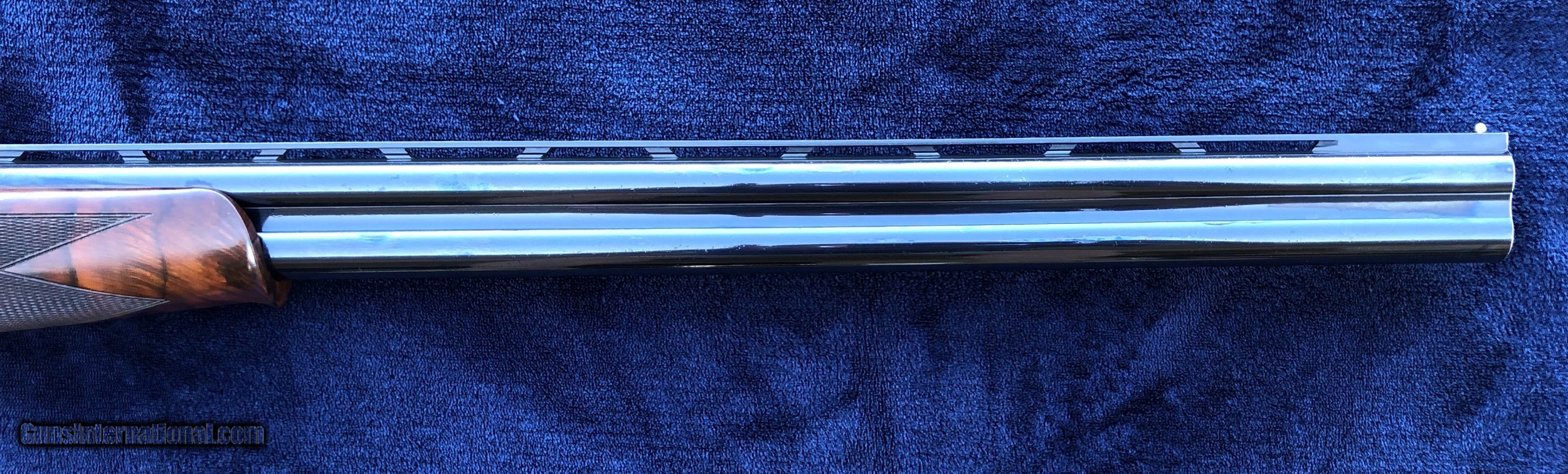 Condition: Although built in 2003, this is a virtually a NEW gun. It retains 100% original barrel blue. The original wood finish is 99%; the checkering is at 100%; the bores are as new and the action remains as tight as new. Barrels ring with a pleasing chime.