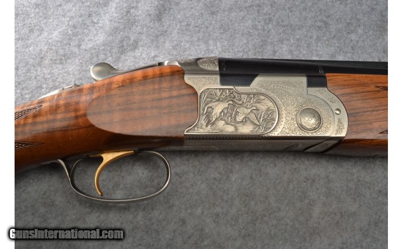 Description: SOLD Caliber Info: 12 Gauge Chambers: 2 1/2 and 3 Metal Condition: Very Good/Light Handling Marks Wood Condition: Very Good with Light Handling Marks and Scratches Bore Condition: Shiny and Bright Barrels: 26 1/2 Triggers: Beretta Gold Trigger Stock: Highly Figured Walnut Stock with Checkering Stock Dimensions: 13 1/2" LOP Fore End: Walnut Checkered Forearm with Schable Tip Butt Pad: Black Rubber Pad Weight: 7.2 lbs Sights: Vent Rib with Bead Chokes: Variable Choke Tube Item Location: Woodbury, MN |