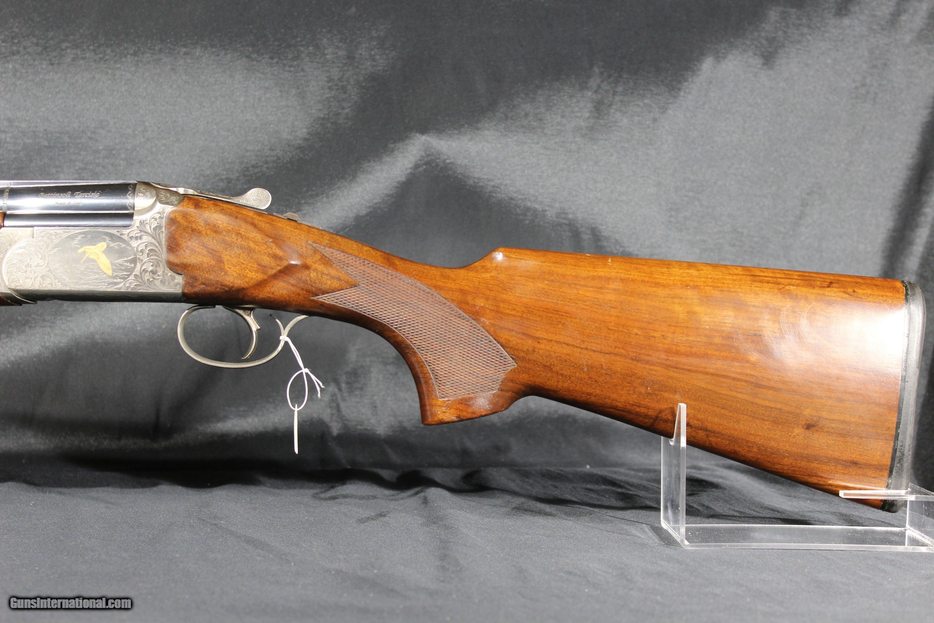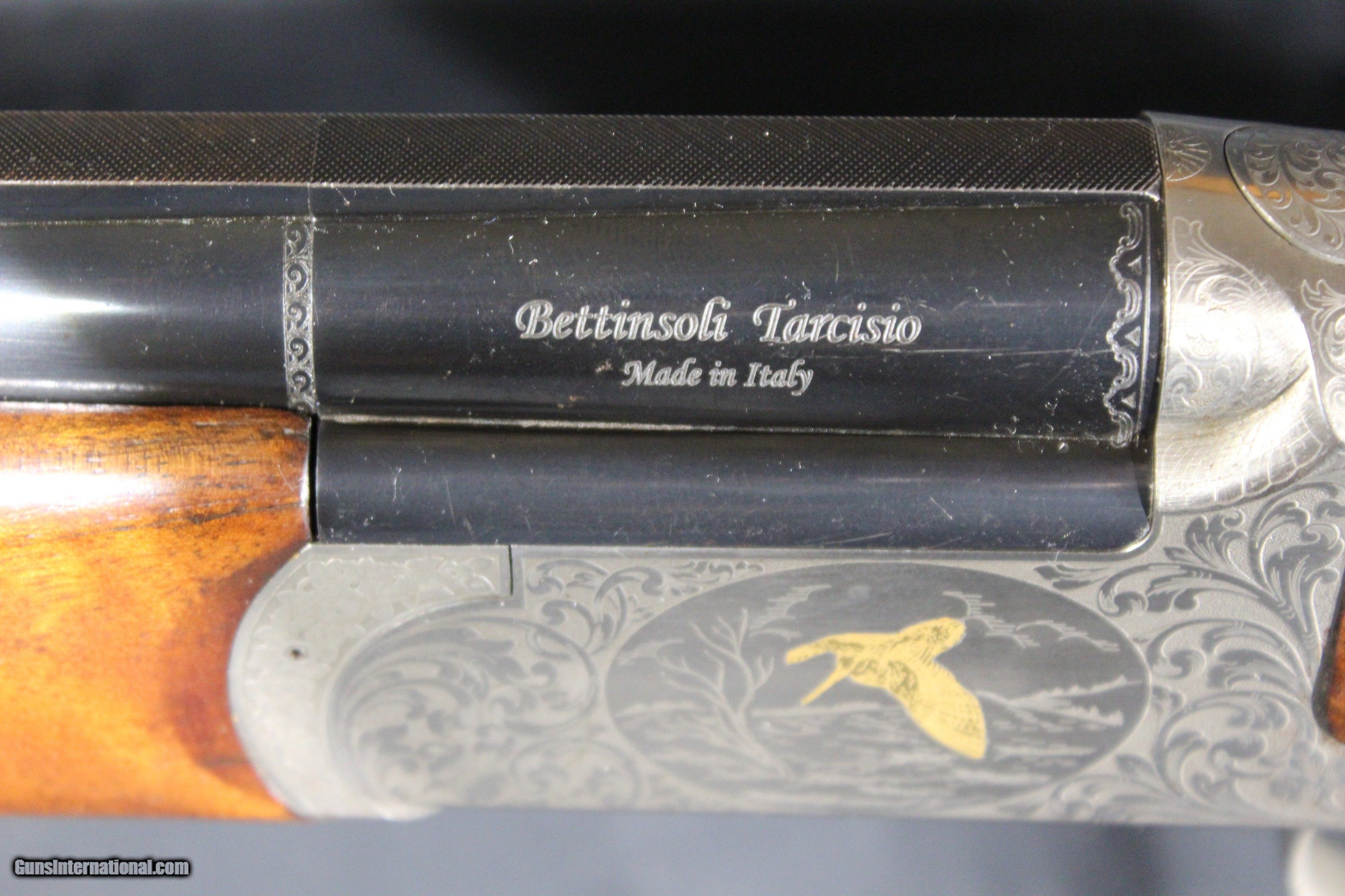 Description: BETTINSOLI TARCISSIO 12 GA. Diamond DeLuxe Gun has 30" Barrels chokes are multi gun comes with two installed. single triger that is selective. LOP 14 3/8 drop at comb 1 1/2" drop at heel 2 1/4" gun weighs 7.6LBS. Gun has 3" chambers. Please see pictures for condition. BETTINSOLI’S shotguns represent the best compromise between the ancient tradition of gun makers in Gardone Val Trompia to the modern technology provided by CNC machinery. The selection of excellent raw materials and state of the art surface treatments, as well as the precision in the final assembly, enable BETTINSOLI to offer a product where value for money is really unbeatable. Before launching new models on the market, our guns have to undergo very strict tests both in the factory and in the Gardone V.T. National Proof House. No gun whatsoever will pass if it does not fully meet the requirements enforced by the law plus the quality demands, performance and reliability that are preset by our company. When each gun is put into production, it is subject to many visual checks and dimensional measurements. Additionally, several guns are subject to tests such as excess pressure and obstruction to guarantee sturdiness and reliability. All our guns are subject to a forced test at 1370 Bar and, on request, our National Proof House in Gardone V.T. will perform a forced test with steel shot cartridges to test the functioning and the endurance of the materials used. Therefore, on the customer’s request, we can provide a formal certificate of this test. The barrels, made from chromium molydenum steel, are drilled and reamed with special geometry to guarantee the maximum elasticity and excellent ballistic performance. Furthermore, on some models the barrels are reamed in a particular way with a long forcing cone between the cartridge chamber and the barrel bore, called DualCon that, added to the particular shape of the bore of the barrel, allows the shot from the fired cartridges to adopt a superior velocity and guarantees a considerable reduction in recoil. For super light models, the special “Woodcock” version barrels are available from 60cm Raye?: meaning barrels that have the top barrel with Interchangeable Chokes and the lower barrel is entirely rifled (the helical radius favours a wide and homogeneous distribution of shot from the first 7-10 meters). The over and under barrels are supplied with Steel Shot specifics allowing the use of steel shot loaded cartridges. The firing mechanism has been studied to enable fast and safe shots, the single trigger is selective and can be both inertial or mechanical. The hammers and sears offer a second cocking position that intervenes in case the first position is damaged, a safety advantage. The same are operated by regulator coil springs with rebound. In this way, after firing, the firing pins never protrude from the breech face guaranteeing safety and favouring a smooth opening of the barrels after firing. The hinge pins are interchangeable and the large surface locking bites contribute to the resistance and durability of the gun in years to come. SOLD Shotgun Gauge: 12 Gauge Manufacturer: BETTINSOLI TARCISSIO Model: Diamond Lux Serial Number: 135820 Barrel Length: 28 Chambers: 3 Engraving: through out |
