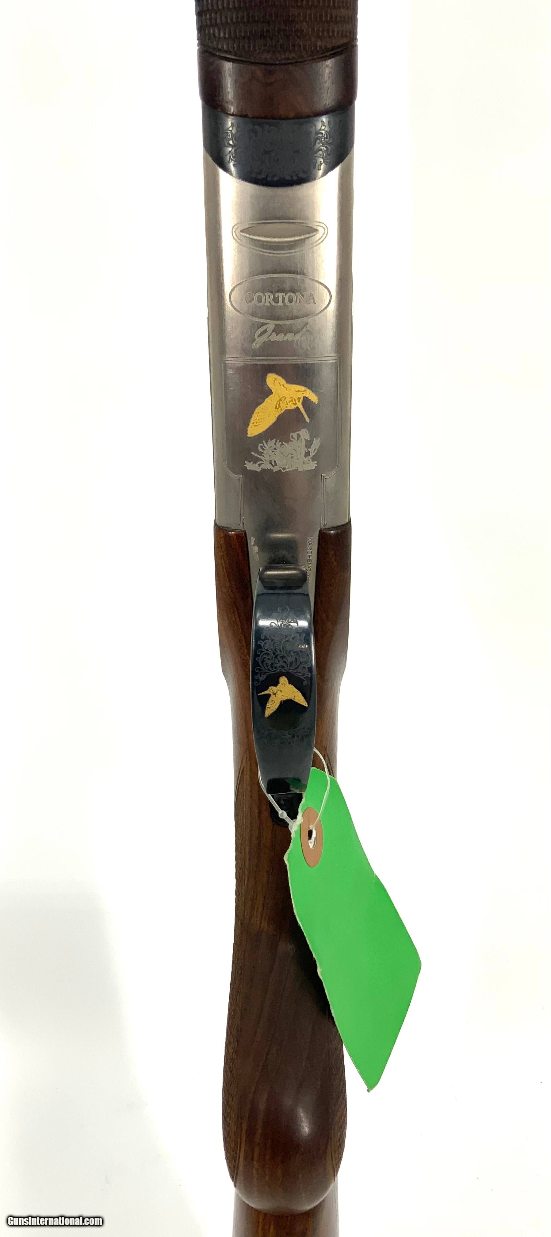 Description: Guns Listing ID: 475173 -Cortona Grande 20 gauge over/under shotgun with 3 inch chamber, 26 inch barrels - Prince of Wales style walnut stock -Schnabel walnut forend with screw in chokes. - Lightweight aluminum receiver - Engraved with various birds with gold inlay -Gold trigger -Anson style fore-end -Custom checkering -Lightweight field shotgun SOLD Manufacturer: CORTONA Model: GRANDE Condition: Used - Non-Certified Barrels: 2.6 BARREL Gauge Info: 20 GA Finish: WALNUT STOCK |