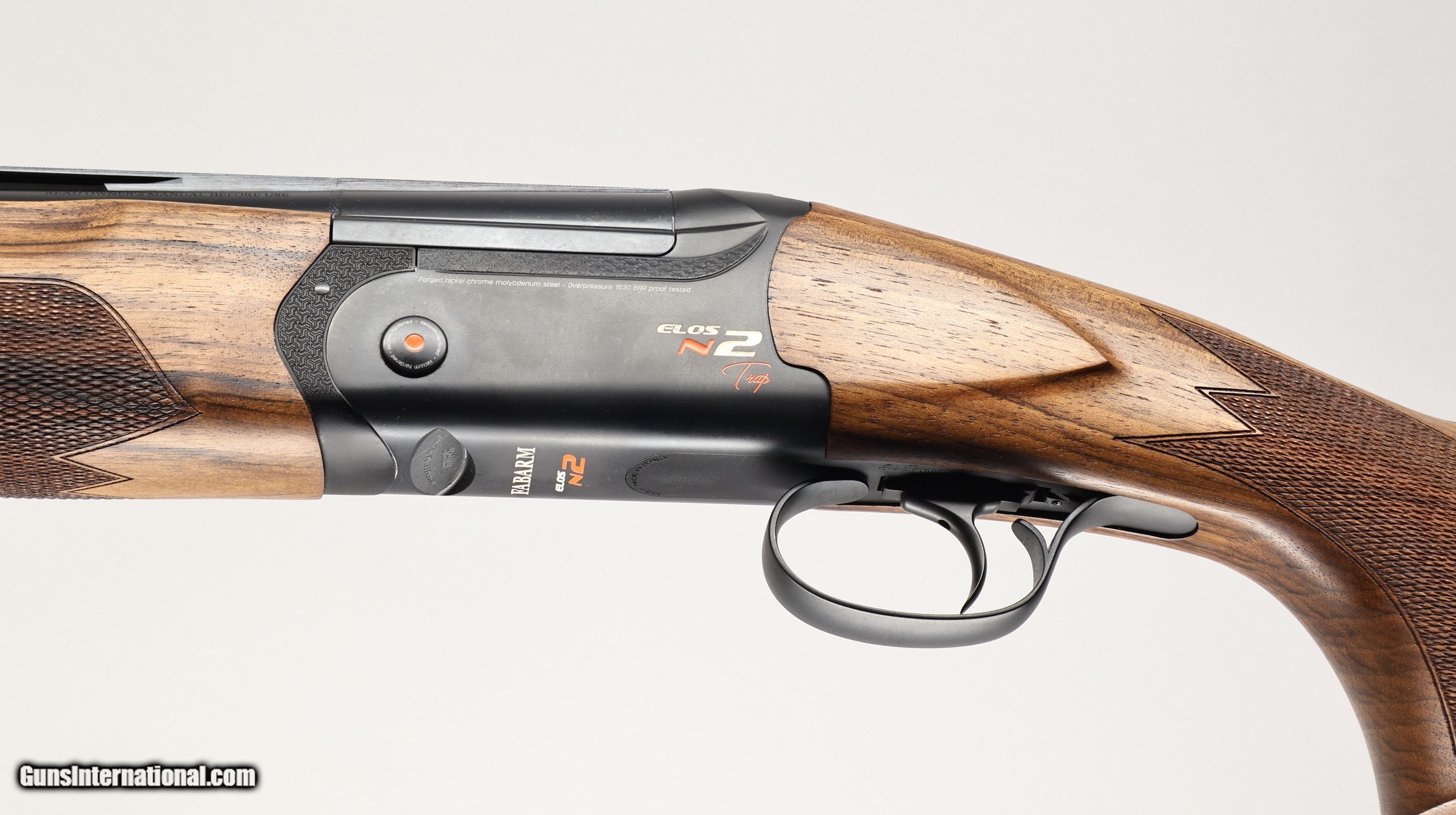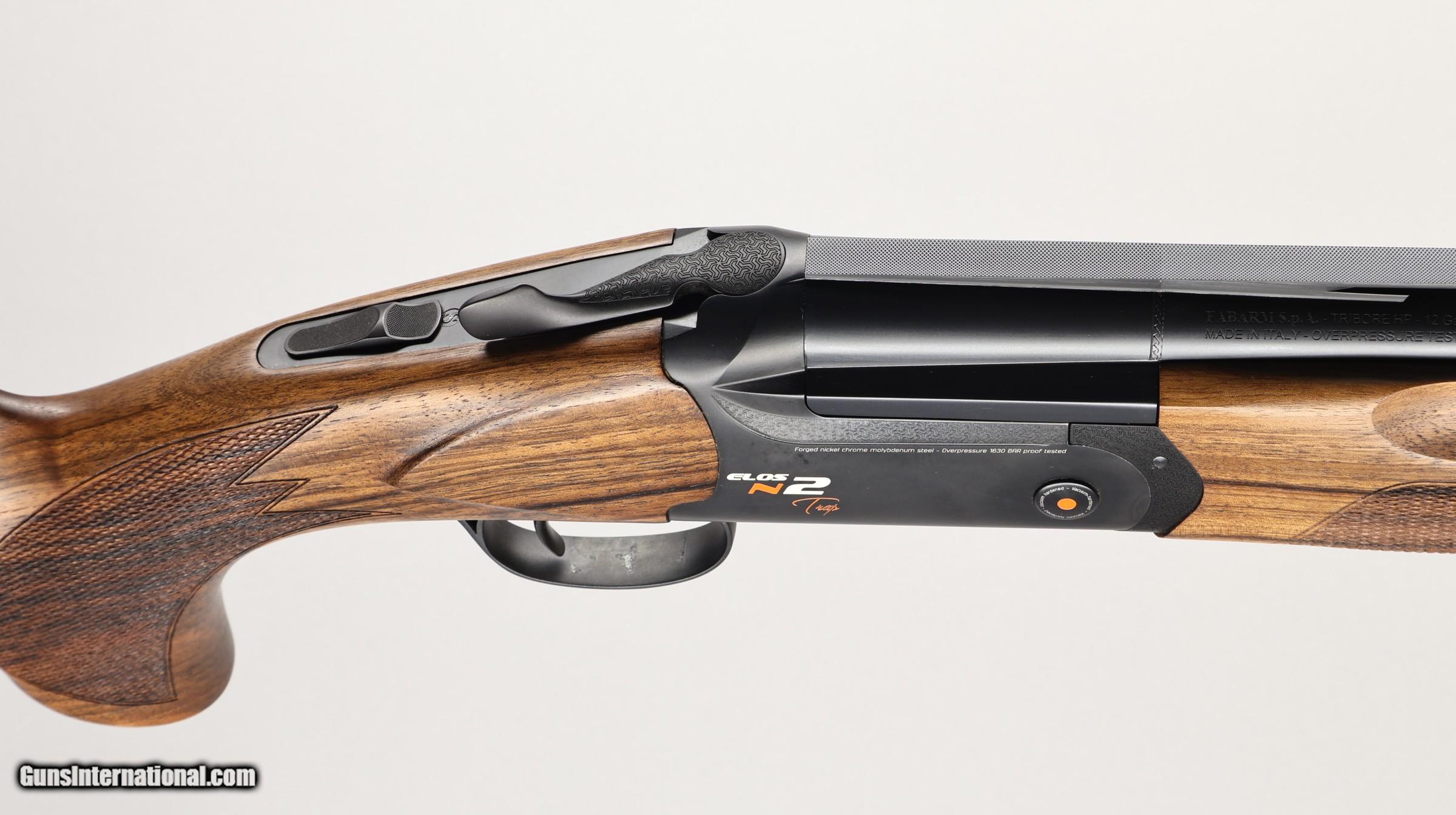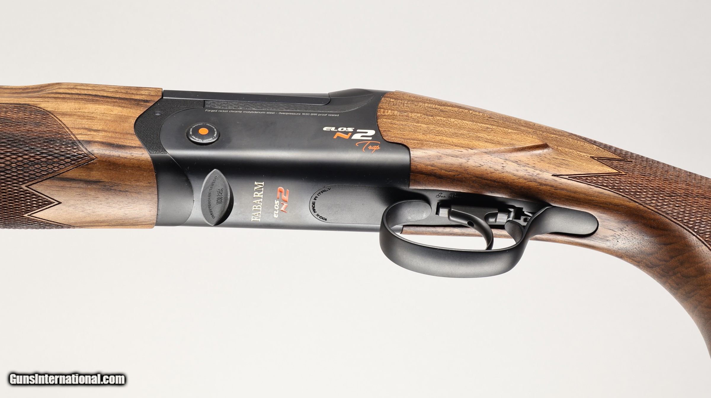 Description: European style Fabarm ELOS N2 Trap Adjustable comb European style Fabarm ELOS N2 Trap, 12 Ga, a precision trap shotgun designed for competition, featuring 32" Over/Under barrels without chokes, a ventilated parallel rib, and a white Bradley-style bead with a silver mid-bead for quick sighting. It offers an adjustable stock with a factory-fitted recoil pad for comfort on long clay sessions, and includes four extended factory chokes to tailor performance to your preferred course. Pristine shop demo - non-fired as new. Adjustable comb. This Italian-made ELOS N2 Trap is built with an Over/Under action and 12 Ga chambering, 32" barrels, 2 ¾" chambers, a ventilated parallel rib at 10 ½ mm, and right-hand cast. The stock is wood with a pistol grip and palm swell on the right, with 15" Length of Pull and 14" LOP to Wood; it weighs 7 lb 14 3/10 oz and has an overall length of 48". Four extended factory chokes are included in the case. The gun is licensed for FFL; manufactured in Italy in 2024. Price is $2999. Seller Inventory #05965.