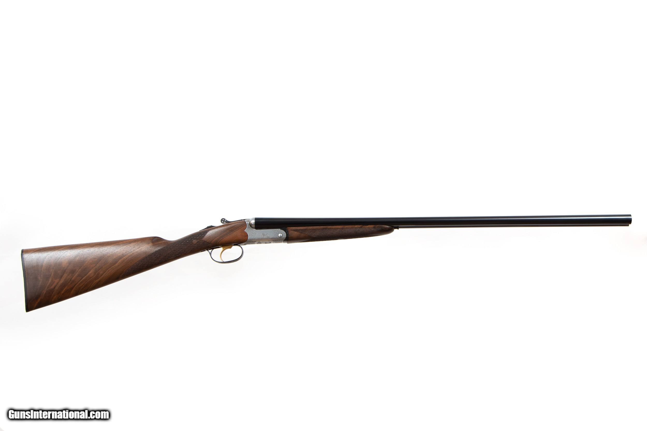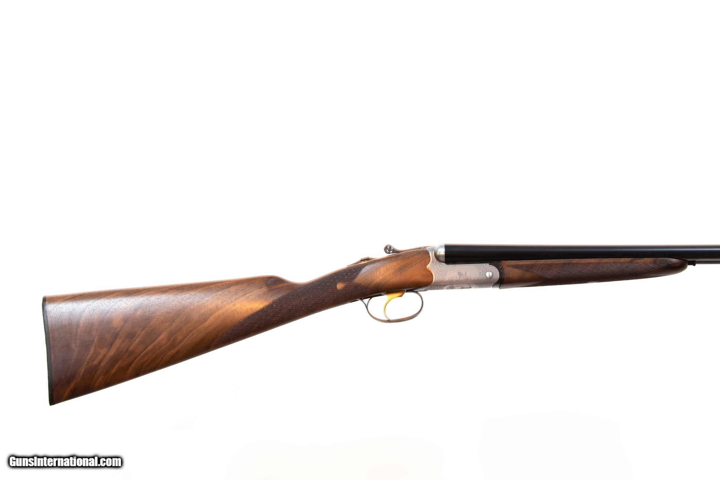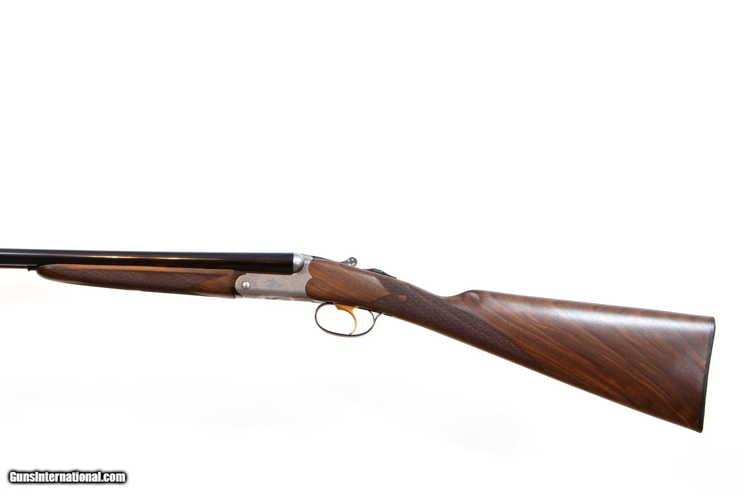 Description: F.A.I.R. Iside EM | 20GA 28" | SN:335374 A great designer once said that perfect operational engineering is often surprisingly beautiful as well. During its public debut, connoisseurs and authorities alike commented immediately on the pleasant lightness and delicate balance of the Iside shotgun, yet noted the feeling of strength and mechanical brawn hidden beneath the smooth lines of its round-body receiver. Featuring all steel construction and chopper-lump barrels, the heart of every Iside shotgun exemplifies pure yet robust elegance. Special Features: Coin finish frame, ejectors, single selective triggers, gold trigger, fretworked lever, hard rubber buttplate, ships in ABS case SOLD Shotgun Gauge: 20 Gauge Manufacturer: F.A.I.R Model: Iside EM Serial Number: 335374 Barrel Length: 28 Chambers: 3 Ejectors: yes Condition: NEW Metal Condition: New Wood Condition: New Bore Condition: New Barrels: Side x Side Barrel Type: Side x Side Field Action: Low Profile, Nickle finish Triggers: Single, fixed Stock: Select Walnut Stock Dimensions: 1 3/8" x 2 1/4 Stock Drop: 1 3/8 Stock Comb: fixed Stock Heel: 2 1/4 Stock Cast: Cast Off (RH) approx. 1/8 Fore End: Splinter Butt Pad: plastic plate LOP: 14 1/2 Rib: 8mm - 5mm Tapered Flat Finish: Oil Weight: 5 Lbs. 9.2 oz. Sights: White front Chokes: TC XP50 - 5 included Engraving: Laser, Game scene Extras: Case, chokes, manual Case: Factory- Hard case Item Location: Maine |