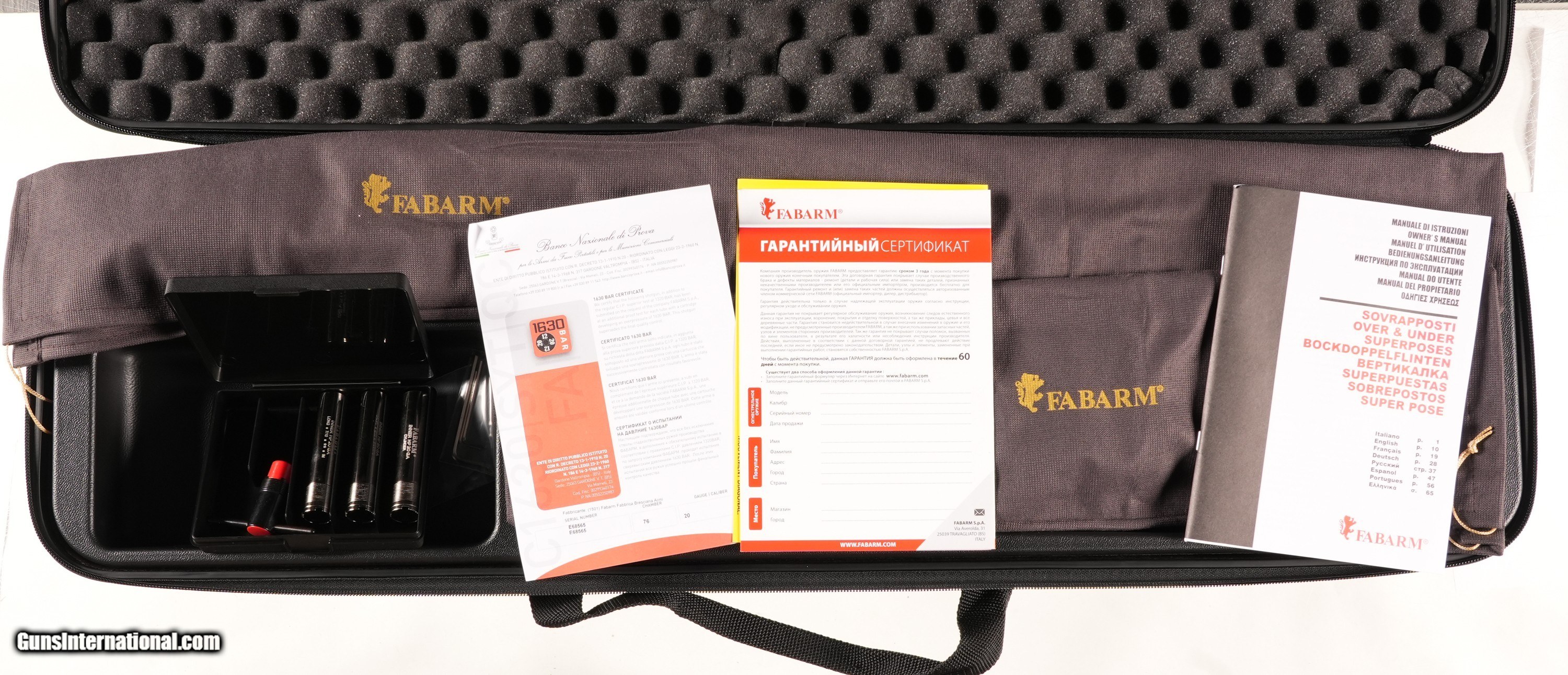 Includes the original Fabarm soft-sided luggage case with chokes, wrench, and full paperwork. Terms: