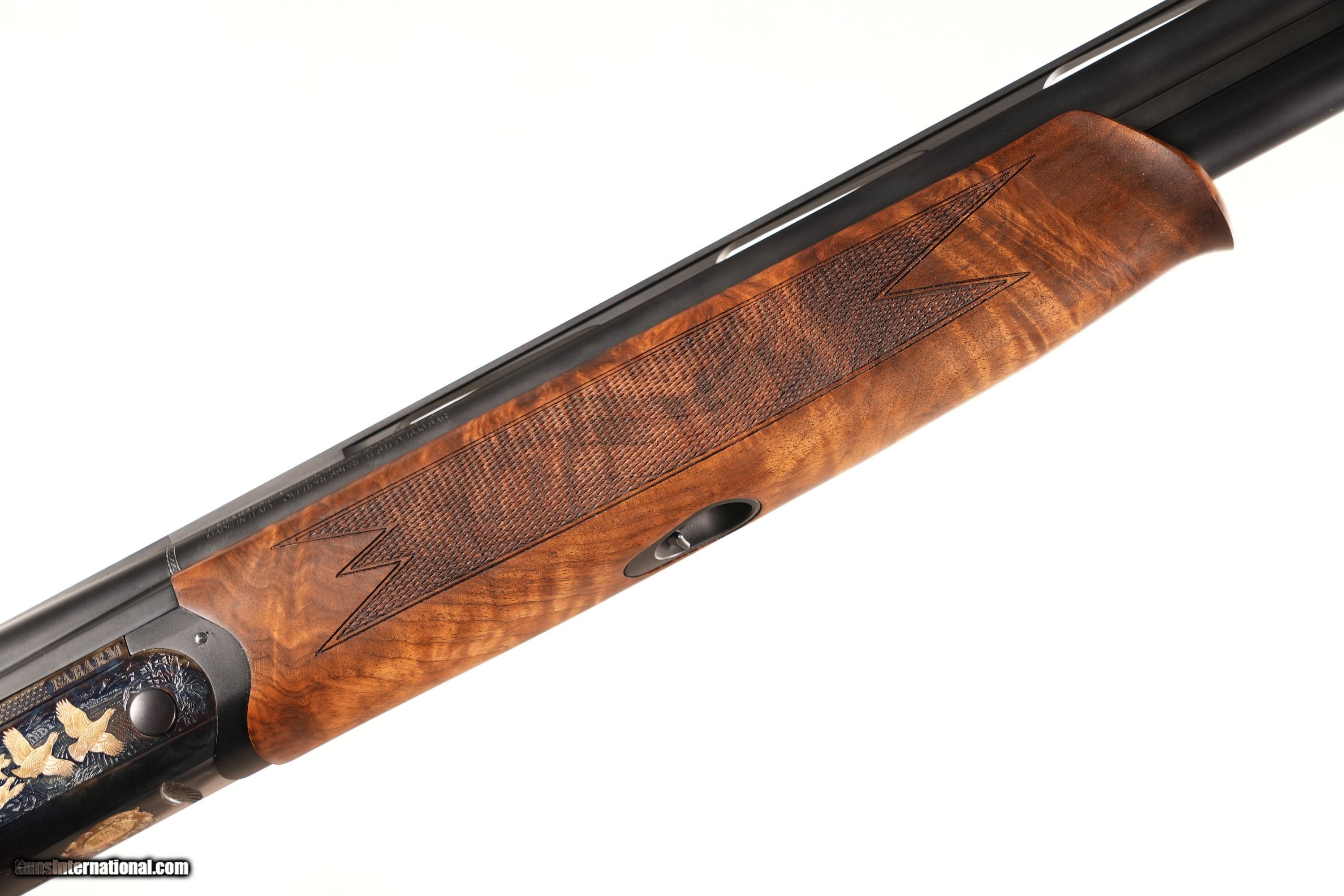 Description: Fabarm Elos 2 Elite Over/Under Shotgun – 20 Gauge – 30" Tribore Barrels, Case Colored Receiver, Bottega Giovanelli Engraving Serial #E68565 | Mfd 2023 | 3" Chambers | 5 Chokes | Factory Case | Modern A premium offering from Fabarm, this Elos 2 Elite Field model in 20 Gauge combines traditional elegance with modern performance. Built with 30" Tribore HP barrels and a vent rib, this shotgun is chambered for 3" shells and comes with 5 factory interchangeable chokes and wrench. The case-colored receiver is beautifully engraved with gold-inlaid game scenes by Bottega Giovanelli, accented with a gold trigger. Wood is highly figured walnut with a pistol grip and checkered pattern, ending in a factory recoil pad.