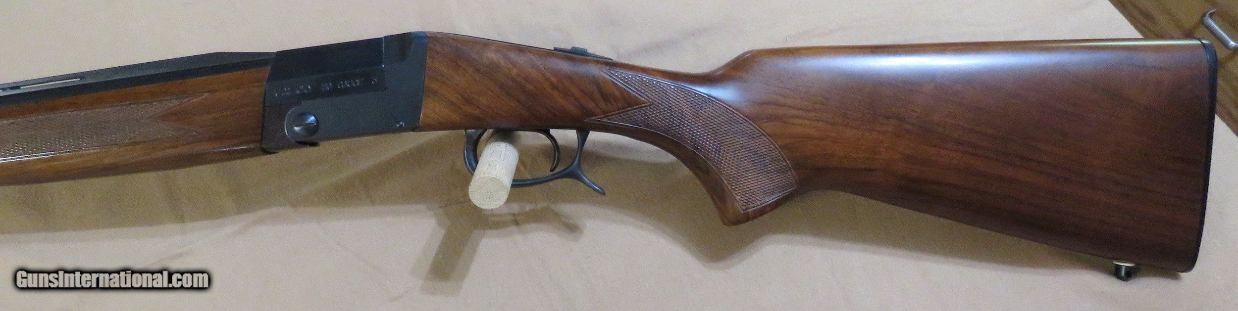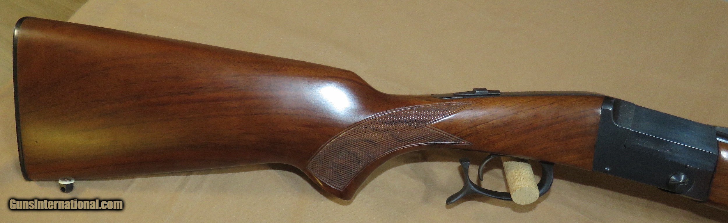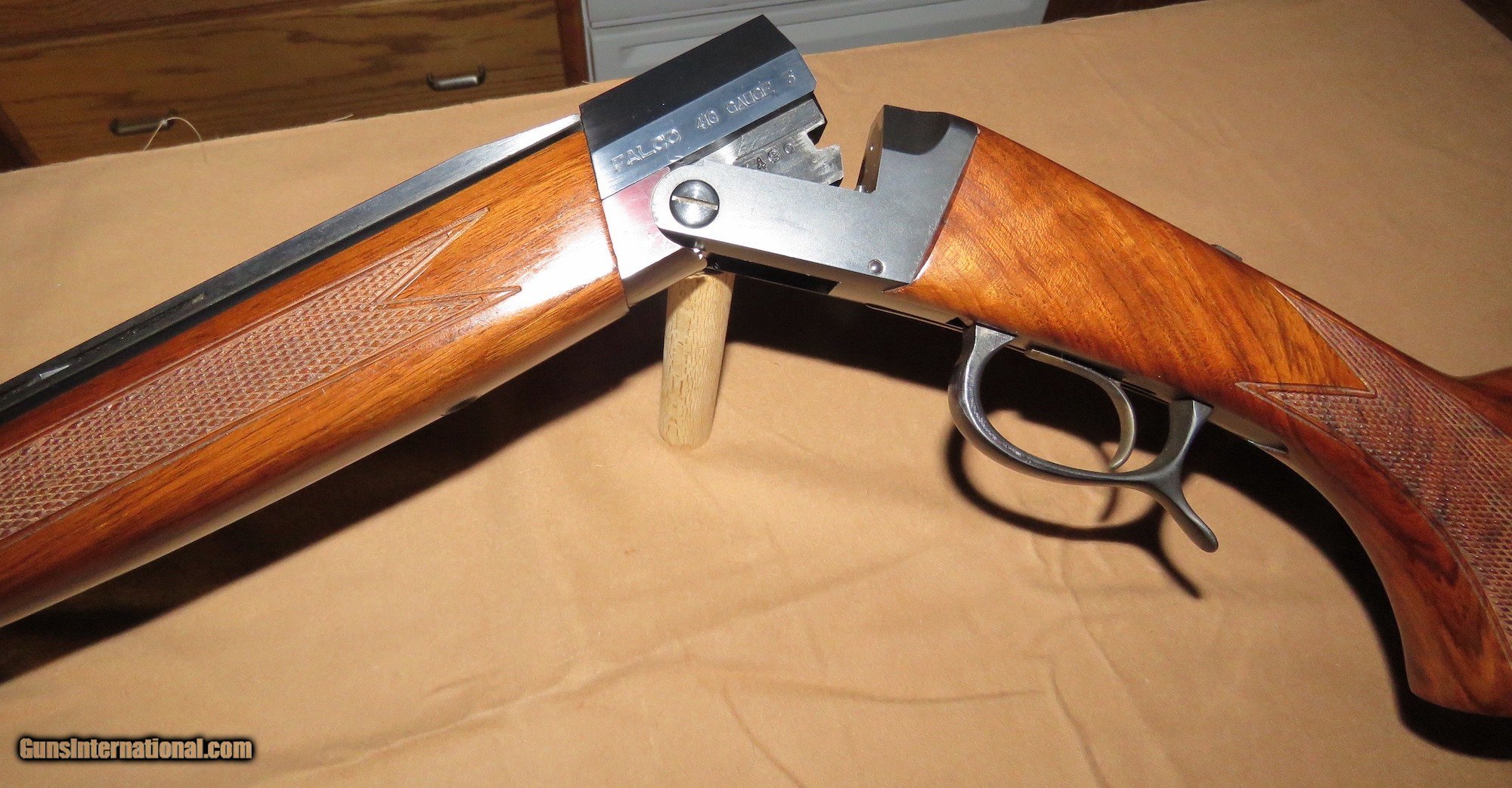 Description: This trim little shotgun has 24 inch barrels choked full and modified. The stock and forearm are hand checkered highly figured walnut. Single non selective trigger with tang safety. Chambered for three inch shells. Action is good and tight.Ventilated rib, black bullseye buttplate, and sling studs. Really nice Butler Creek sling is included. Nice kids starting shotgun. Shipping is free but if I have to go through a FFL my FFL charges $50.00. I am selling this as a consignment so there is no return. Thank you for looking. SOLD Shotgun Gauge: .410 Gauge Manufacturer: Falco Model: Finito Serial Number: A2490 Barrel Length: 24 inches Condition: Excellent Metal Condition: Excellent Wood Condition: Excellent Bore Condition: Excellent Barrels: Double Barrel Type: Over/Under Stock: Walnut LOP: 131/2 inches Rib: Vent Extras: Buttler Creek sling |