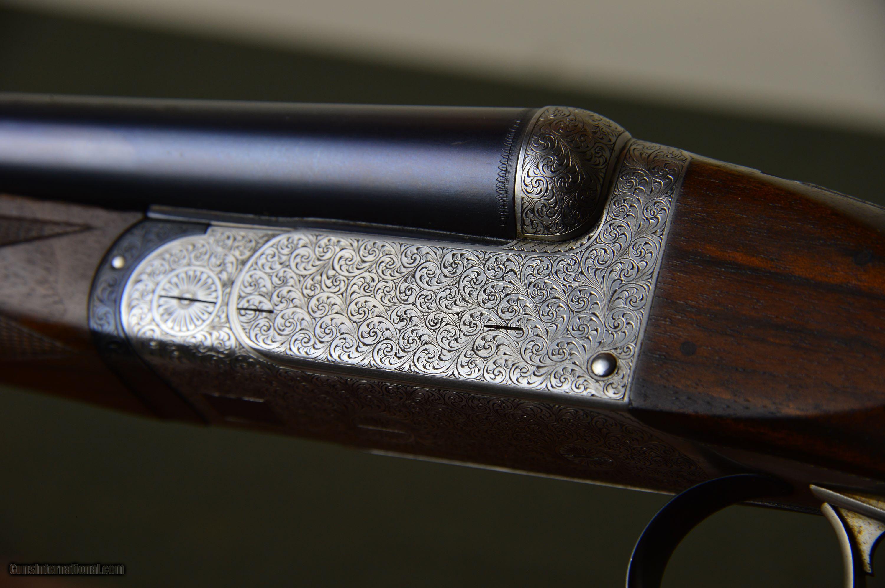 Description: *** SOLD *** This Italian wand was made in 1979 by Ferlib who specialize in making boxlocks. They are part of the Filli Rizzini family which commercially is one of the top gunmakers in Italy if not the world. It is Ferlib's "Italia" model and is stocked in a nicely figured piece of European walnut, and at 5lb 8oz it is a deadly little quail, grouse and woodcock gun. Easy to carry and lethal. *** The frame is fully engraved in Ferlib’s signature tight scroll. This double is on face and in excellent condition. It has double triggers, auto ejectors, and a non-auto safety. The quick handling 26” barrels are chambered for 2-3/4” shotshells and topped by a raised solid hand cross hatched rib. The left barrel is bored 0.565 and with a constriction of 0.013 is choked a tight Modified. The right barrel is also bored 0.565 and has a constriction of 0.007 for Improved Cylinder choke. *** The straight grip stock and splinter forearm are made of nicely figured walnut. The checkering is crisp. Stock dimensions are 14-3/4” over a 1/2” rubber butt pad by 1-1/2” by 2-3/8”. This gun has a lot of cast off but a competent gunsmith should be able to bend to fit its new owner. *** Ferlib produces doubles in limited numbers so few are available at any one time. This is your chance to own a really nice small bore from a great Italian maker. Isn’t it time to reward yourself? *** Buyer is responsible for all shipping, insurance, and any other related charges. I give a 3-day non-firing inspection period and will only accept returns at buyer’s expense if the gun is not as described in the listing. SOLD |