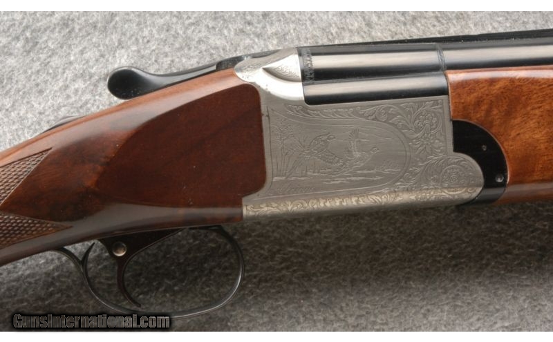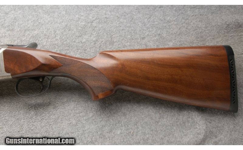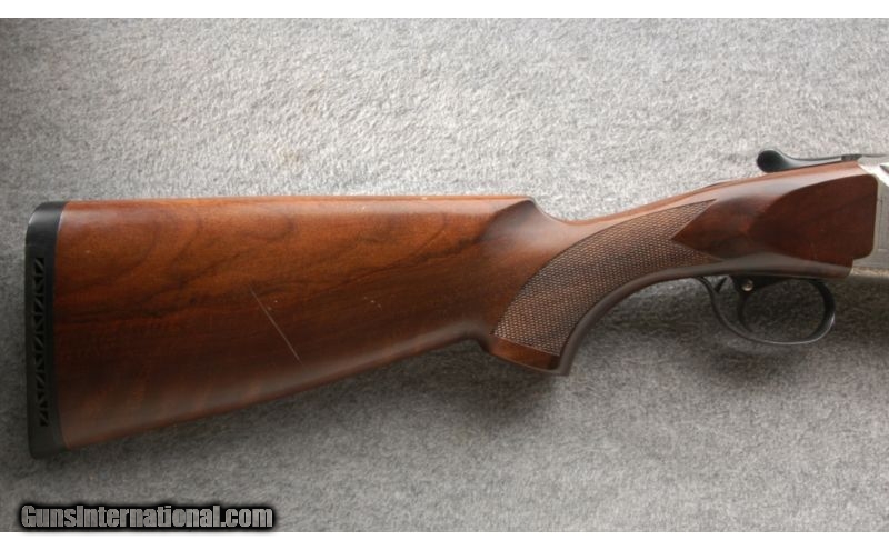 Description: This is a nice clean shotgun with only a few very minor marks. SOLD Caliber Info: 12 Gauge. Chambers: 3 Inch Over/Under with ejectors. Metal Condition: Looks like new. Wood Condition: Very good with a couple of minor thin scratches.. Bore Condition: Bright and shiny. Barrels: 28 Inch blue with vent ribs. Triggers: Single blue. Stock: Nice walnut with a checkered pistol grip. Stock Dimensions: 14 1/4 Inch LOP. Fore End: Matching walnut with checkering and finger grooves. Butt Pad: Black rubber vented butt pad. Weight: 7 Lbs 13 Oz. Sights: Single front white bead on the vent rib. Chokes: Screw in, comes with MOD and IC Item Location: Owatonna, MN |
