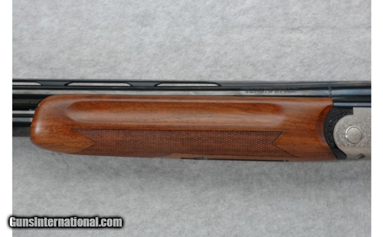 Description: Coin finished receiver is scroll engraved with gold inlays of duck and pheasant in flight outdoor scenes. SOLD Caliber Info: 12 GA Chambers: 2 3/4 inch or 3 inch. Metal Condition: Very good. Wood Condition: Good. A small crack behind top tang. Bore Condition: Very clean, bright and shiny. Barrels: 27.5 inch ventilated rib barrels. Triggers: Single gold. Stock: Checkered walnut round knob. Stock Dimensions: LOP 14 1/2 inches. Fore End: Checkered walnut with finger grooves. Butt Pad: Franchi rubber recoil pad. Weight: 6 lbs. 5 oz. Sights: White front bead. Chokes: Tubes Extras: With Hardcase Item Location: Richfield, WI |