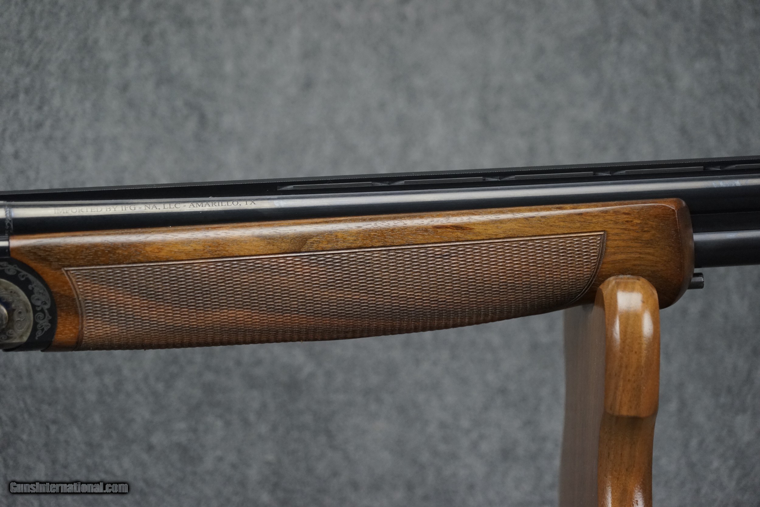 Description: The Jubilee series also includes a Prestige model, with long side-plates, a slender profile and no screws. There are three Prestige versions: Jubilee Prestige, with classic chromed finishing; Jubilee Prestige Tartaruga Gold, with old-style colour hardened action and five gold-plated engravings and Jubilee Prestige XLIGHT®, with nickel-plated aluminum action of unmistakable elegance and exceptionally light weight. 28 Gauge IFG/FAIR Jubilee Prestige Tartaruga Gold 28 Gauge 28” Barrels Weight: 5lbs 14.2oz SOLD Shotgun Gauge: 28 Gauge Manufacturer: IFG/FAIR Model: Jubilee Prestige Tartaruga Gold Barrel Length: 28" Barrels Condition: BRAND NEW |