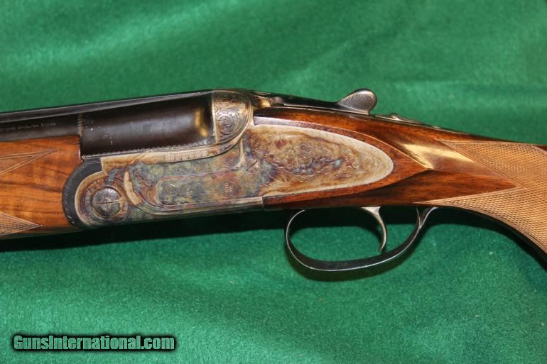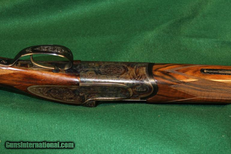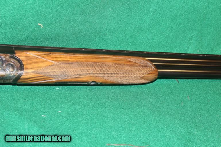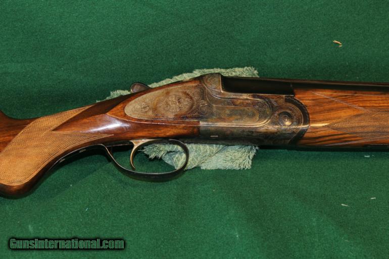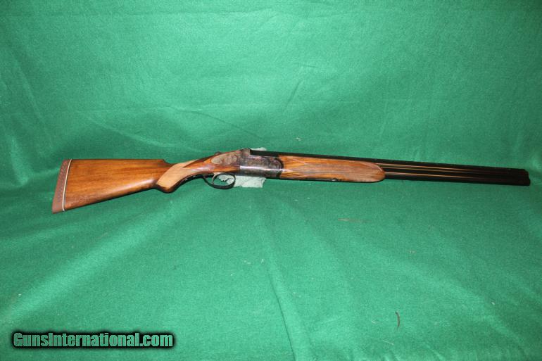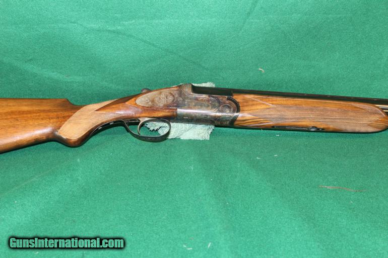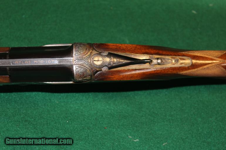 Description: Imported By Atlas Arms as their model 107 12 gauge O/U with side plates and extractors. High quality gun with 2 set of original barrels marked Vickers English Steel 28 Full x Mod and 26" I.C. x I.C. L.O.P is 13 3/4 to non selectable trigger. Water table and breech faces are engine turned. Extensive scroll engraving, Deeley for end release. Case color is near 100%, Blue is 98% plus Forend is near 100% butt stock is 95% with storage scratches. Gun shows little use. From the Gardone region and has the inscription Manifitture Riunitt Armi SOLD |