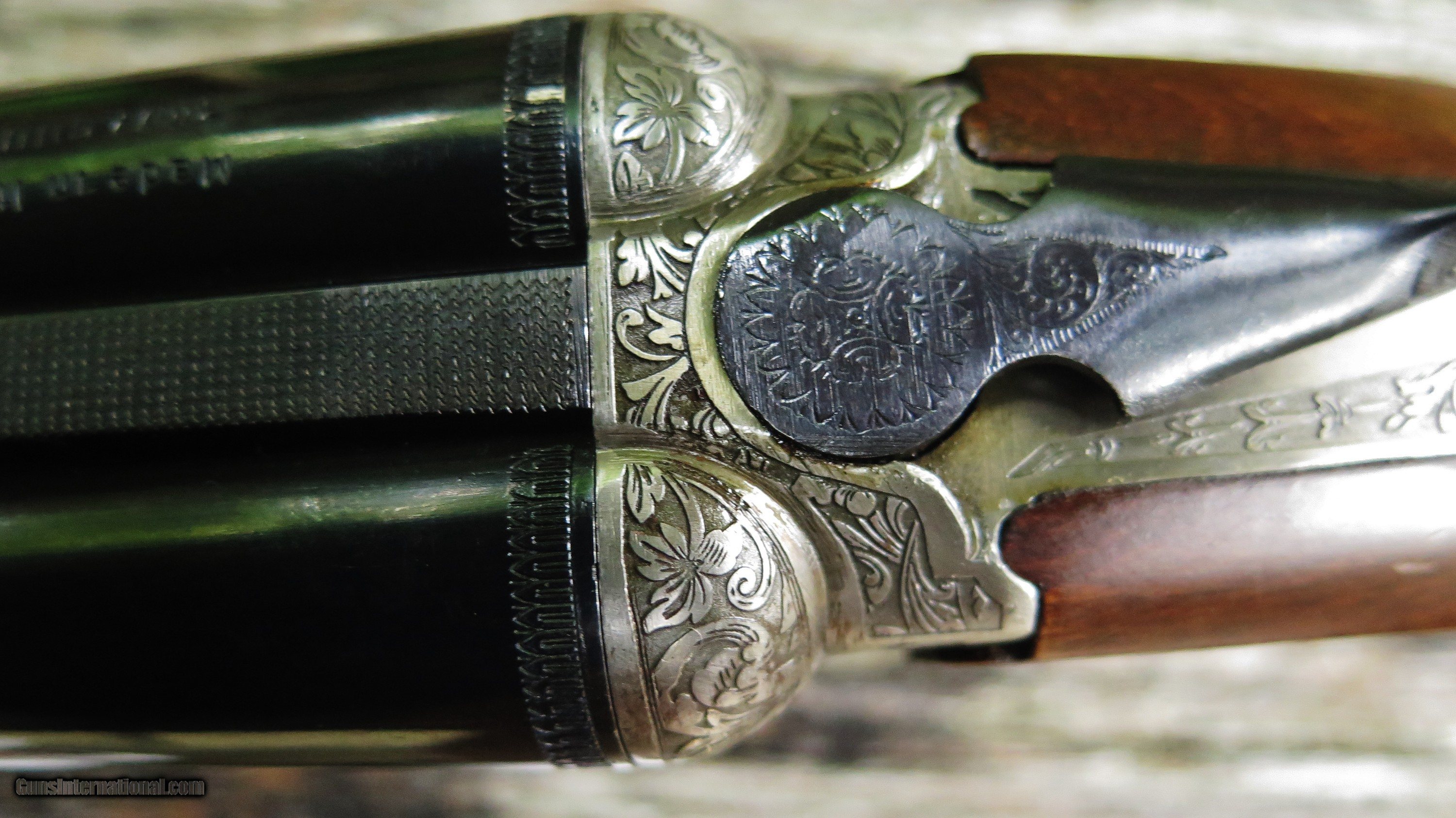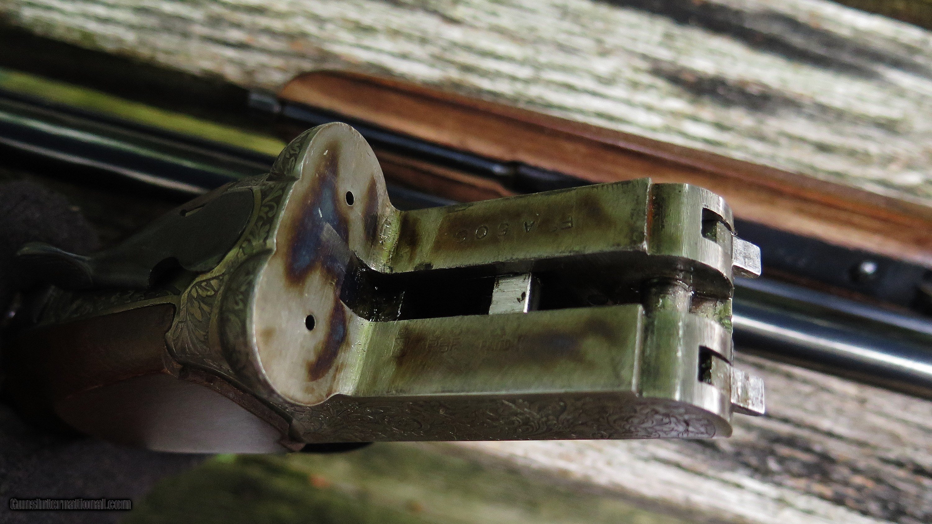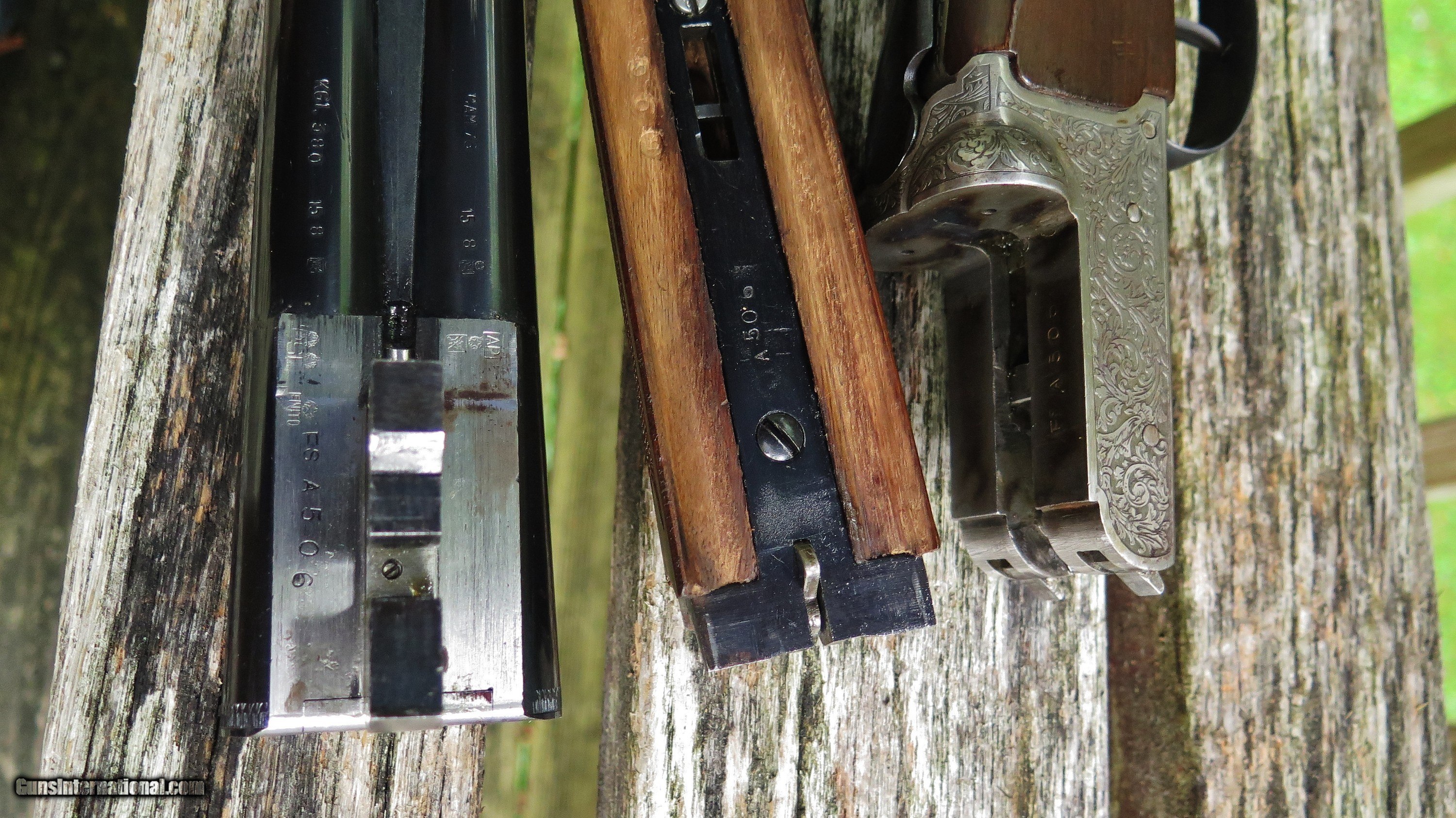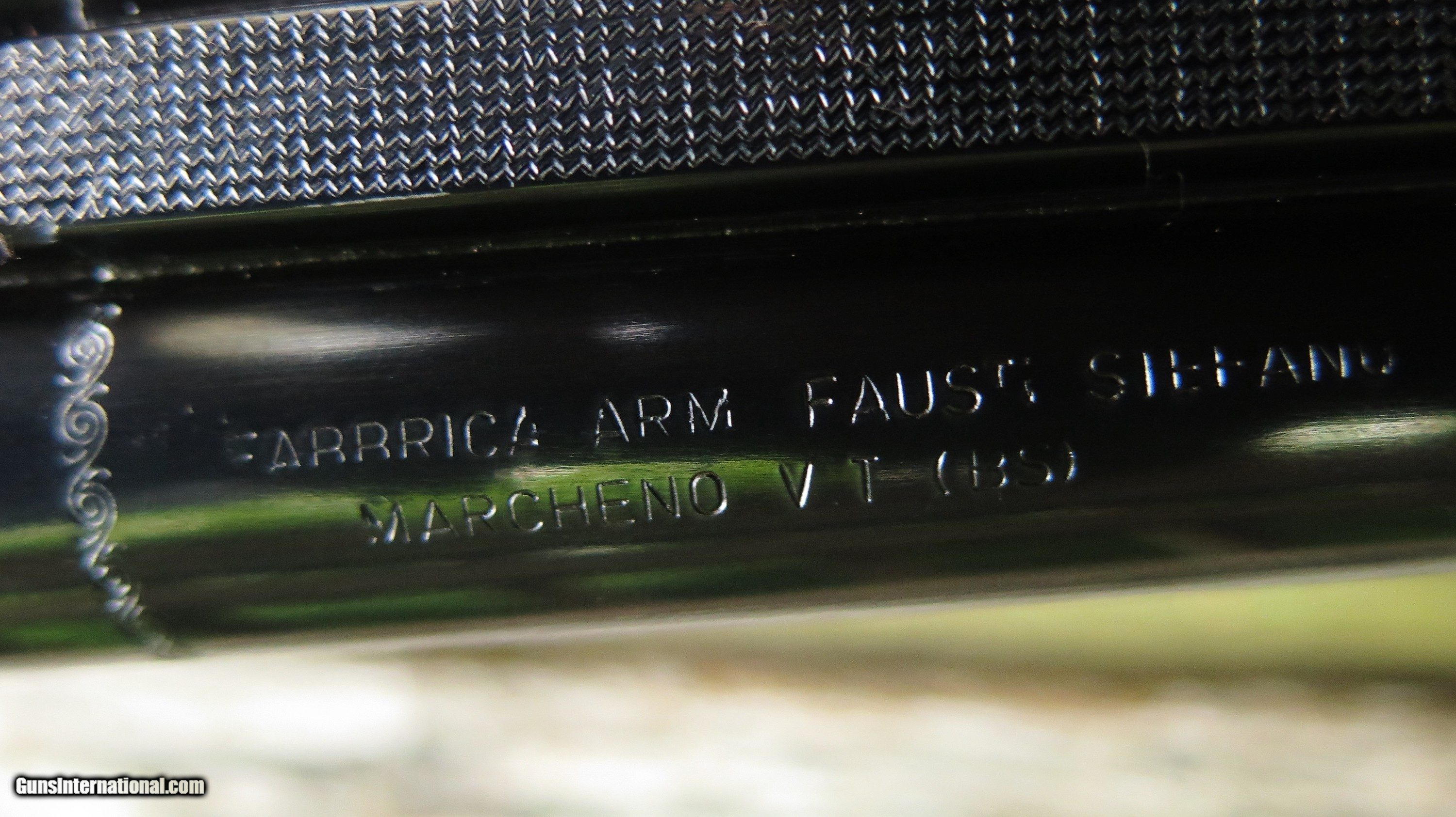 Description: Italian made Fabbrica Arm Faust Stefano Sovereign made for Dr. France Beretta. It is a side by side 20 gauge shotgun with 3 inch magnum chambers. Made back in 1986. 28 inch barrels with fixed Full and modified chokes. Bright and shiny bores. Smooth tight lock up. Clean and crisp trigger break. 14.75 inch length of pull. 2" Drop. 6.63lbs total weight. Very minty oriiginal condition. Looks nearly unfired. It is tight like a new gun. Everything is workin just fine. This is a very well made gun by a well respected Italian gun maker. Fausti also partnered with Weatherby and made the Over and Under line of shotguns. Please excuse the reddish grease that I did not completely wipe from the engraving. I am Oregon Lumberjack on the other big site with 1000's of positive feedbacks. I am a FFL dealer in Connecticut for over 35 years. Shipping is $60 to your dealer. SOLD |