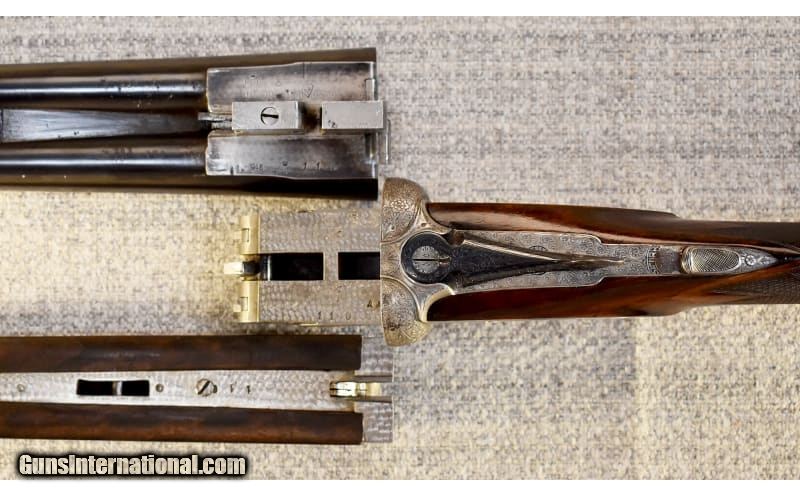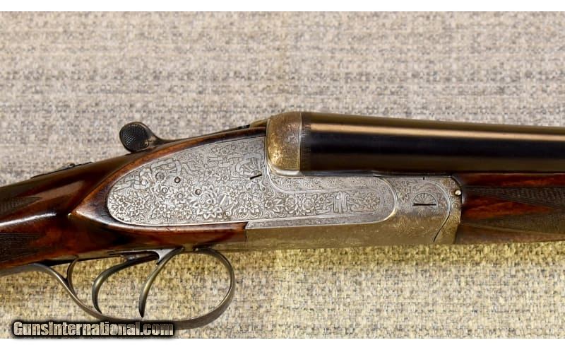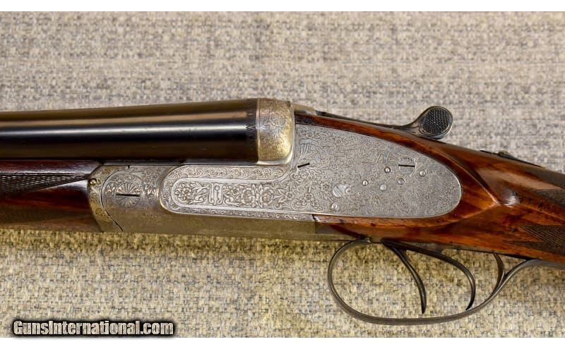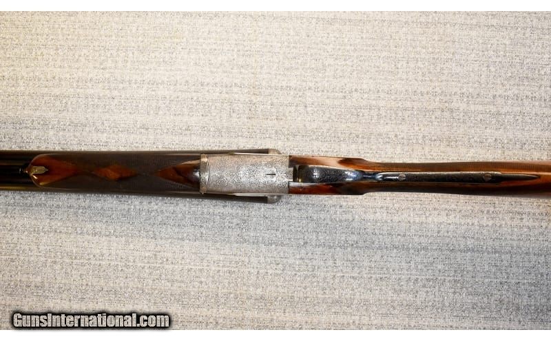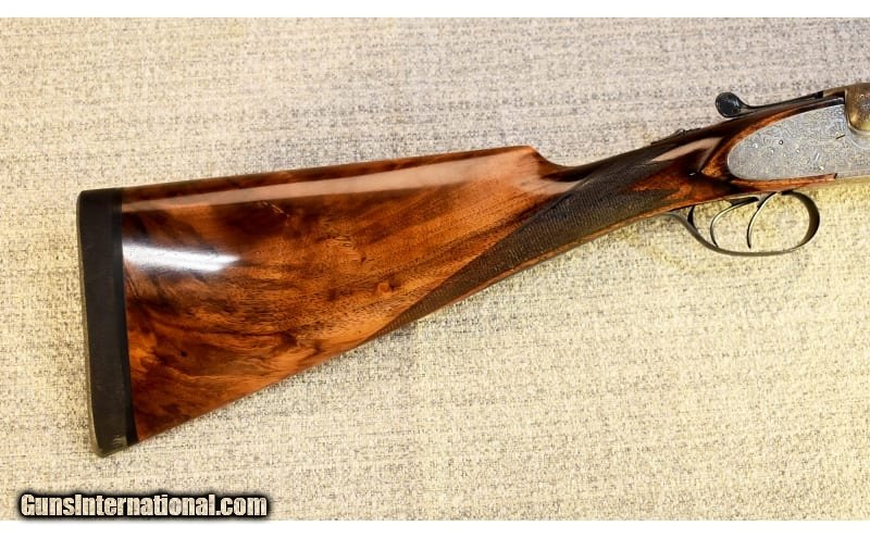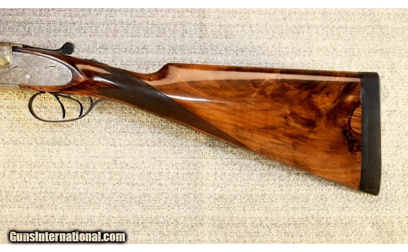 Description: This is a nicely made pre-owned Italian 12 gauge sidelock double chambered for 2 1/2" shells with ejectors and "ACCIAIO RUNSTAHL" stamped on the barrels 12 Gauge SOLD Chambers: 2 1/2 Metal Condition: Quite good overall with a number of small scratches and light wear to the bluing at the muzzle Wood Condition: Very good with a few small scratches and dents Bore Condition: Clean and bright Barrels: 27.5 Triggers: Double triggers Stock Dimensions: 14 1/2" LOP ~ 1 1/8" DAC ~ 2 1/4" DAH Fore End: Splinter style Butt Pad: Pachmayr Decelerator Weight: 7 Lbs. 2 Oz. Sights: Brass bead Chokes: Fixed Item Location: Glendale, AZ |