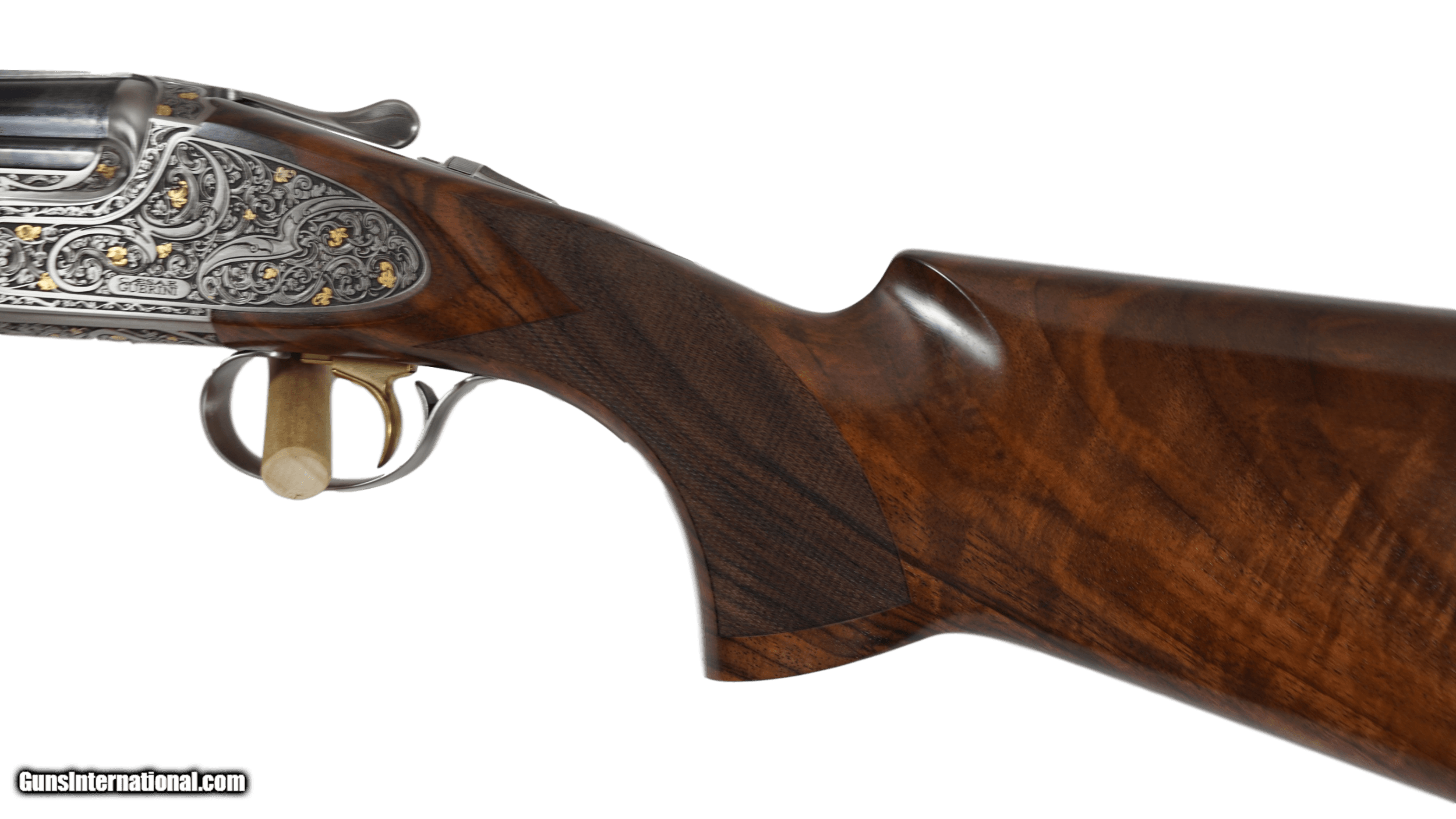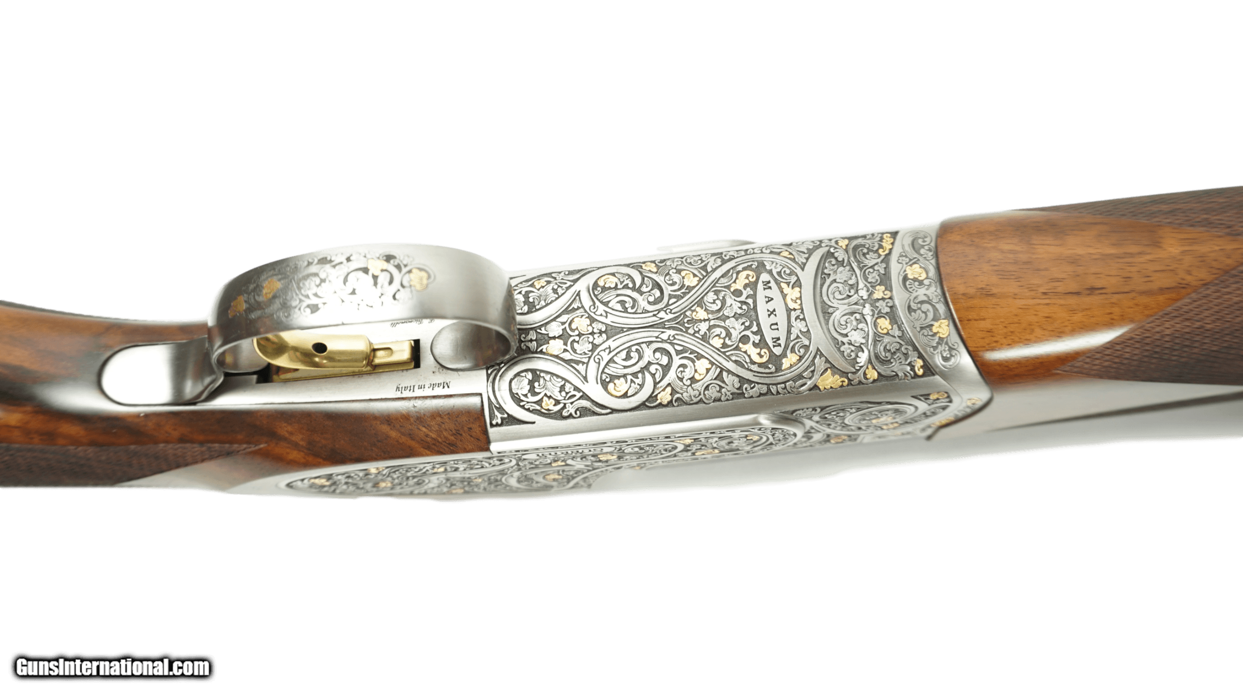 Description: CLAY SHOOTERS SUPPLY Caesar Guerini is offering in a very limited run, a special Gold Edition of our Maxum Sporting model. Only a select number of dealers will feature this LIMITED offering. ONCE THEY ARE GONE, THEY’RE GONE! Contact us for details! 210-610-2999 EXT 1 The Maxum Sporting is truly a stunning over/under shotgun. The deep relief gothic scroll hand finished engraving on the receiver, side plates, and fore-end assembly make this sporting gun unique among others on the clays course. The handwork and design are from the studios of the world renowned Italian engraving house, Bottega Incisioni C. Giovanelli. The coin finish frame is painstakingly hand polished. Balancing the beauty of the deeply sculpted engraving is a deluxe grade of Turkish walnut, featuring precision cut 26 lines-per-inch checkering and a natural oil finish, hand rubbed to a sheen that enhances the highly figured wood grain. The Maxum Gold Sporting is available in 12 gauge with and 32″ barrels. SPECIFICATIONS ModelMaxum Gold Sporting (Limited Edition)
