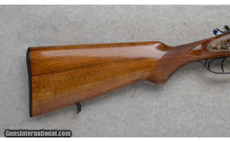 Description: This MI-VAL Model Side by Side is a shotgun that comes in 12 Ga. It has 28 inch barrels with extractors and a solid rib. A brass bead front sight. With 2 3/4 inch chambers it has fixed Full and Modified chokes. It has double trigger and external hammers. The butt stock is a checkered grip round knob walnut pistol grip. The forearm is a checkered grip walnut splinter. The case colored receiver and hammers are very nicely engraved. 12 Gauge SOLD Chambers: 2 3/4 inch. Metal Condition: Good. Some minor use marks. Wood Condition: Good. Minor handling/use marks. Bore Condition: "Clean, bright and shiny. Barrels: 28 inch barrels with extractors and a solid rib. Triggers: Double Stock Dimensions: LOP 14 1/4 inches. Fore End: Checkered grip walnut splinter. Butt Pad: Checkered ARMI black plate. Weight: 6 lb. 12 oz. Sights: Brass bead front. Chokes: Fixed Full and Modified. Item Location: Richfield, WI |