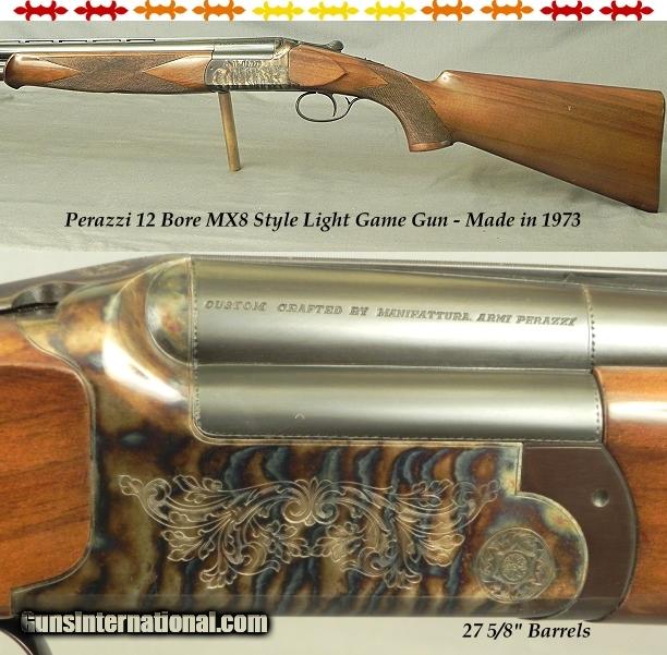 PERAZZI 1973 LIGHT GAME MX8 STYLE 12- 27 5/8" V R Bbls.- CASE COLOR FRAME- 6 Lbs. 15 Oz.- OVERALL in 97% ORIG. COND.