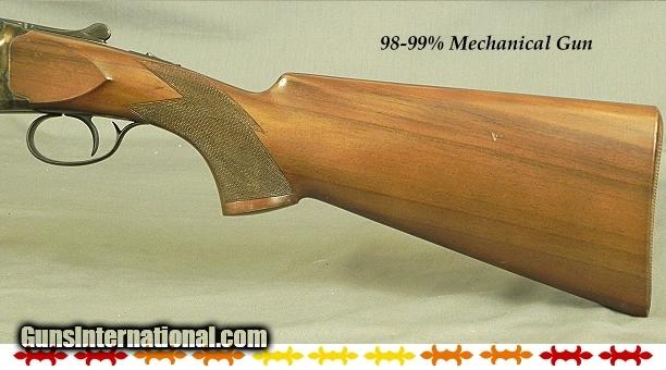 Description: #42044, Perazzi MX8 Style Light Game - 12 Bore O/U Game Gun Made in 1973 with 27 5/8" Ejector Vent Rib barrels at .729 .024 & .048" (Mod. & Full), Original Factory marked chokes at Mod. & Full, 2 3/4" Chambers, KG 1,420 weight barrels, Flat matted vent rib, Detachable single non-selective trigger with flat springs, Type III tapered game forend with a schnabel, 14 1/16 x 1 9/16 x 2 5/8" over a full face checkered butt, Neutral stock for the right and left hand, 6 lbs. 15 oz., 35% coverage of factory floral engraving, Case color hardened frame, The original blue remains at 99%, The case colors remain at 99% The original wood finish at 94-95% with very light handling marks, The checkering is still 100%. The bores are as new; it is tight as new and mechanically remains a 98-99% gun. Here is a very hard to find Perazzi style that seldom comes to the market place. This piece was made in 1973 and imported to the U. S. by Ithaca Gun Company. I have always felt these Light Game Perazzi's from this era is one of the best values you can find in an O/U 12 bore, it will last you a lifetime. SOLD |