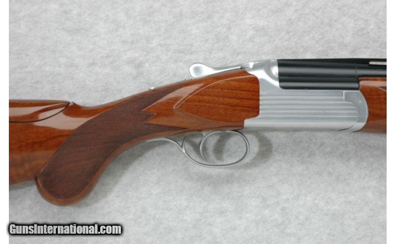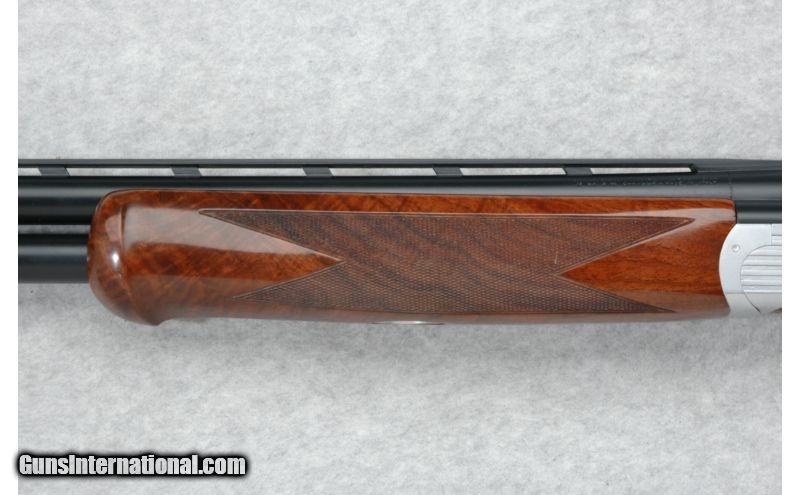 Description: Wood shows a few light use / storage marks and remains excellent. Blue and bores also excellent. Ithaca import. No box. SOLD Manufacturer: S/N - 102XXX Caliber Info: 12 GA Chambers: 2 3/4 inch Metal Condition: Excellent Wood Condition: Excellent Bore Condition: Excellent Barrels: 31 in. Vent Rib - Ported Triggers: Single - Selective Stock: Checkered Walnut P.G. w/Adjustable Comb Stock Dimensions: 14 1/4 in. LOP Fore End: Checkered Walnut Butt Pad: Kick-Ezz Black Rubber Weight: 8 lbs. 13 oz. Sights: White Front Bead w/Brass Mid-Bead Chokes: Choke Tubes Item Location: La Vista, NE |