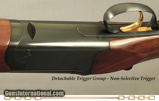 Description: #61588, Perazzi MX3 Game Gun 12 Bore with 27 1/2" Vent Rib Barrels, 5 Each Briley Screw Chokes, Made in 1983, It Remains in Excellent Plus Condition, Vented side rib barrels with 5 each Briley chokes at .726 .007 - .012 - .016 - .022 & .031" (Open Imp.Cyl. - Skt.II - Open Mod. - Mod. & Open Full), 2 3/4" chambers, Opened forcing cones by Briley, Flat matted vent rib, Single non- selective trigger with their Detachable Trigger group, Tapered game forend with a schnabel, Straight hand stock at 14 1/2 x 1 3/8 x 2 1/16" over a checkered butt, Neutral stock for the right or left hand, 7 Lbs., Better than average wood for a MX3, The receiver blue is at 99%, The barrel blue is 99%, The wood at 99%, The checkering at 100%, The bores are as new, The top lever lays well right with all the bite left, The gun is cased in the maker's molded trunk. I feel it has 99 - 100% mechanical life left in it. Perazzi discontinued this model in 1999 or 2000. SOLD |