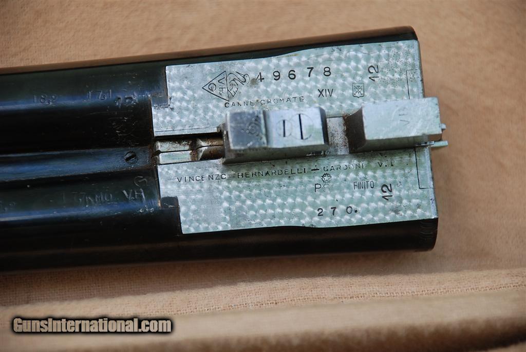 Description: Manufacturer Information: Vincenzo Bernardelli Manufacturer: Bernardelli Barrel Engravings: acciao - speciale - extra - v. bernadrelli - gardone V.T. - Made in Italy Frame Engravings: VBG proofmark, Bouquet and scroll about 70% coverage Condition Percentage: Action Mild pitting Nicely engraved 70%, nice wood and checkering 96% Complete Serial Number: 49678 Date of Manufacture: c.1950 Action Type: holland and holland style sidelock 7 rear pin ejector Gauge – Marked 12 Ga. not 20 Ga. Barrel Length: 27 1/2 Special Barrel Steel Specialty Features: Square cross-bolt Alterations: none SOLD Curio/Relic: Yes Manufacturer: Vincenzo Bernardelli Serial Number: 49678 Condition: good Metal Condition: good Wood Condition: good Bore Condition: good Action: Holland & Holland style sidelock Gauge Info: 12 Engraving: hand Case: original leather Item Location: Stuart, FL |