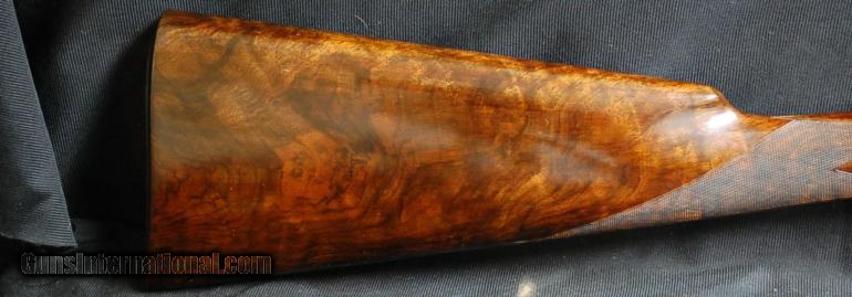 Description: A & S Famars, Sidelock, , 3 gun set, 3011, 20ga., 28”barrel, Cyl/F 30012, 28ga., 27 ½” barrel, IM/F & 30013, .410ga, 28” barrel, M/F A very special set, specially constructed guns, with special serial numbers, all beginning in a 3 series to signify a set of 3, and a special name by the manufacturer For this set Trionfo, this very famous set of guns, represent the best work by Remo, Tony and Franco, as the canvas for the most highly detailed goddess of the hunt Engraving, by Angelo Galiacci, in 1973, this is one of his largest and major works ever performed and represents superior workmanship, with special sculptured top levers And mind boggling detailed engraving, single trigger, straight grip, checkered butt, semi-beavertail, drop points, very unusual ventilated rib, these were the most extravagant And expensive guns of their time, cased in a triple motor case Inv.# 22583-22584-22585 14 ¼” x 1 ½” x 2” 7lbs 20ga. 6lbs 4oz. 28ga. 5lbs 12oz .410 $250,000.00 set of 3 SOLD |