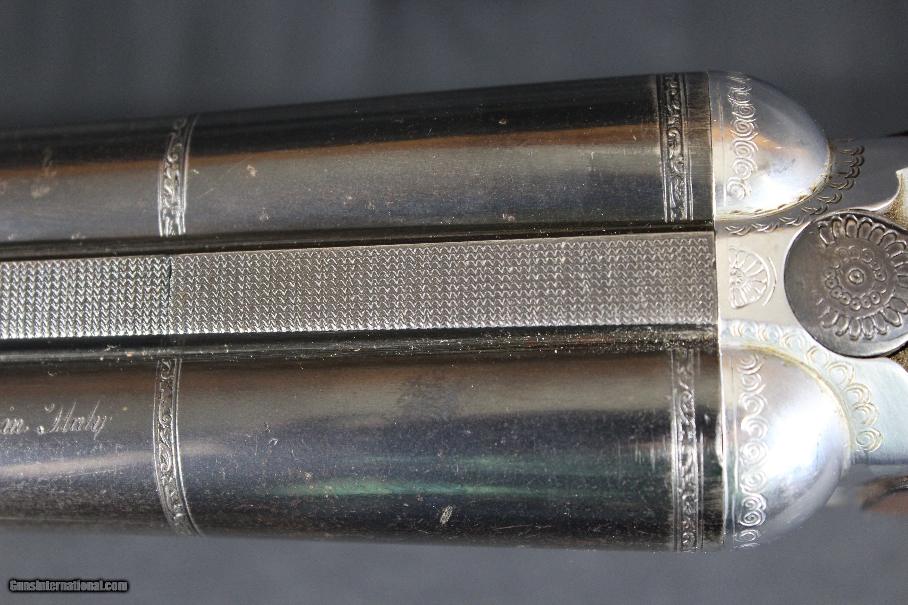 Description: A.V. Maroccini sxs 3" chambered. Gun has nice engraving on locks. Lop 151/4" 12ga with 3" chambers. Gun is choked Extra full and Full drop at comb is 15/8" and drop at heel is 25/8" barrels are 27.5" guns weighs in at 6.8lbs. All around a nice sxs. SOLD Shotgun Gauge: 12 Gauge Manufacturer: A.V. Maroccini Model: sxs Barrel Length: 27.5 Condition: good |