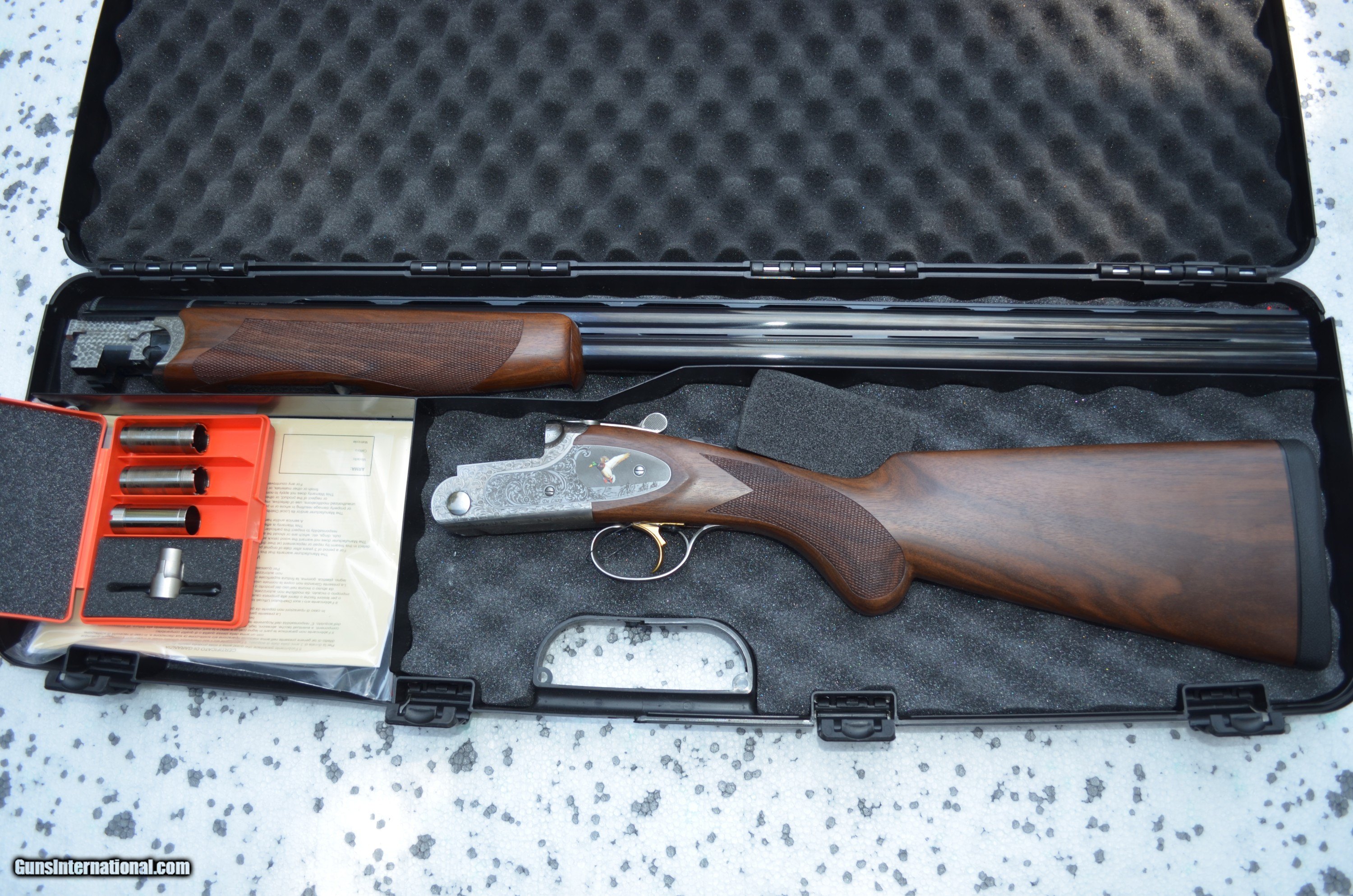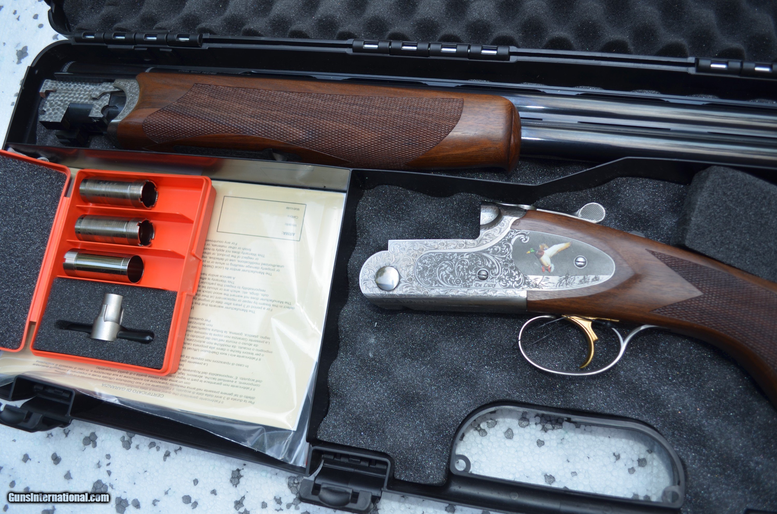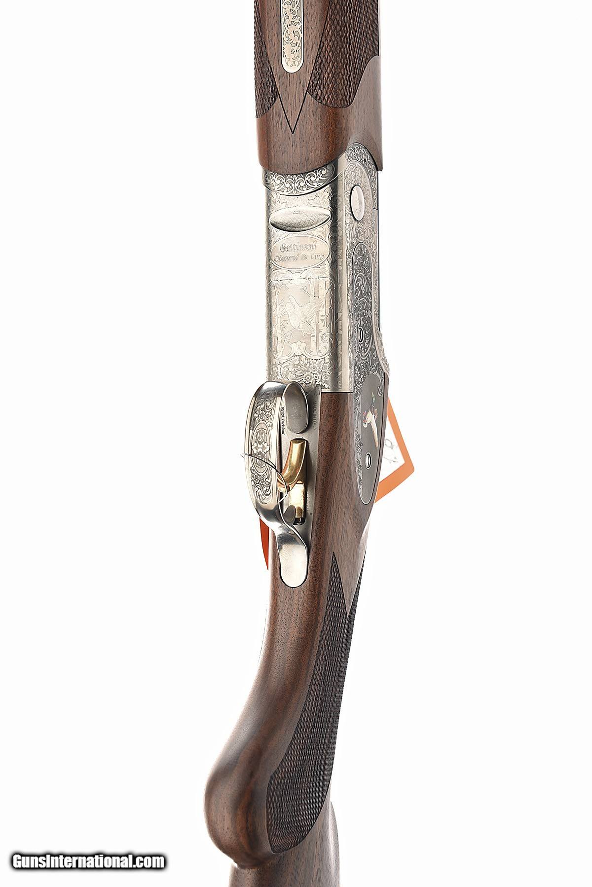 Description: A VIRTUALLY NEW AND UNUSED BETTINSOLI 12-GA (3IN.) 'DIAMOND DELUXE' SINGLE-TRIGGER SIDEPLATED OVER AND UNDER EJECTOR, serial no. 274XXX, dated 2019, 30in. nitro steel-shot reproved in (2023) barrels with 9mm ventilated matt top rib, ventilated mid-rib, 3in. chambers, multichoke (no spares), hold-open toplever, manual safety with integral barrel-selector switch, gold-washed trigger, rolled-edge triggerguard, the action decorative sideplates with bold acanthus scrollwork on matted background, and with applied fully-coloured duck and pheasant, 14 1/2in. semi-pistolgrip stock including rubber recoil pad, weight 7lb. 13oz., in its makers universal ABS case Thank you for looking at our listings here on GunsInternational We do not have a physical store but do sell at The Nations Gun Show, Dulles Convention Centre in Chantilly, Virginia. We aim to list any new stock as soon as we get it in but feel free to email us. In addition to the agreed upon sales price, we add sales tax where applicable and will add the cost of shipping via UPS. We offer a foam padded plastic gun case for $25 - to keep your purchase safer during transport. In addition to the standard $100 cover that UPS offers, we can offer extra insurance cover via Parcel Pro. Please let us know in advance of payment and shipping if you wish to use this service. If you pay with a debit or credit card a 3% charge will be added at checkout to cover our cost to the card processing company Stripe. You can also use Zelle or send us a cheque, to avoid the card processing fee. SOLD Shotgun Gauge: 12 Gauge Manufacturer: Bettinsoli Model: DIAMOND DELUXE Barrel Length: 30 Stock: Prince of Wales LOP: 14 1/2 inch Case: yes makers universal case |