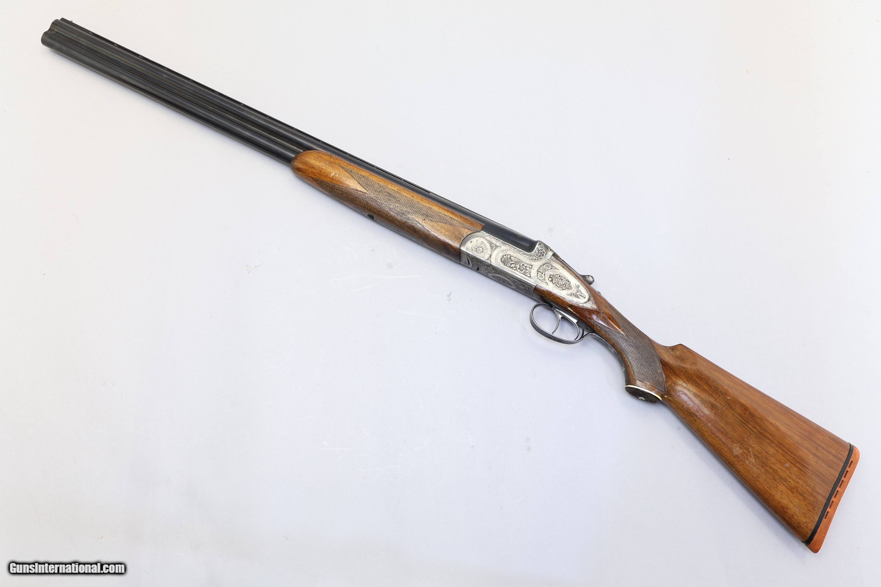 Description: Antonio Belleri Sideplate Boxlock, 12 Ga, 27 1/2" Barrels 2 3/4" Chambers | Chokes: U: IM / O: Extra Cyl | Barrels: 27 1/2" Over / Under | Overall Length: 44" | Good Condition | No Case Antonio Belleri Sideplate Boxlock, in 12 Ga, a classic Italian-made shotgun featuring 27 1/2" barrels, 2 3/4" chambers, and a parallel ventilated rib. It features a wood stock with a pistol grip and a neutral cast, a double-trigger action and a manual safety for reliable field performance. Ejectors provide fast operation. Overall condition is good. Wood has seen some handling, but is still a nice gun to look at. Barrels are stamped: Left: Belleri Antonio, Ponte Zanano V.T. Brescia, Made in Italy, Chromed Steel / Right: Acier Boelher Blitz. Bluing is retained, with a few surface marks. Brass bead sight. Dating to 1964 in Italy, this sideplate boxlock features LOP 14 1/4", LOP to Wood 13 3/4", DAC 1 3/4", DAH 2 1/2", Cast Neutral, Weight 6 lbs 15 7/10 oz, Barrels 27 1/2", Overall Length 44". It is licensed for FFL. Seller Inventory # 05846.