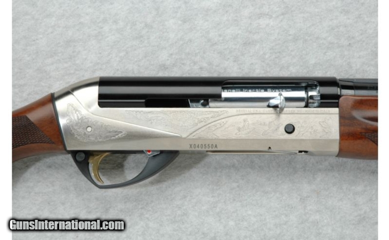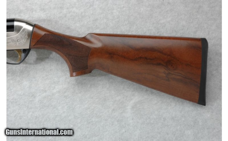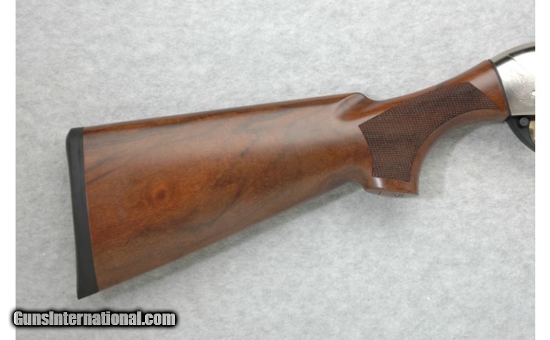 Description: SOLD Caliber Info: 20 GA Chambers: 2 3/4 inch or 3 inch. Metal Condition: Excellent Wood Condition: Excellent Bore Condition: Bright and shiny. Barrels: 26 inches with a ventilated rib. Triggers: Gold Stock: Checkered walnut pistol grip. Nickel finish receiver is engraved with bird in flight outdoor sceens. Stock Dimensions: LOP 14 1/4 inches. Fore End: Checkered walnut with finger grooves. Butt Pad: Benelli rubber pad. Weight: 5 lbs. 13 oz. Sights: Red bar front sight. Metal middle bead. Chokes: Tube Extras: With Box Item Location: Richfield, WI |