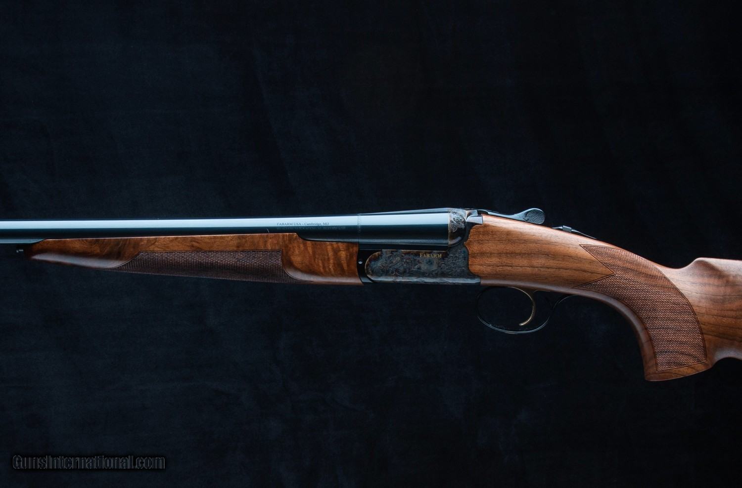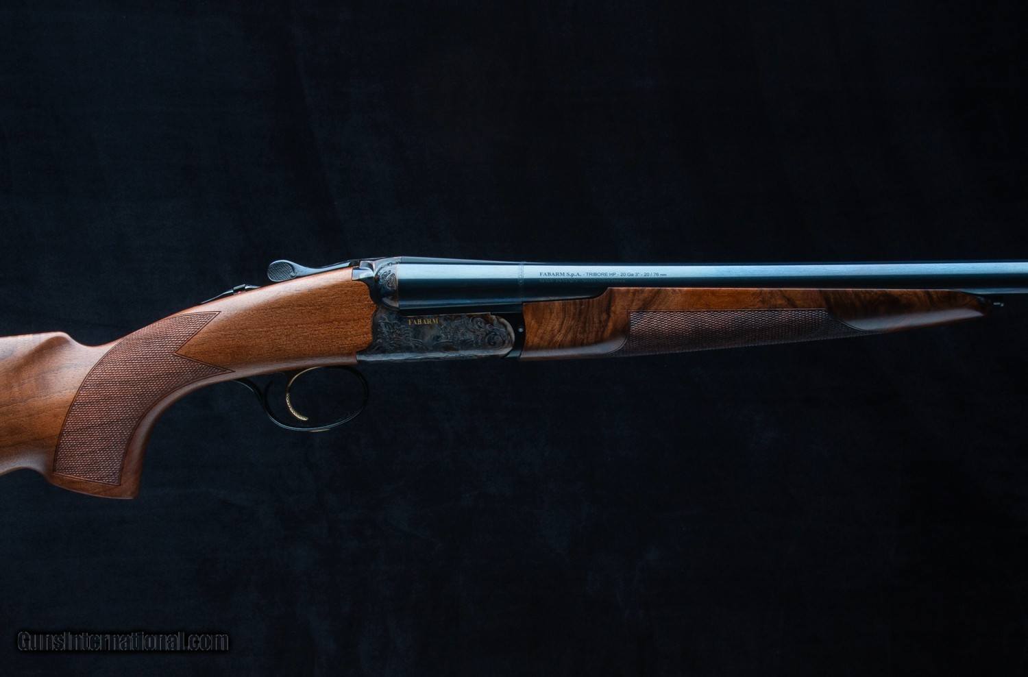 Description: FABARM 20g "Autumn" model Side by Side Shotgun. Case colored and engraved boxlock action with scroll back, automatic safety, and single selective trigger. Monoblock 28" barrels with 5 interchangeable choke tubes, 3" chambers, and a smooth concave game rib that has a matte finish that contrasts against the polished blue barrels. . Nicely figured full pistol grip Deluxe walnut stock w/ neutral cast and a 14 9/16" LOP over a removable checkered butt. Stock measures 1 1/2 in. at the comb and 2 7/16 in. at the heel. The gun weighs 6 lbs. 10 oz. appears unfired and is in its original hard case. Price: $4,500.00 Contact Seller |