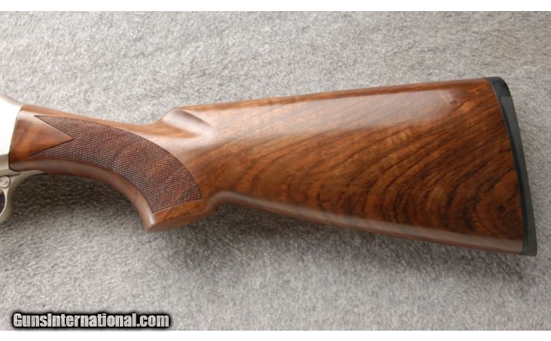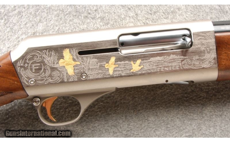 Description: A piece of art you can use without worry, Franchi developed the Fenice Semiautomatic Shotgun for you to enjoy in and out of the field. Built on the tried and true 48 AL frame design, the high-polish chrome-plated bolt sits inside the nickel-plated lightweight alloy receiver. The trigger is gold-plated and intricate scrollwork with gold inlay on the receiver showcases scenes of birds in their respective environments. The stock and forend are made of Grade AA European walnut with an oil finish. Cross-bolt safety. SOLD Manufacturer: 2015 Caliber Info: 20 Gauge. Chambers: Semi-auto built on the tried and true 48 AL frame design, the high-polish chrome-plated bolt sits inside the nickel-plated lightweight alloy receiver Metal Condition: New From Maker. Wood Condition: New From Maker. Bore Condition: New From Maker. Barrels: 28 Inch blue with a vent rib. Triggers: Single gold-plated Stock: European walnut, oil-finished, AA-grade with a checkered pistol grip Stock Dimensions: 14 1/4 Inch LOP. Fore End: European walnut, oil-finished, AA-grade with checkering and finger grooves. Butt Pad: Black rubber butt plate. Weight: 5 Lbs 14 Oz Sights: Single front bead. Chokes: Screw in. Extras: Comes with the case and all the factory accessories. Item Location: Hammond, IN |