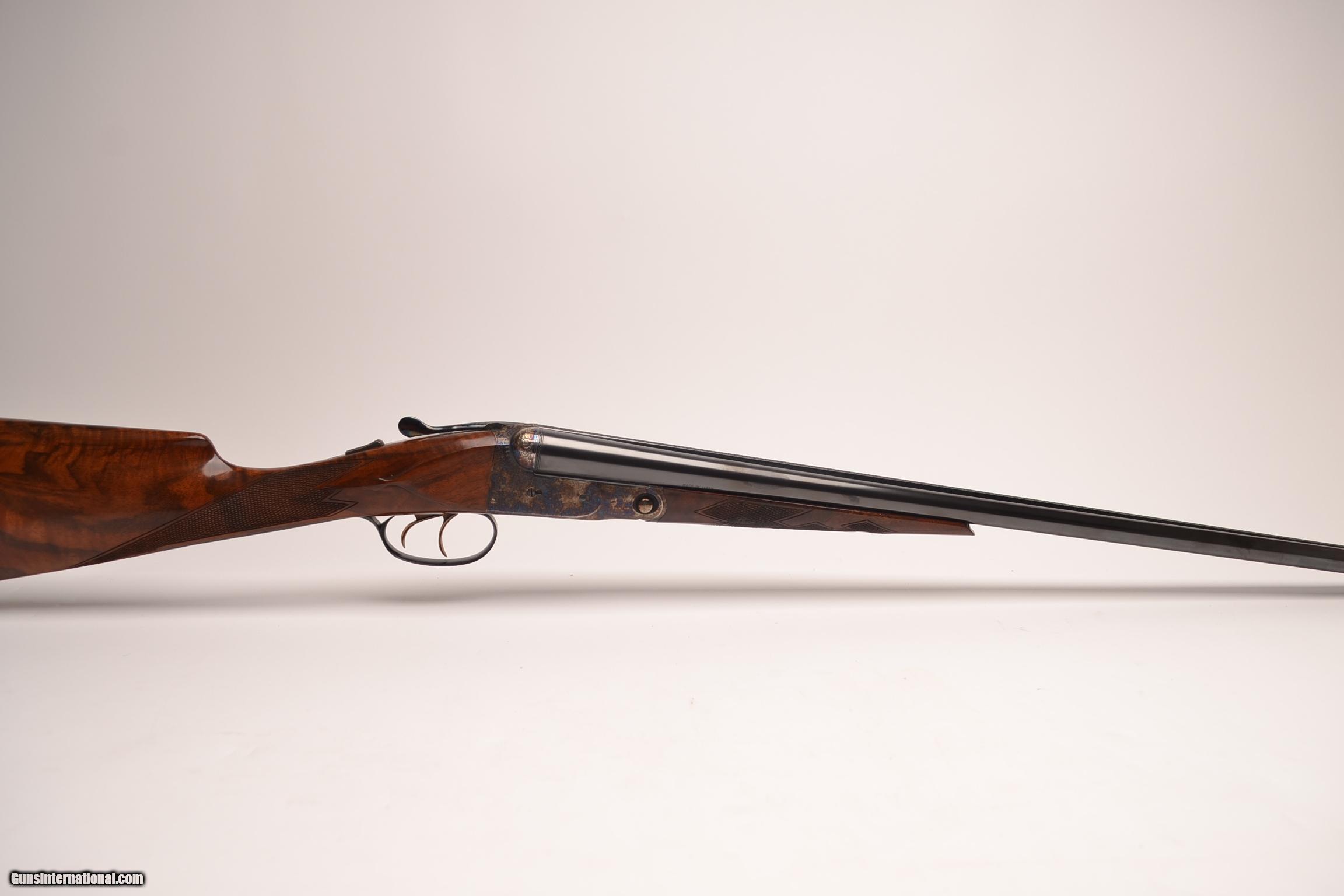 Description: PARKER REPRODUCTIONS – DHE 20ga. 28” Mod/Full, incredibly figured straight grip stock, skeleton butt, splinter forend, gold oval, double trigger, automatic ejectors, 99% condition gun throughout, 95% coloring remaining, available for immediate delivery Inv# 31446 7 lbs. 3 oz. 14 ¼” x 1 ½” x 2 3/8” $4,499.00 SOLD |