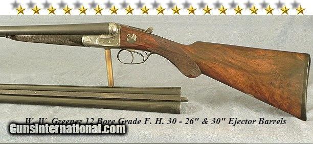 GREENER 12- 2 Bbl. SET- HEAVY GAME GUN or a PIGEON GUN- 30" & 26" EJECT Bbls.- EXC. Bbls. INSIDE & OUT- 70% ENGRAVING- GREAT WALL THICKNESS
