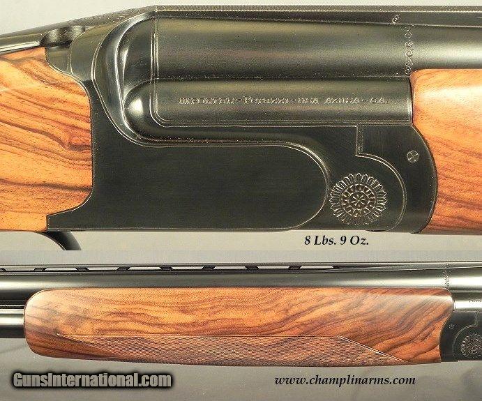 Description: #133884, Perazzi 12 Bore Model MX 8 Sporting O/U with Upgraded Wood Made 2005 with 32" Flat 11 x 7 mm (7/16" x 9/32") Vent Rib barrels that remains like a new gun, Factory fixed chokes at .731 .022 & .030" (Mod. & Tight Imp. Mod.), 3" original chambers, KG 1,610 weight barrels, The side ribs are vented, Detachable single non-selective trigger with flat springs, Full 10 1/2" forend, Type IV forend, Pistol grip stock at 14 3/4 x 1 7/16 x 2" over a 9/16" factory pad, It will go 15 1/4" lop with a 1" pad installed, Neutral stock for the right or left hand, 8 lbs. 9 oz., Factory upgrade wood to SC2 quality with excellent color and contrast, This gun is totally original in every respect with every serial number matching, It was bought new and fired very little, It retains 99.5% original blue, The wood is still at 99.5%, The checkering at 100%. The breech face, the face of the hammers and the gold plated trigger are all still at 99.5%. It is cased in the black factory ABS trunk with factory spare flat springs and strikers. This is a very nice Perazzi with nice wood and it still has 100% mechanical life left in the piece. SOLD |