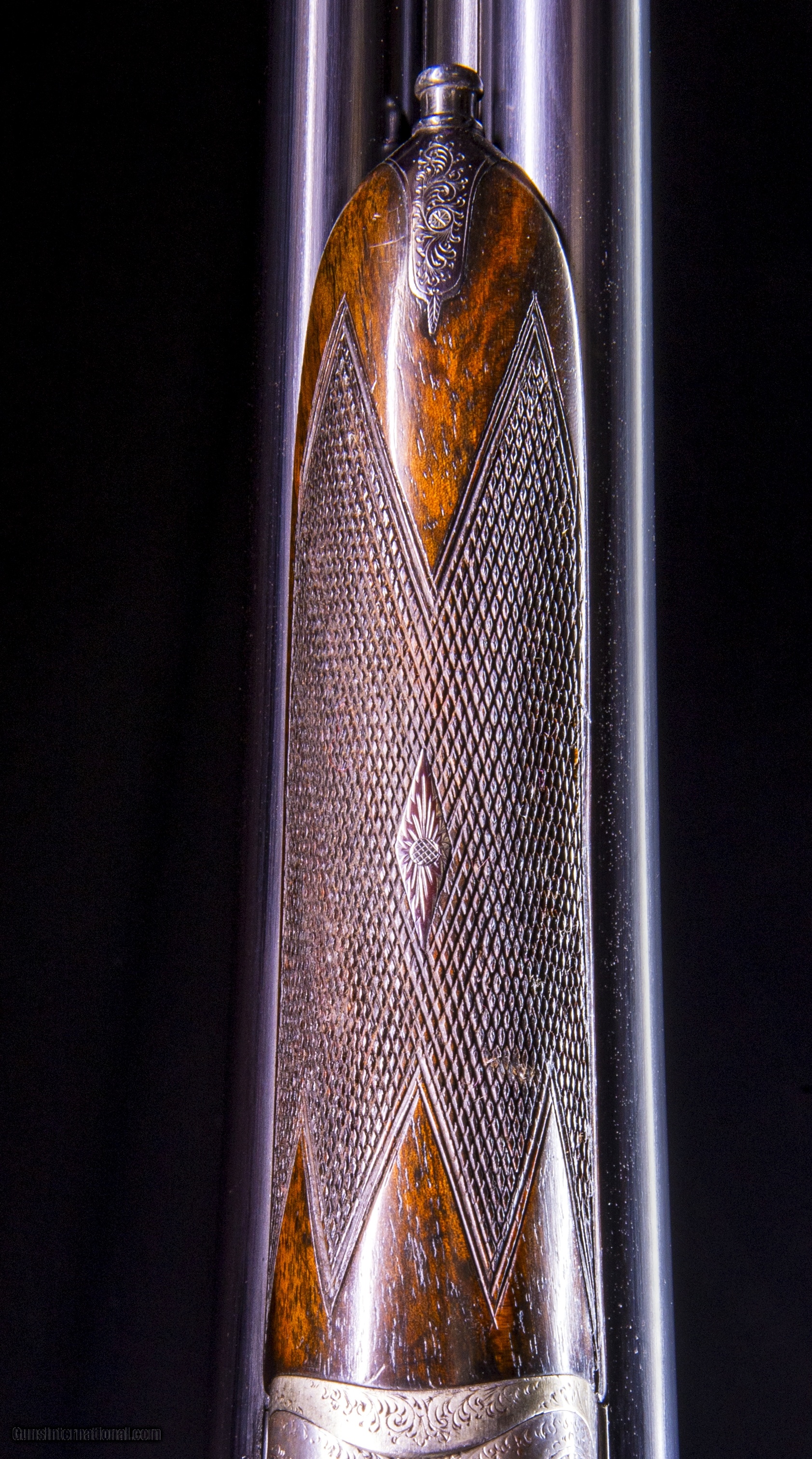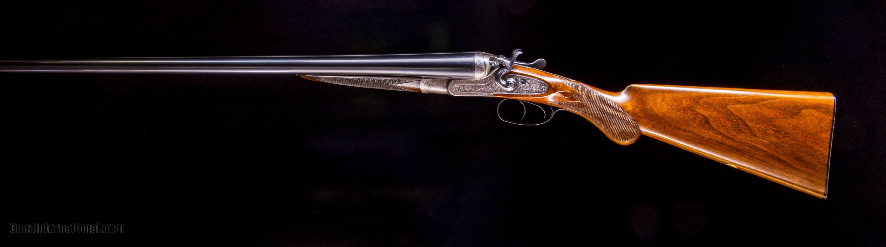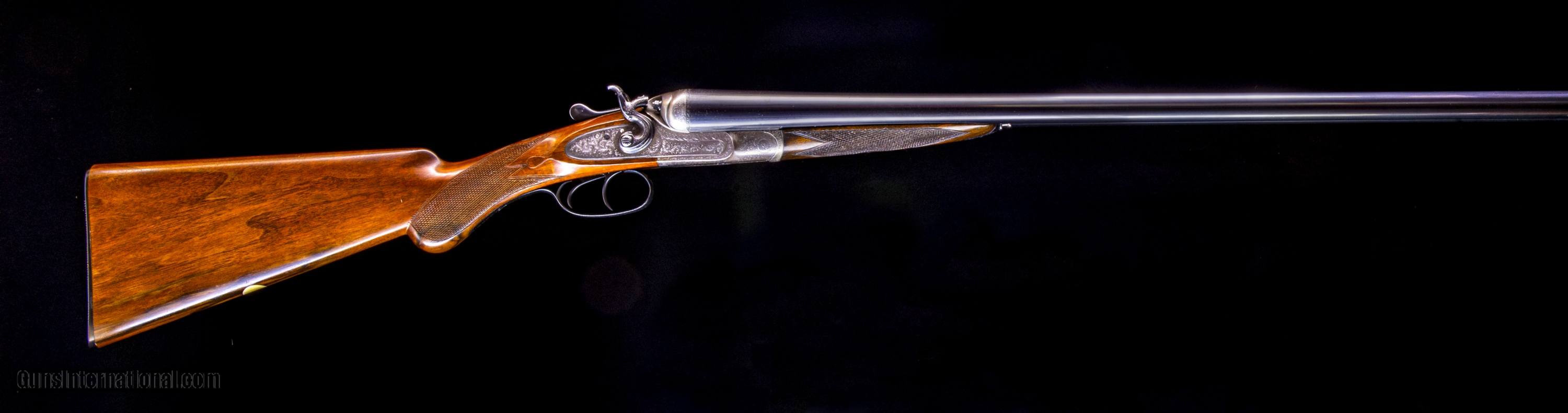 Description: Hammerguns - Chcked extra full and Mod this would make a great Turkey killer or clays gun! Pigeon hammer doubles are very hard to find. This one was built in 1914. Good dimensions, chokes, and you have to love the 32" barrels. *** Note: To see this gun with high resolution photos and a zoom-in feature, go to the vintagedoubles main site and search for the gun ID: 5336 or browse the main site to see our full gun collection. SOLD Manufacturer: Thomas Wild with 3" 12g. Nitro proofs! Live pigeon weight and dimensions ~ 32" steel barrels Model: None Serial Number: 8538 Ejectors: No Barrels: 32 Barrel Type: Steel Action: Top Lever rebounding hammers Gauge Info: 12 gauge Stock Comb: 1 5/8 Stock Heel: 2 1/8 Stock Cast: 1/4 LOP: 14 1/4" with ho Weight: 7 lbs 8 ozs Choke Left: .045 Extra full Choke Right: .014 IC/Mod Proof:Nitro: 3 Minimum Wall Thickness Left: .023 Minimum Wall Thickness Right: .029 |
